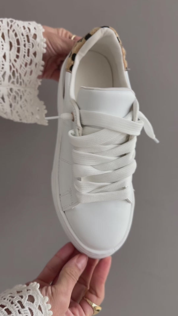 Kenzy Beyaz Deri Bağcıklı Kadın Sneakers