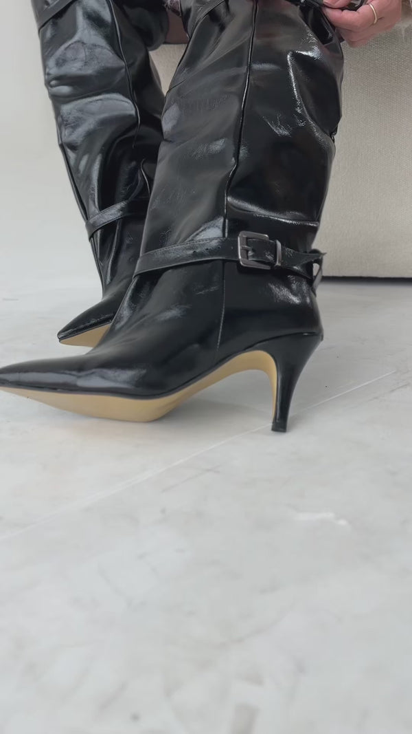 Yovana Siyah Çatlak Rugan Diz Altı Kadın Topuklu Çzime