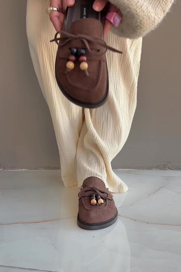 Solid Bej Süet Bagcıklı Genıs Kesım Kadın Babet