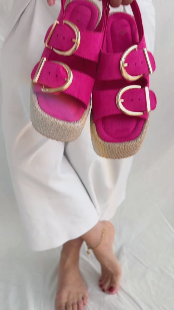 Drone Siyah Süet Bant Toka Detay Dolgu Topuk Kadın Ayakkabı