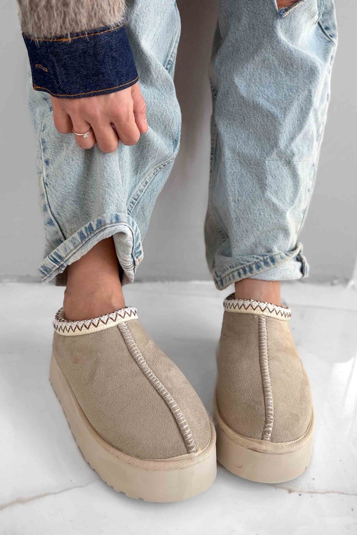 İçi tamamen yumuşak peluş kürkle kaplı yapısı sayesinde maksimum sıcaklık sağlar; kaymaz tabanı ile hem ev içinde hem de balkon, teras gibi alanlarda güvenli kullanım sunar. Şık formu ve estetik detayları sayesinde sadece bir ev terliği değil, aynı zamanda tarzınızı yansıtan bir aksesuar haline gelir.