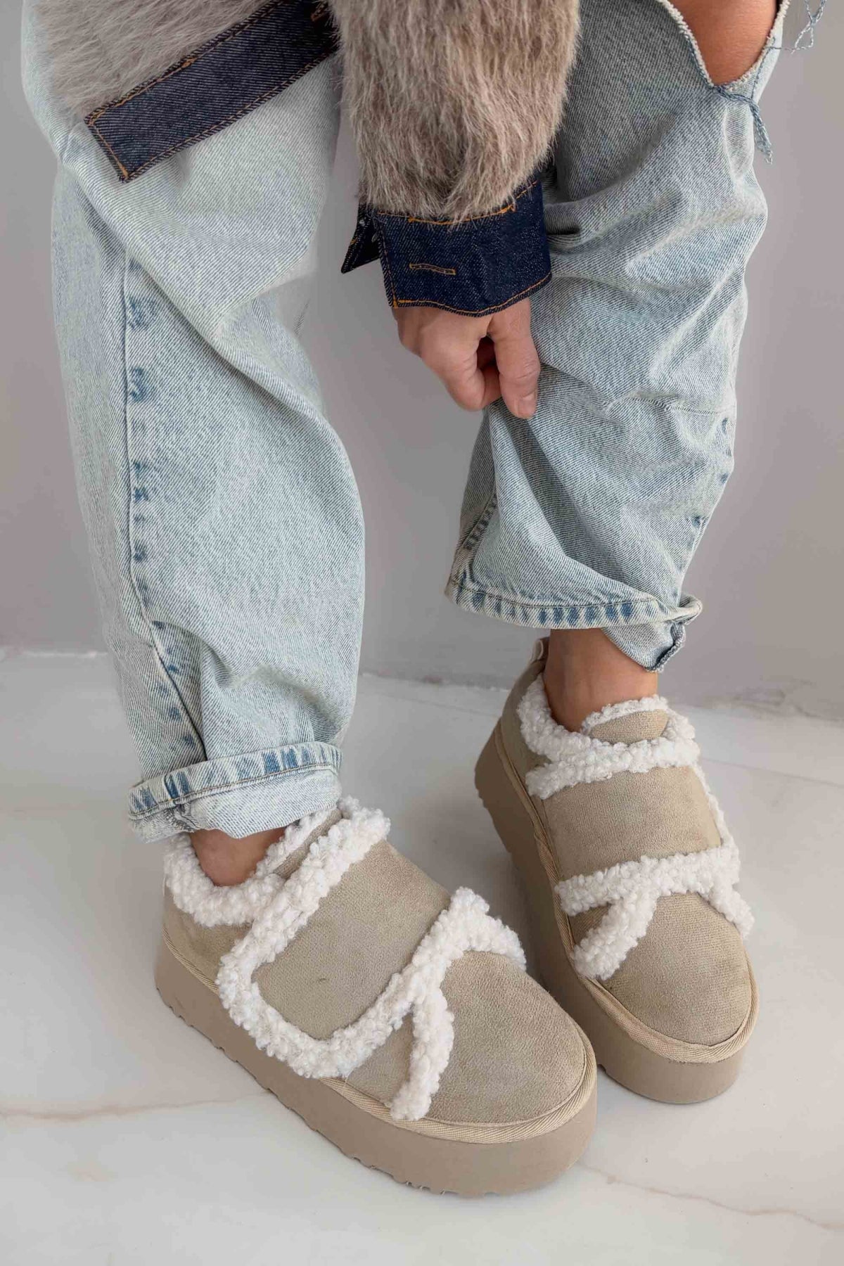 Modern çizgileri, cırt bant detayları ve yüksek taban tasarımı ile günlük kombinlerinize enerjik bir dokunuş katarken, iç kısmında yer alan peluş kürk kaplama sayesinde gün boyu sıcacık bir kullanım sunar.