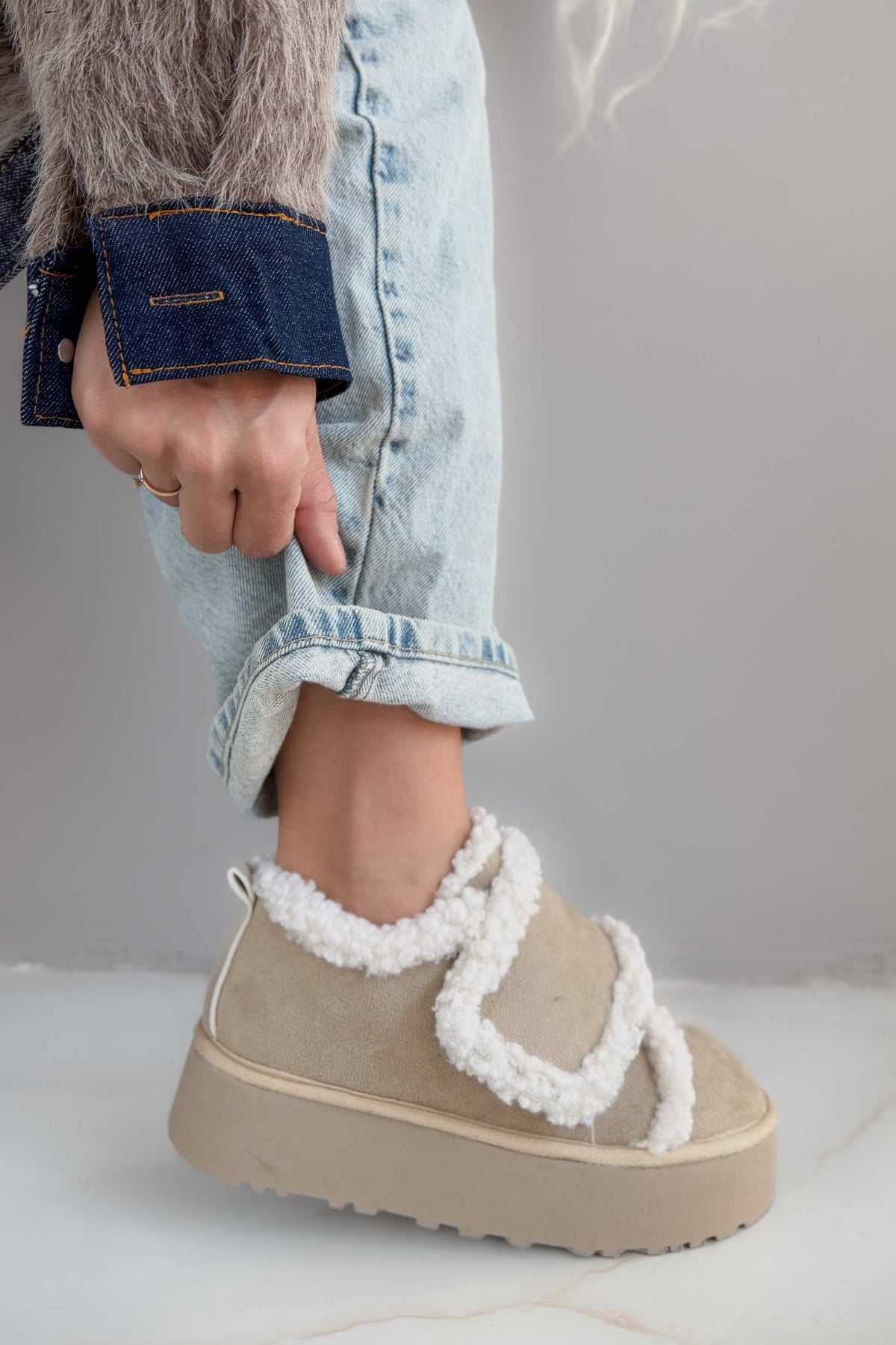 MALZEME : DIŞI İTHAL SUNİ SÜET - İÇİ SICAK ASTAR KAPLAMALI - PELÜŞ DETAYLI