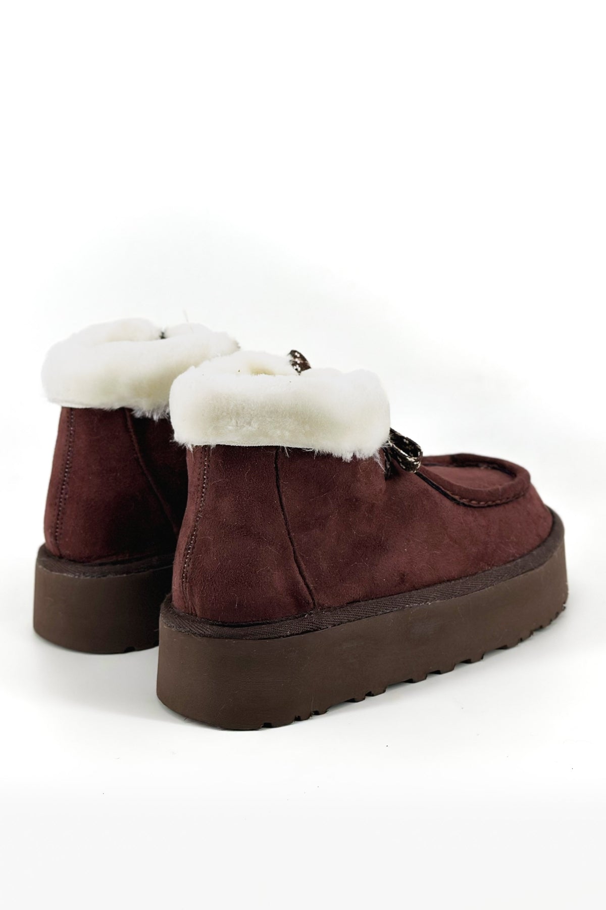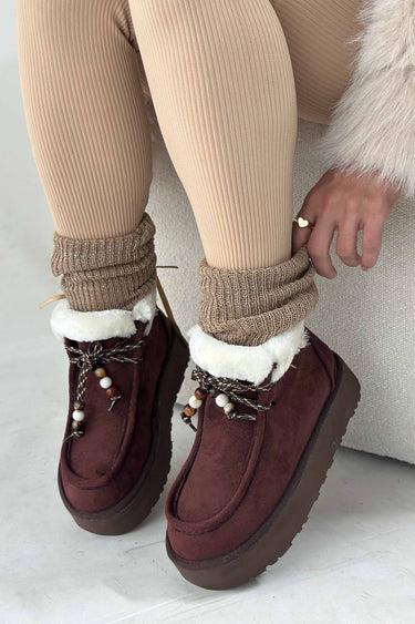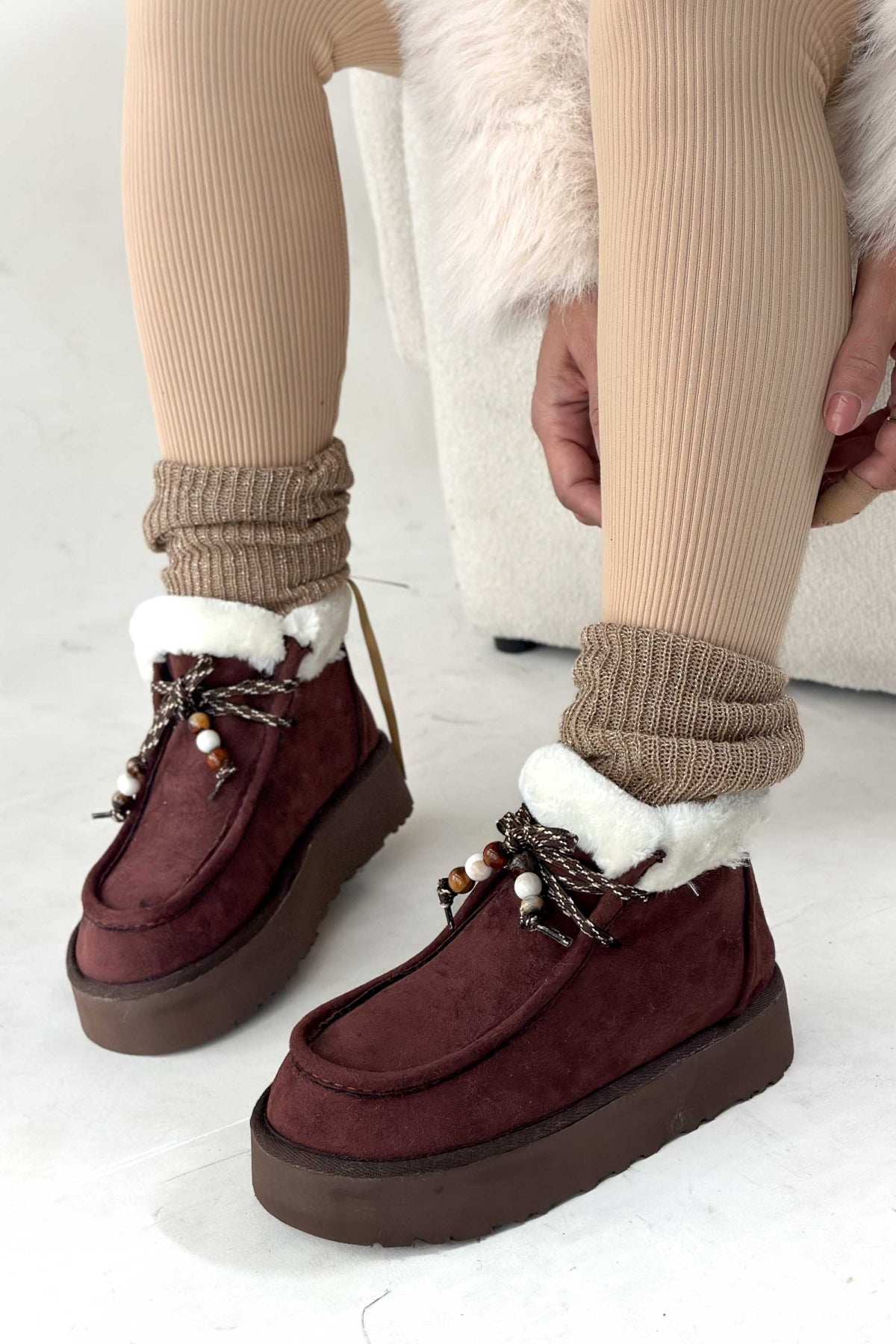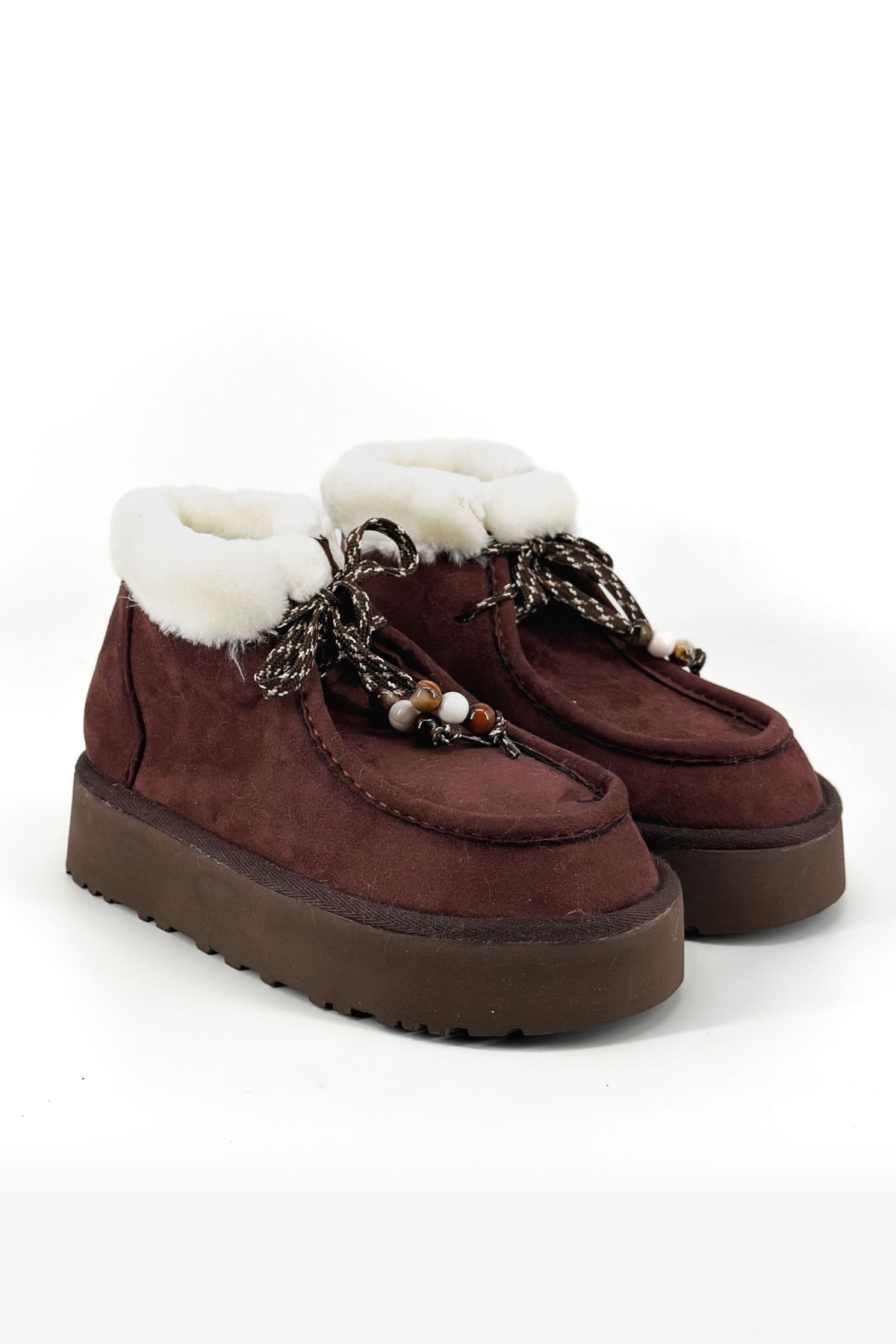 Juno Acı Kahve Kürk Detay Boncuk Bağcıklı Kadın Bot