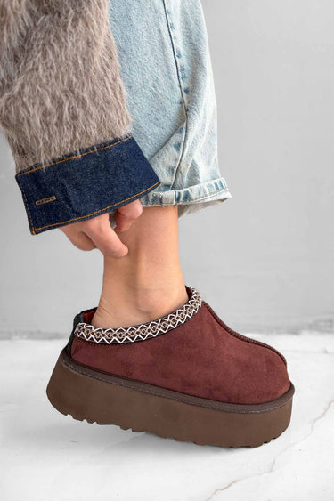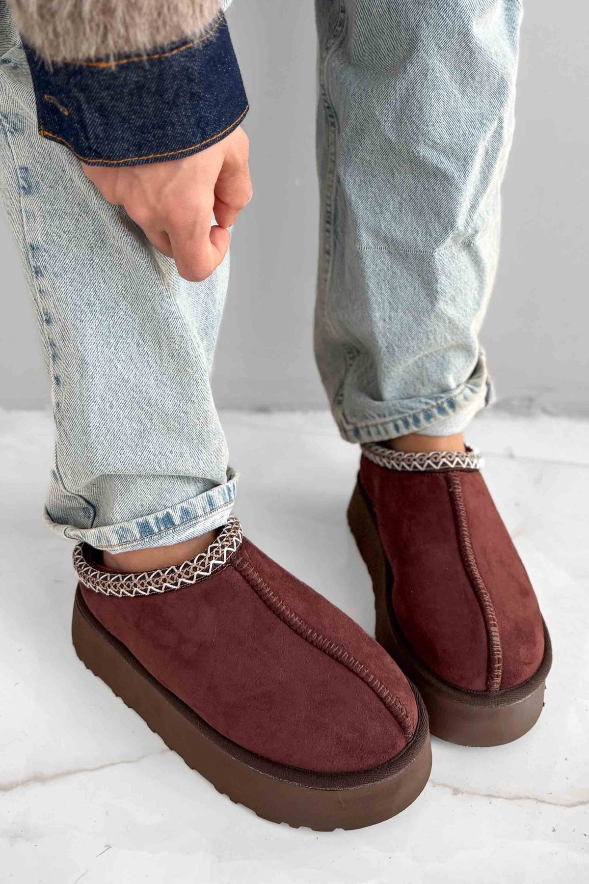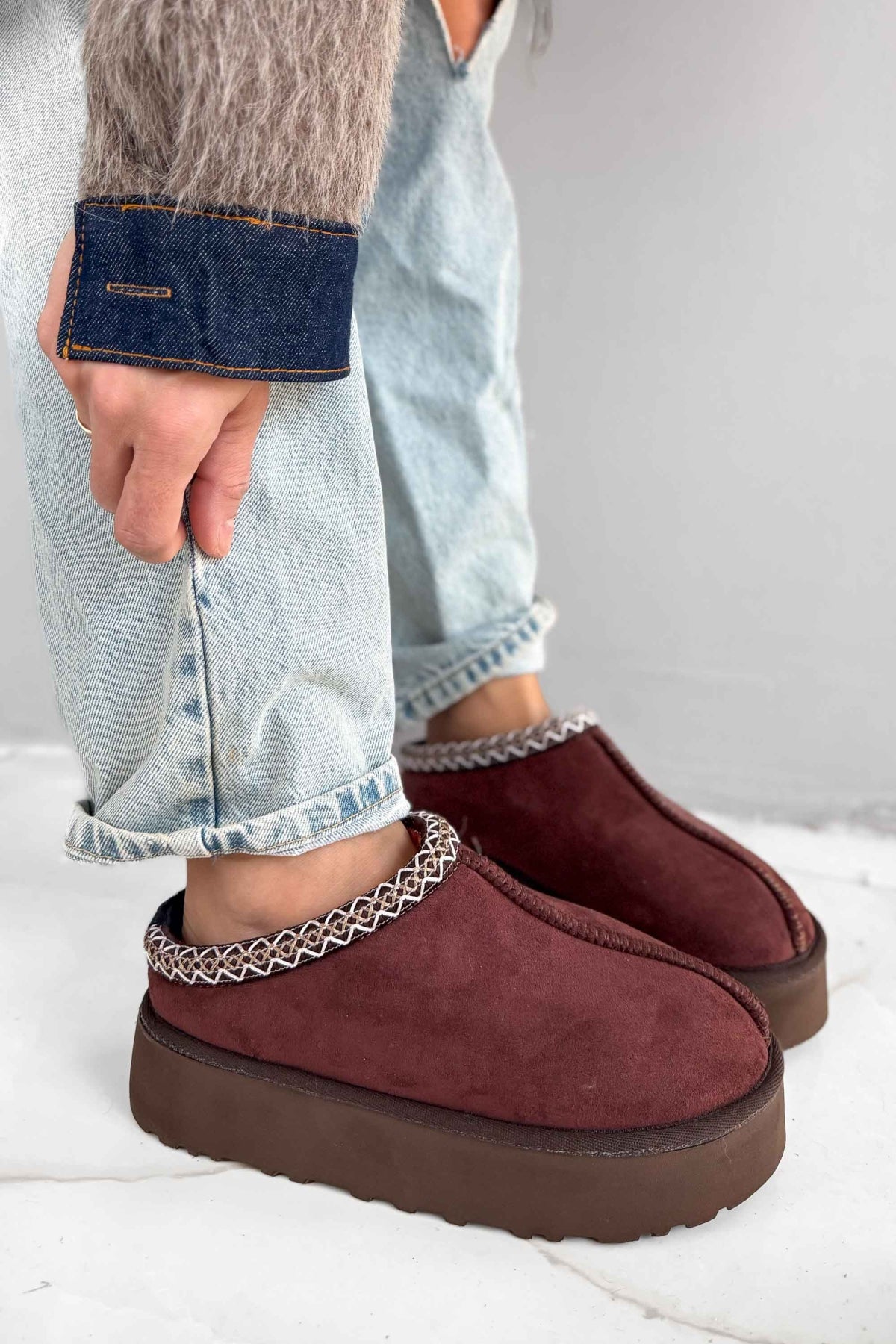 Migo Acı Kahve Peluş Kışlık Kadın Terlik