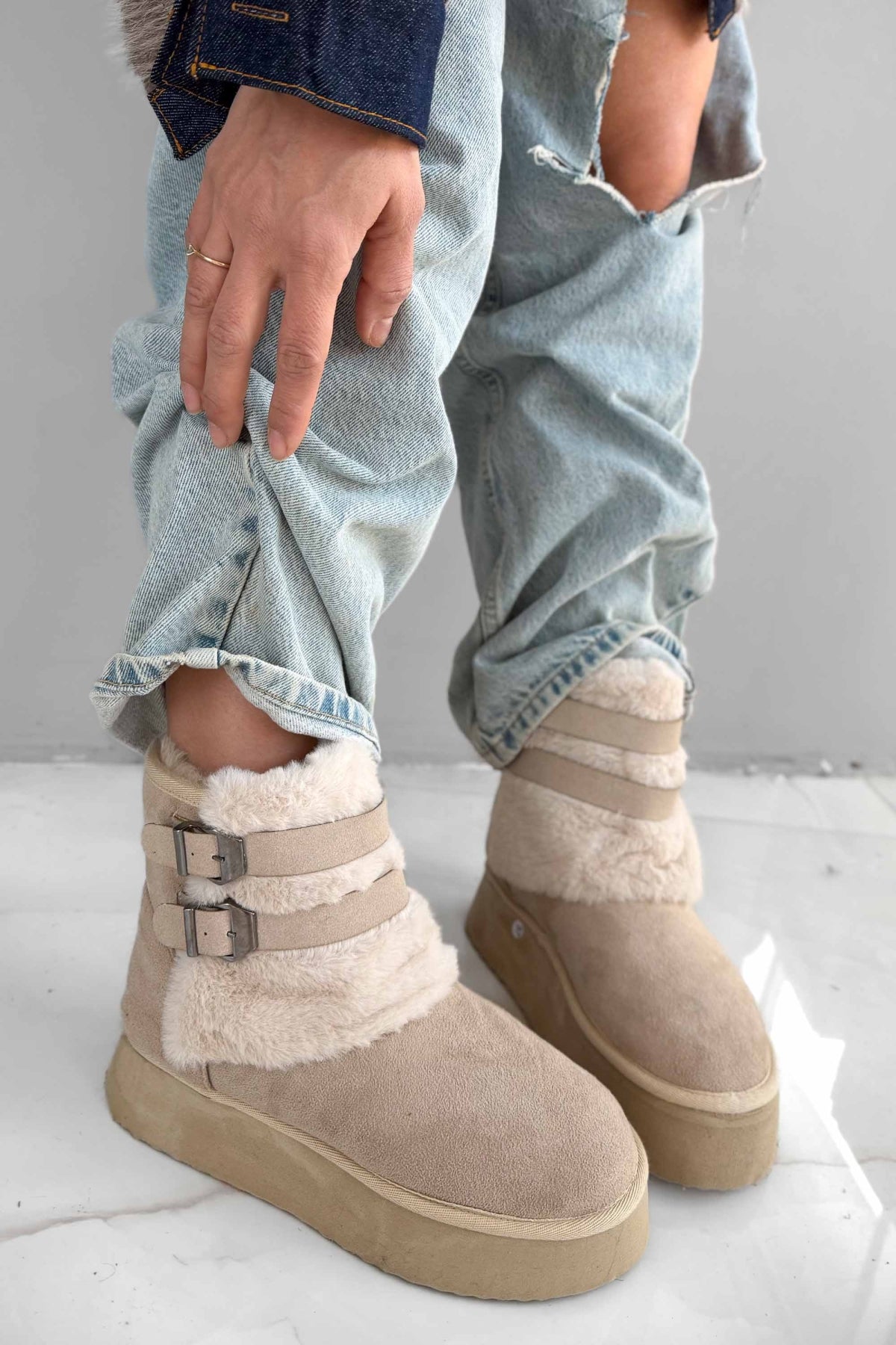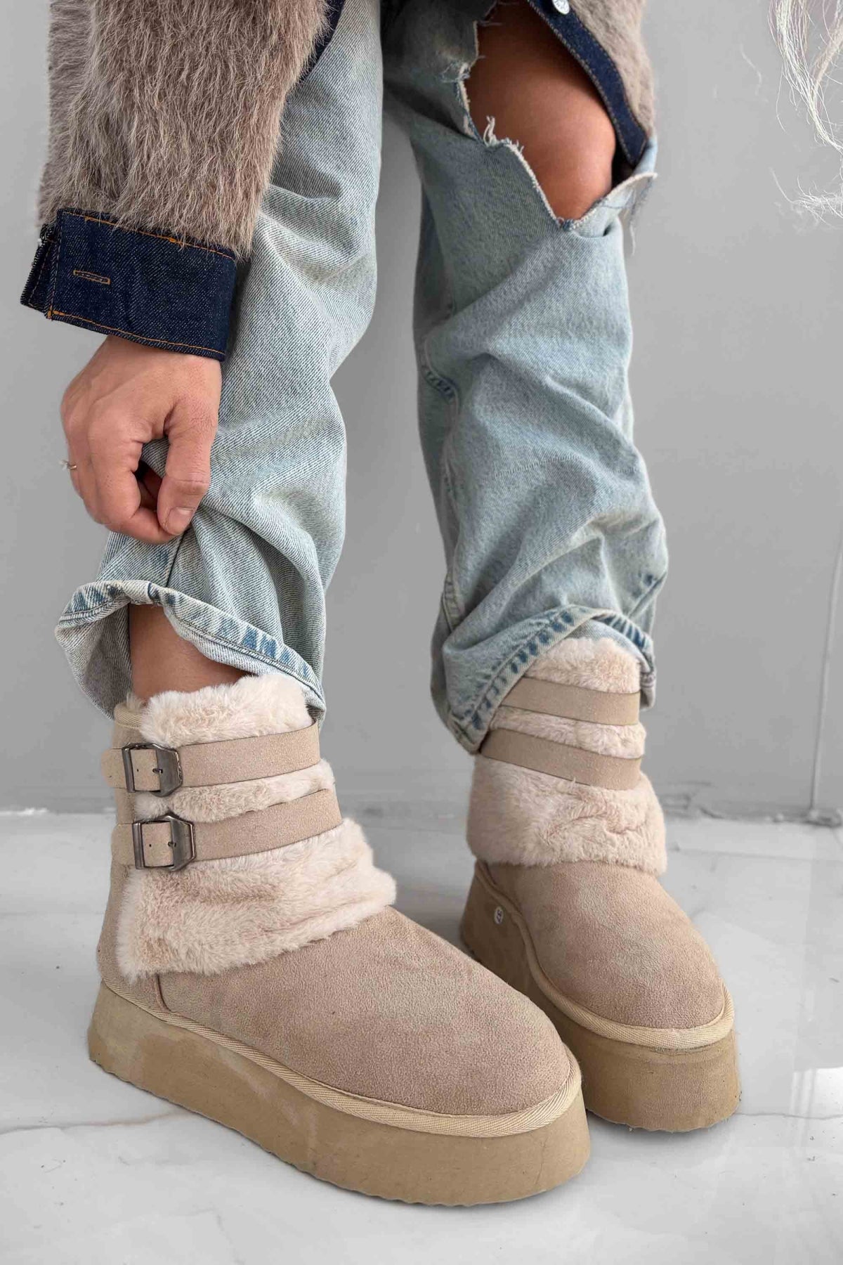 MALZEME : İTHAL SUNİ SÜET - PELÜŞ DETAYLI