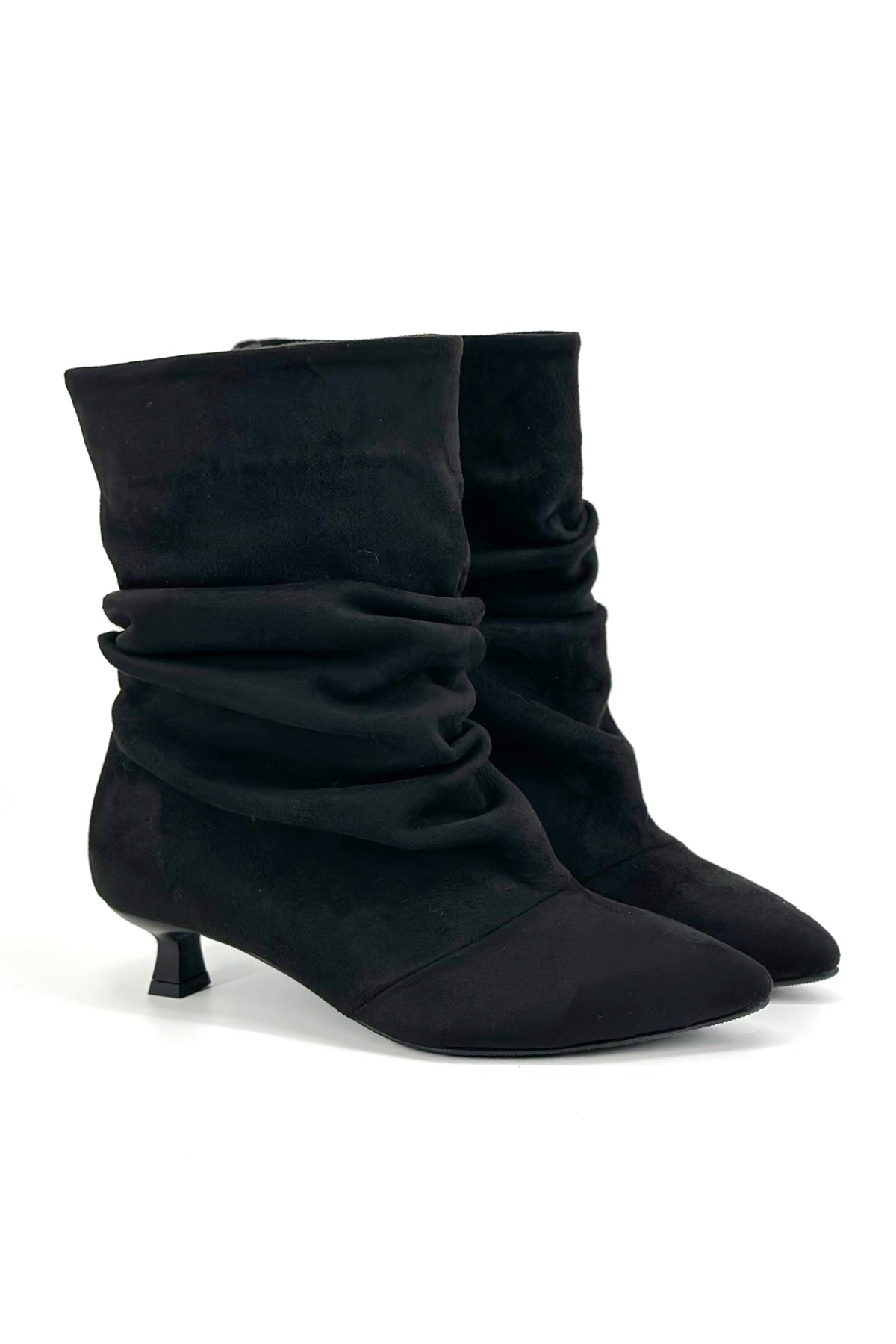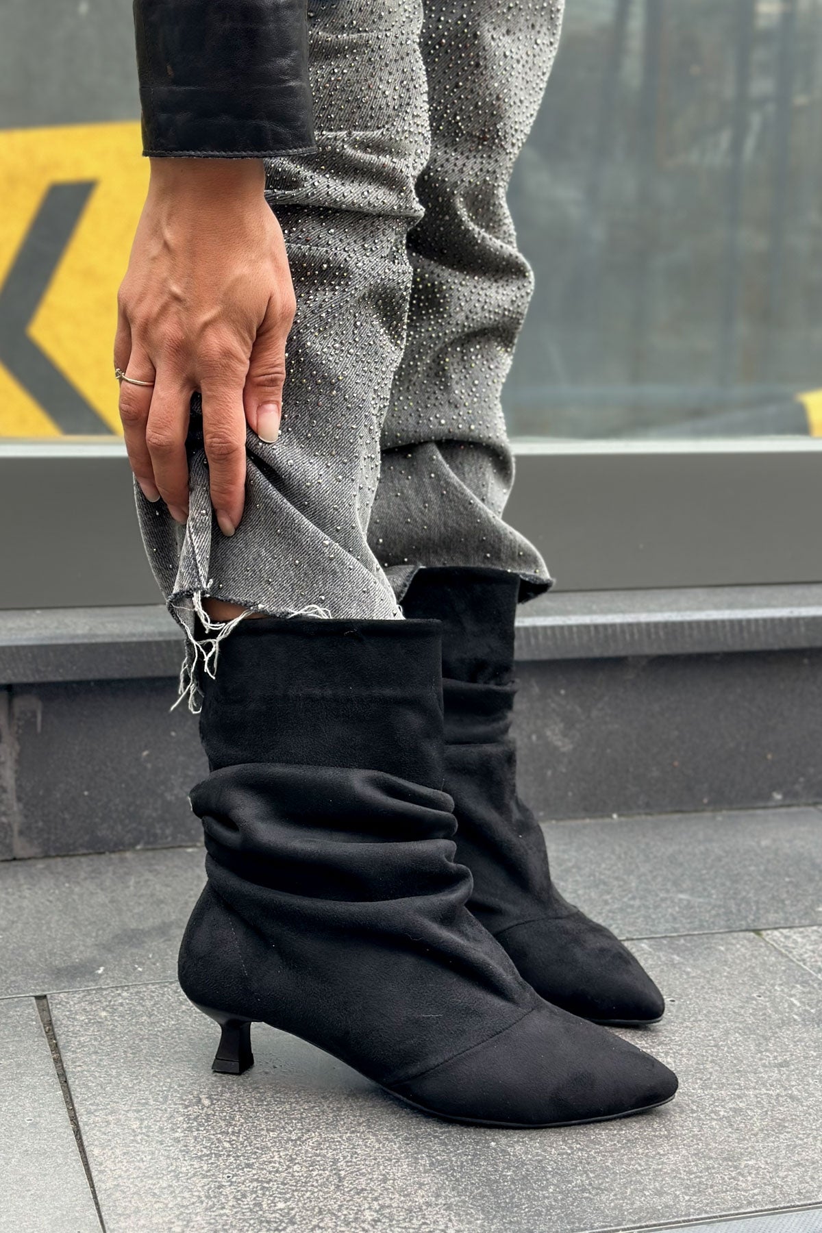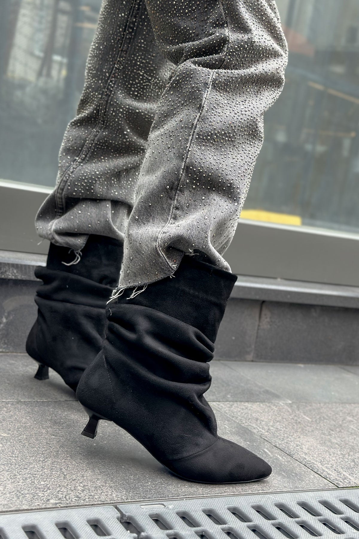 Burbon Siyah Süet Pino Topuk Kadın Boti