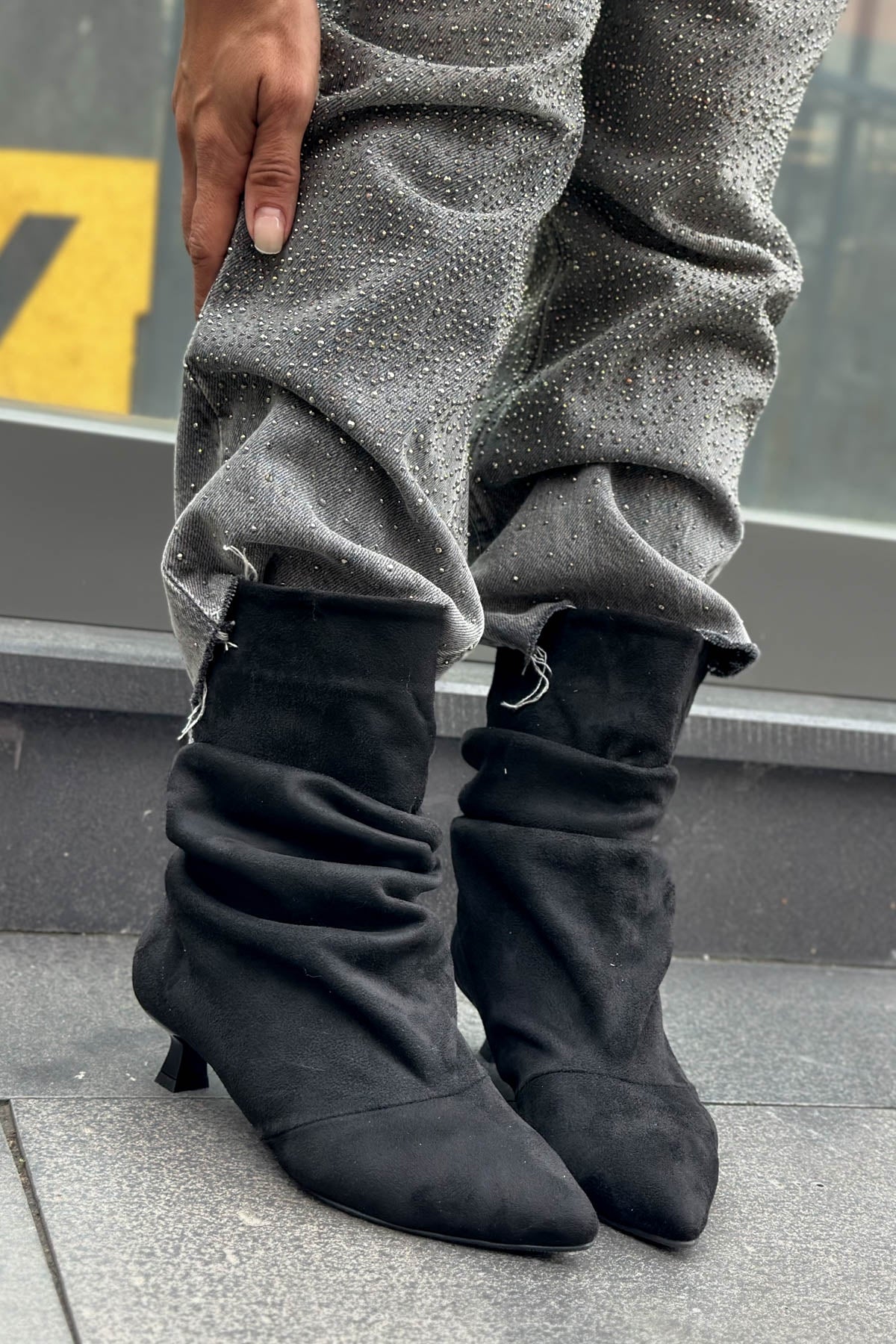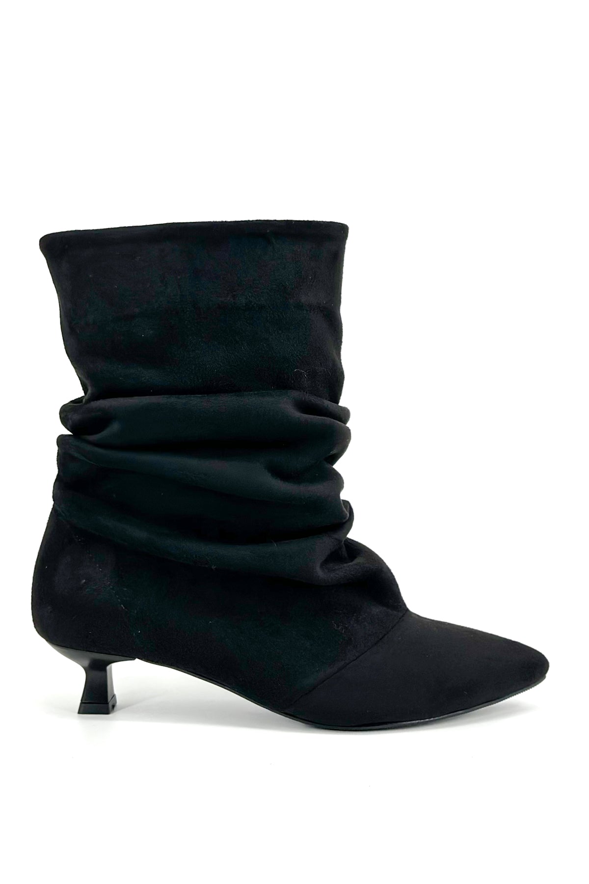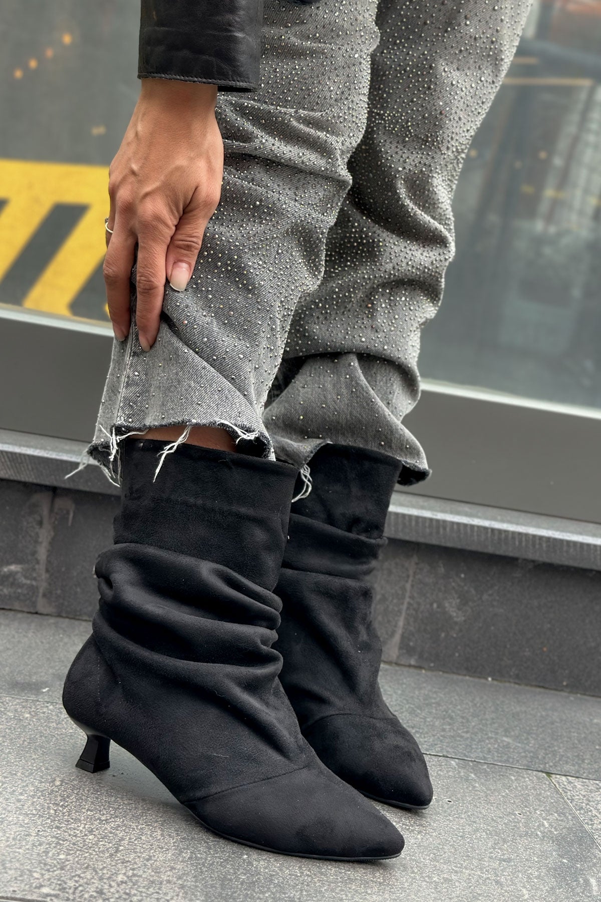 Burbon Siyah Süet Pino Topuk Kadın Boti