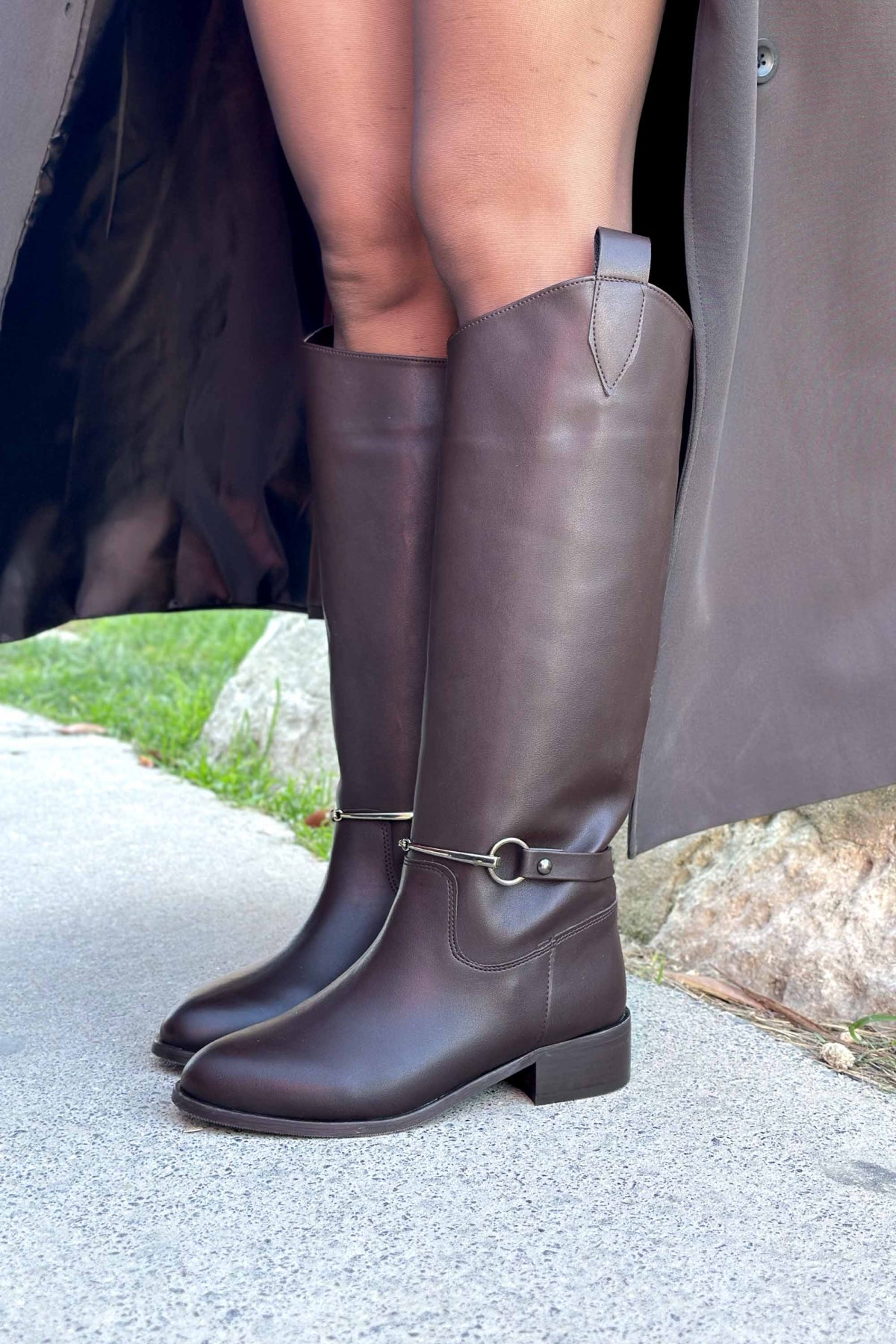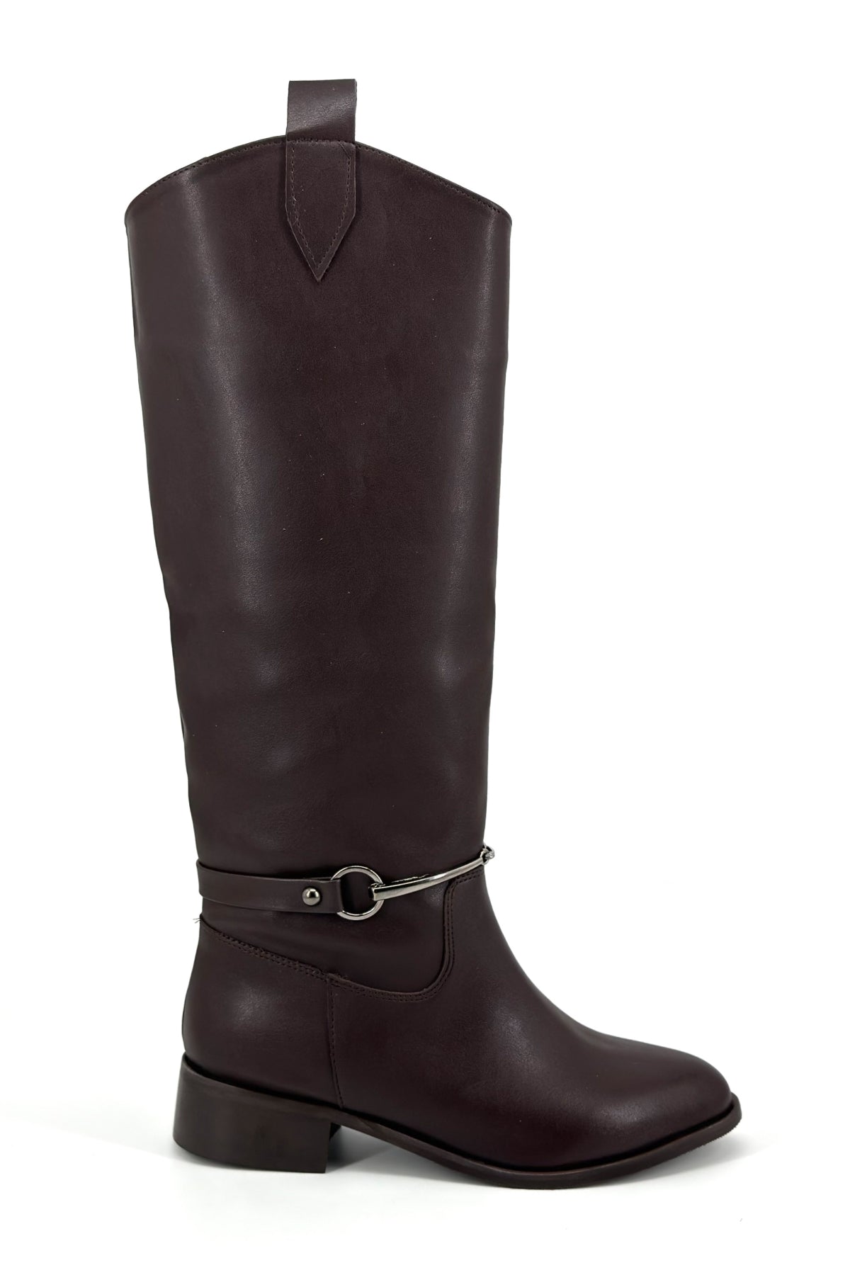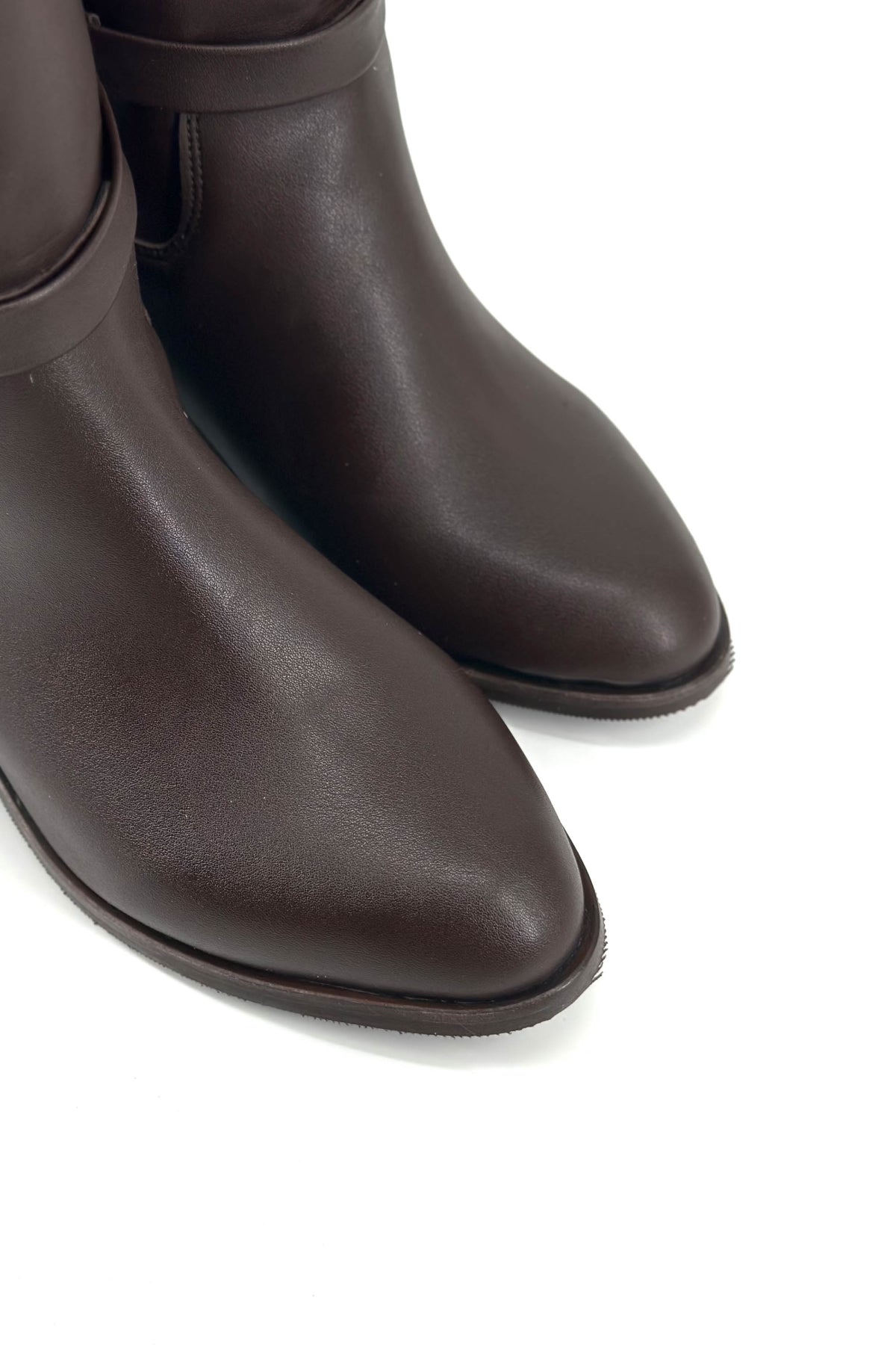 Vola Acı Kahve Deri Toka Detay Kadın Çizme