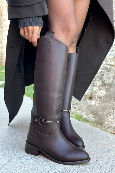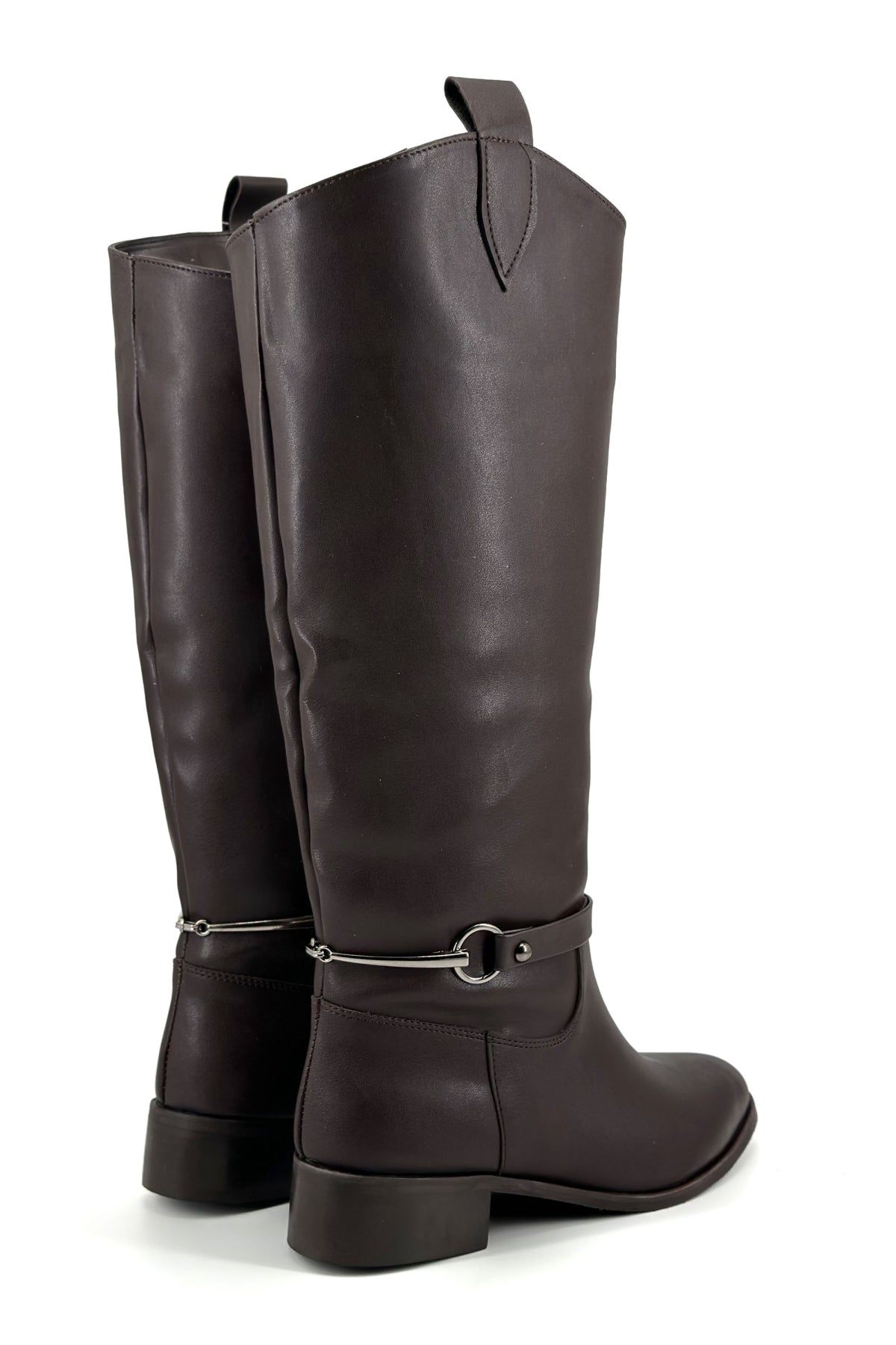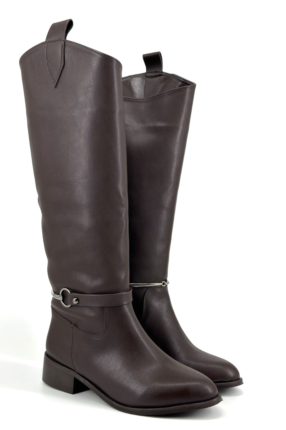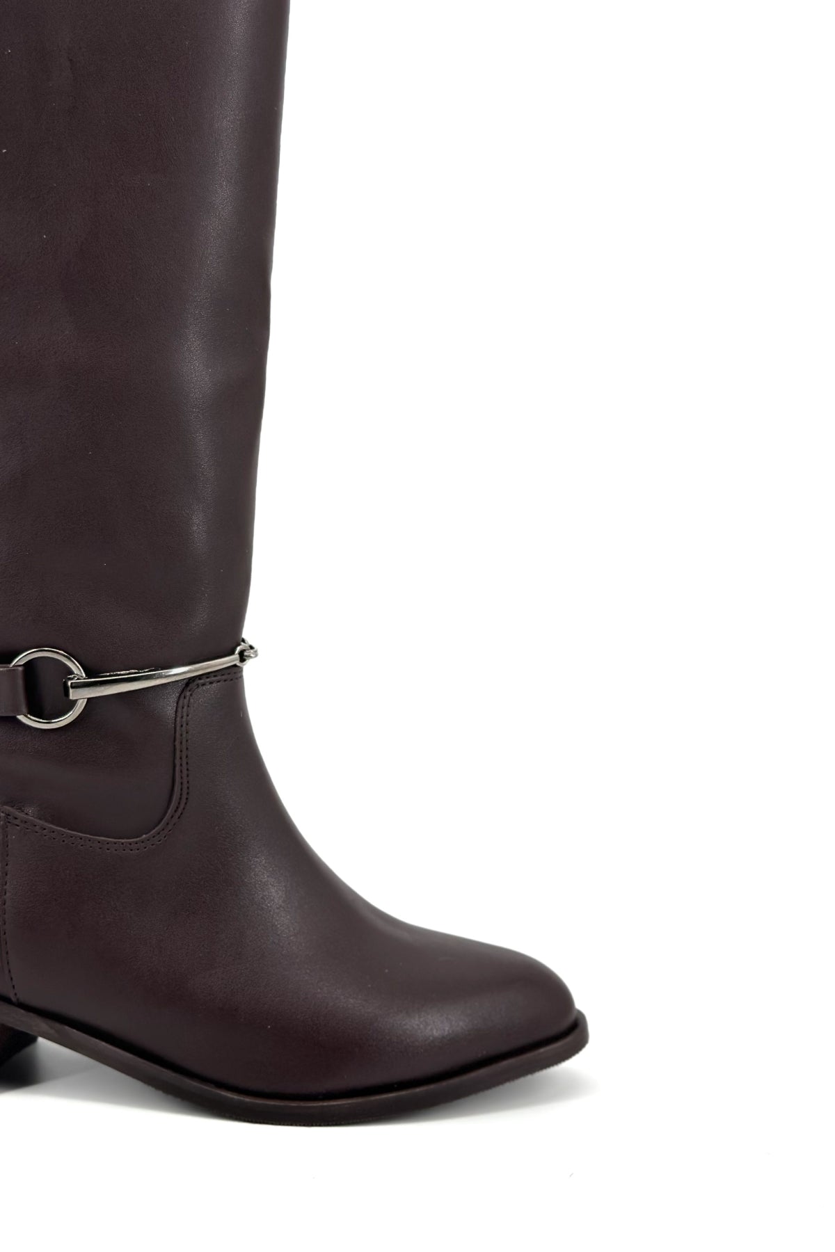 Vola Acı Kahve Deri Toka Detay Kadın Çizme