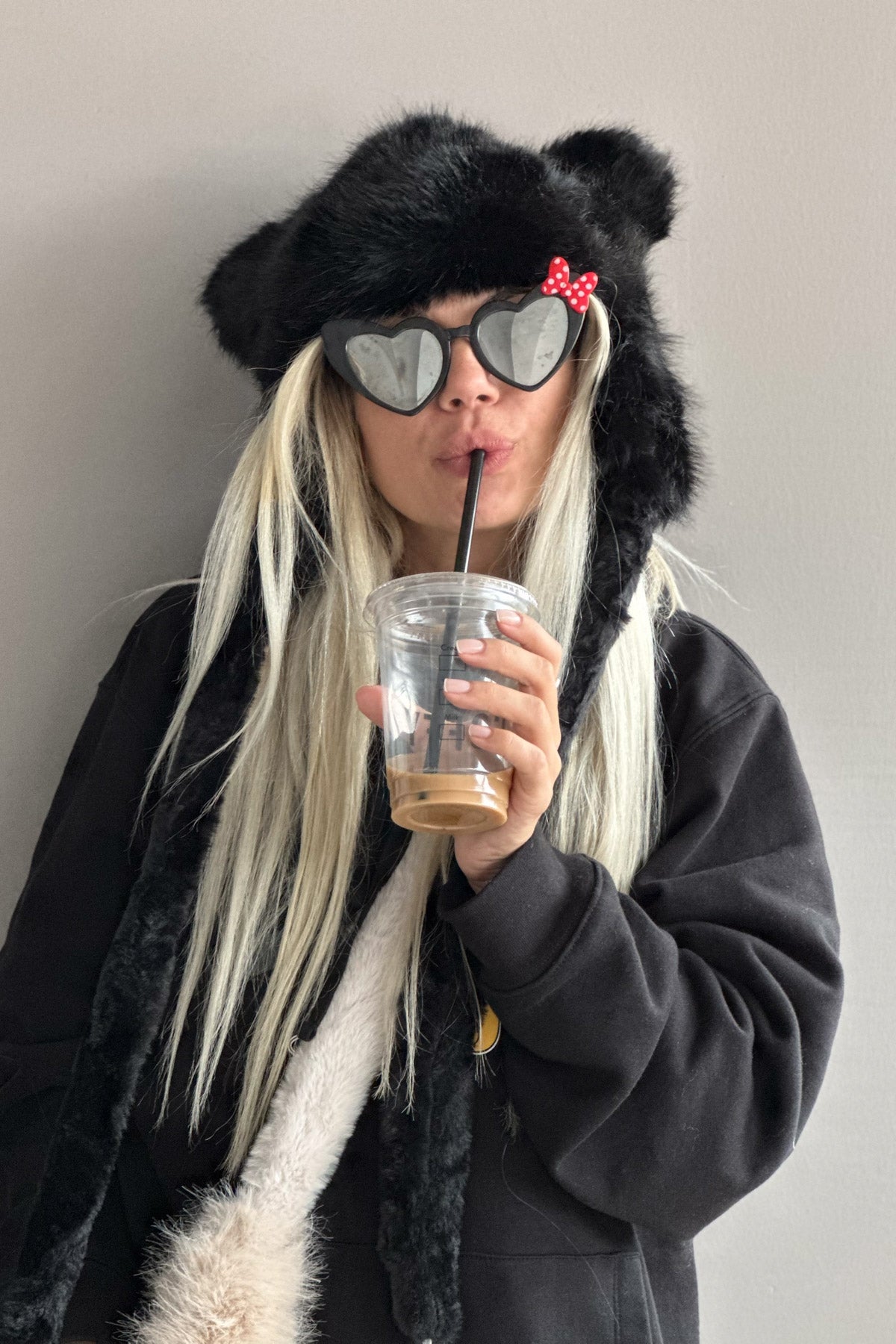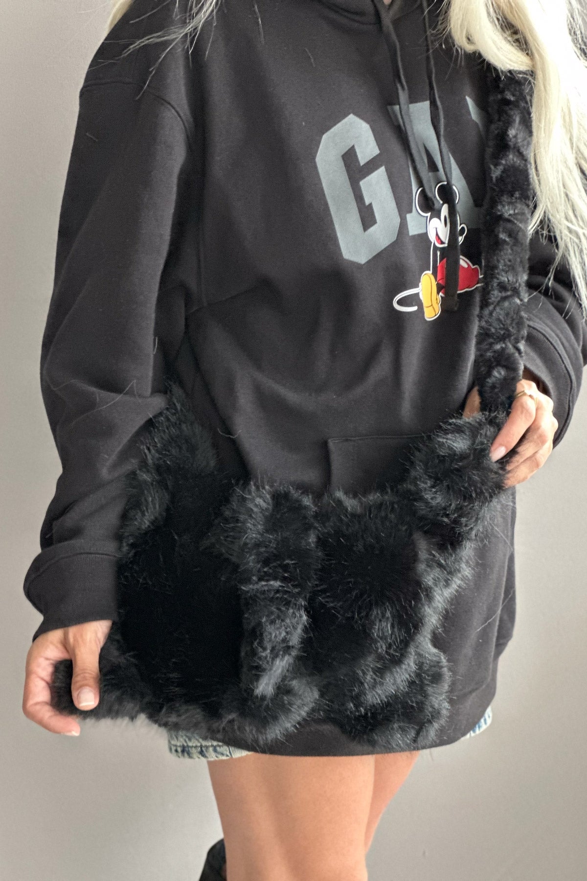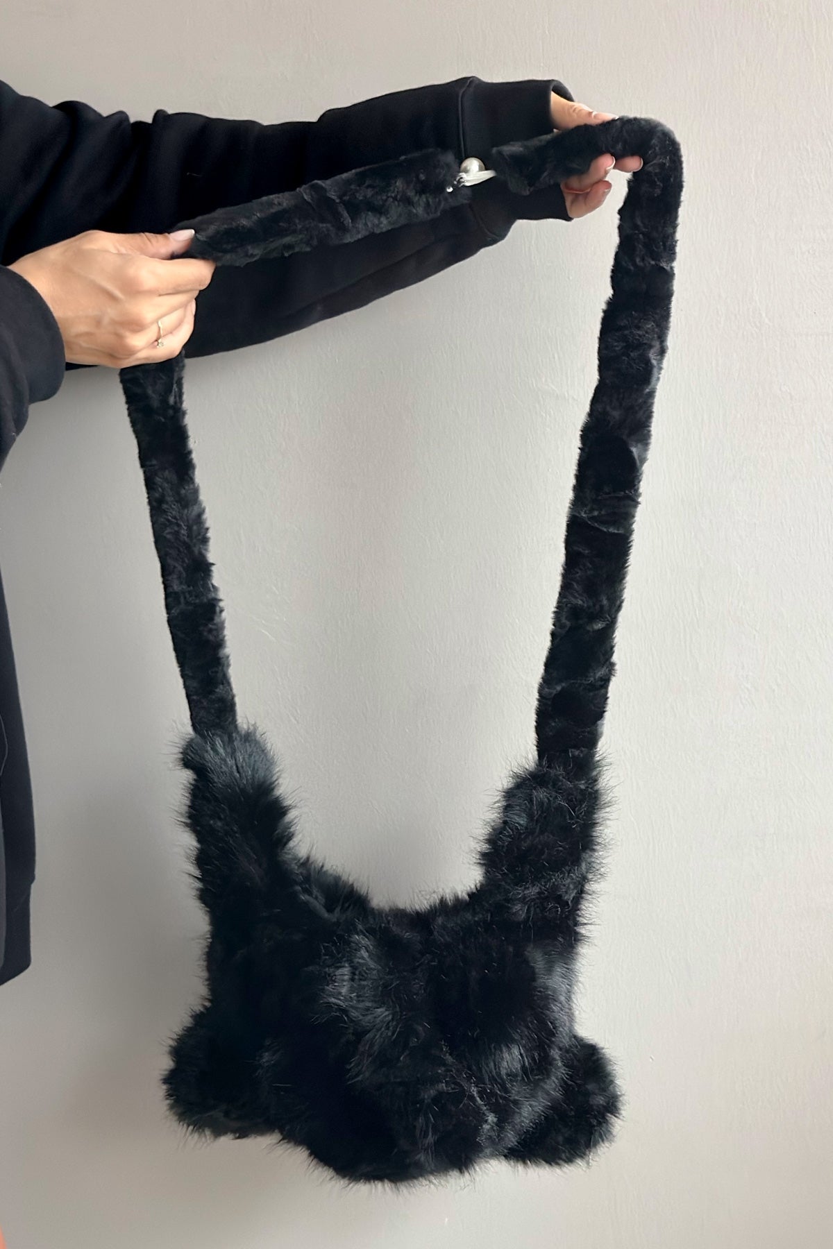 Noxy Siyah Peluş Hem Başlık Hem Çanta
