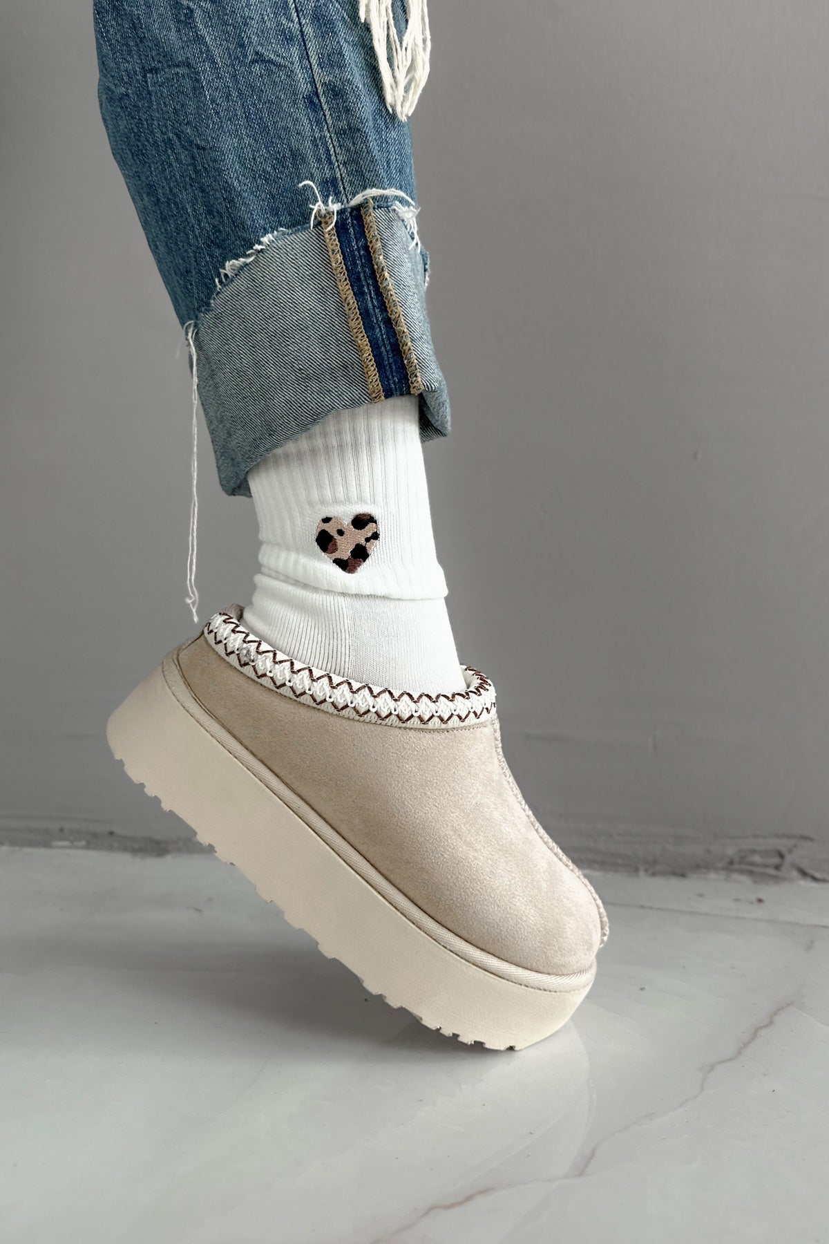 İçi tamamen yumuşak peluş kürkle kaplı yapısı sayesinde maksimum sıcaklık sağlar; kaymaz tabanı ile hem ev içinde hem de balkon, teras gibi alanlarda güvenli kullanım sunar. Şık formu ve estetik detayları sayesinde sadece bir ev terliği değil, aynı zamanda tarzınızı yansıtan bir aksesuar haline gelir.