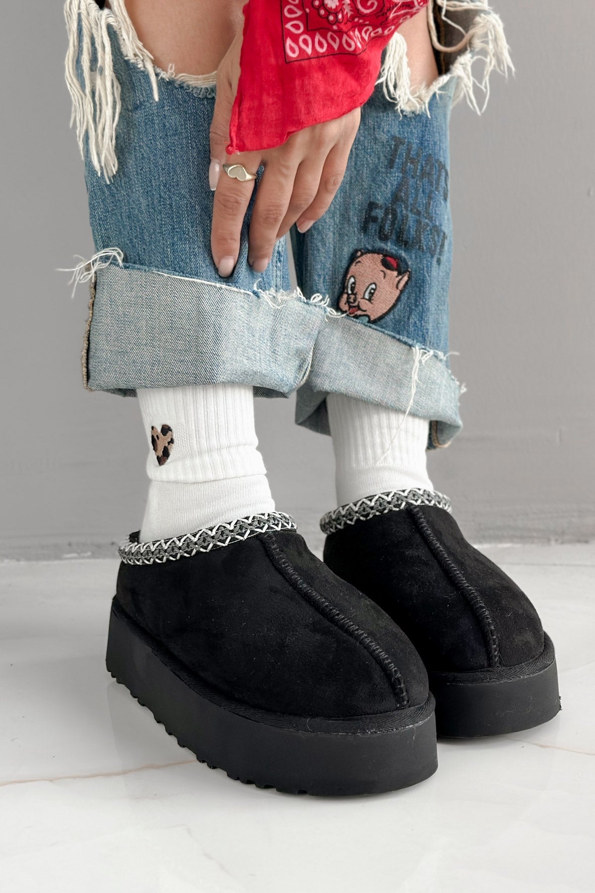 İçi tamamen yumuşak peluş kürkle kaplı yapısı sayesinde maksimum sıcaklık sağlar; kaymaz tabanı ile hem ev içinde hem de balkon, teras gibi alanlarda güvenli kullanım sunar. Şık formu ve estetik detayları sayesinde sadece bir ev terliği değil, aynı zamanda tarzınızı yansıtan bir aksesuar haline gelir.