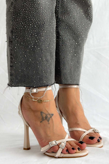Mojave Bej Rugan İki Bant Taşlı Toka Detay Kadın Sandalet