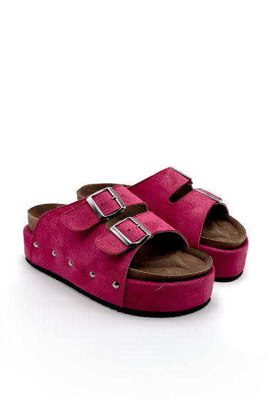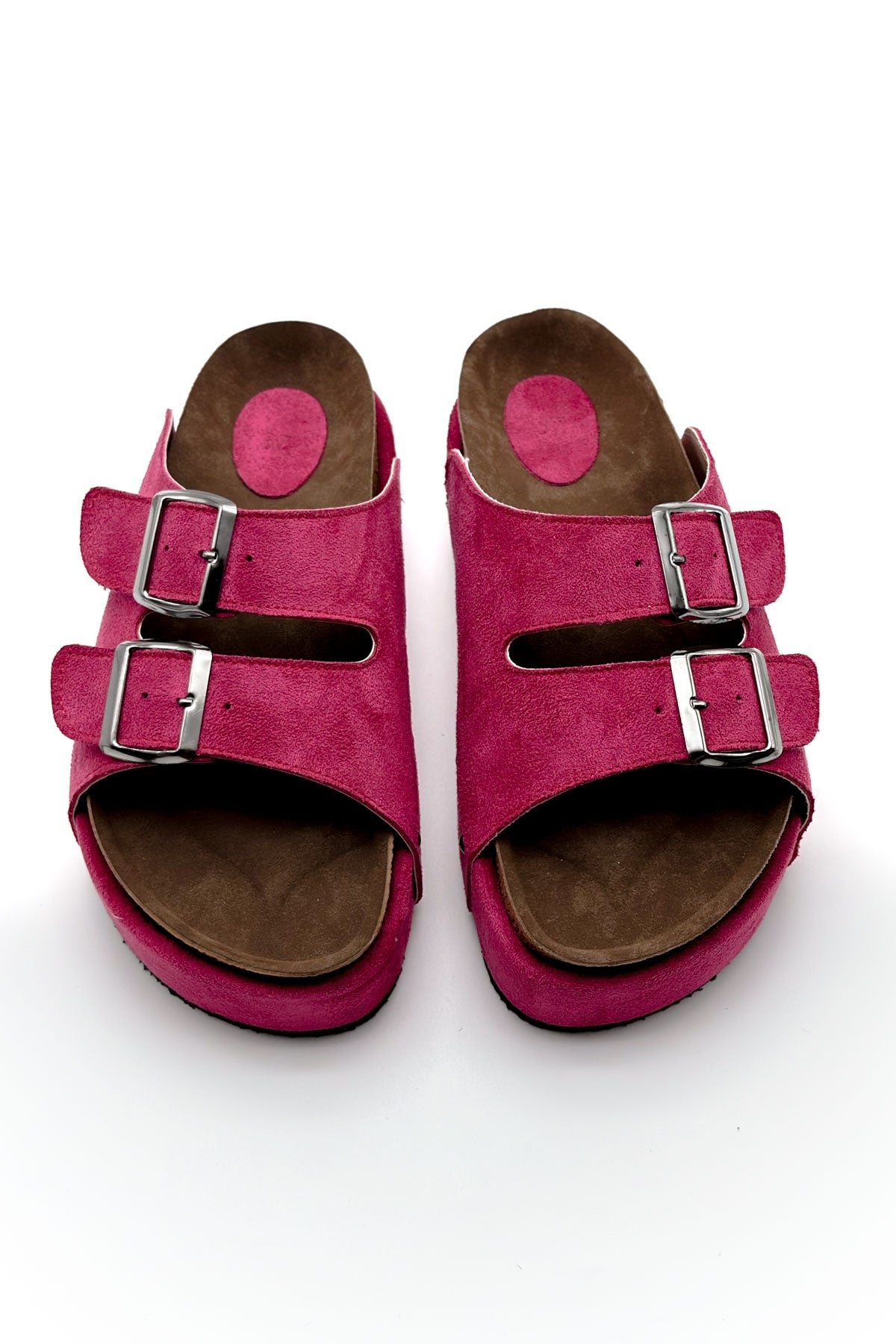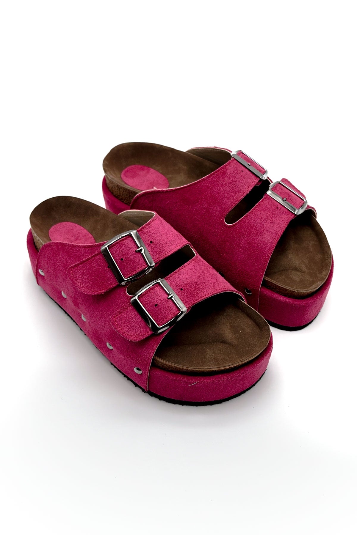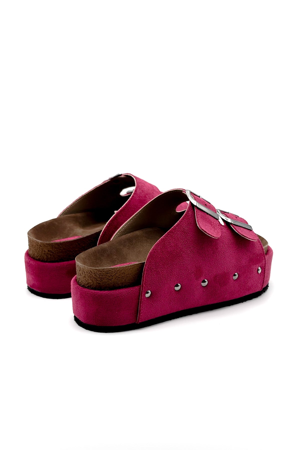 Denis Fuşya Yüksek Taban Zımbalı Kadın Terlik