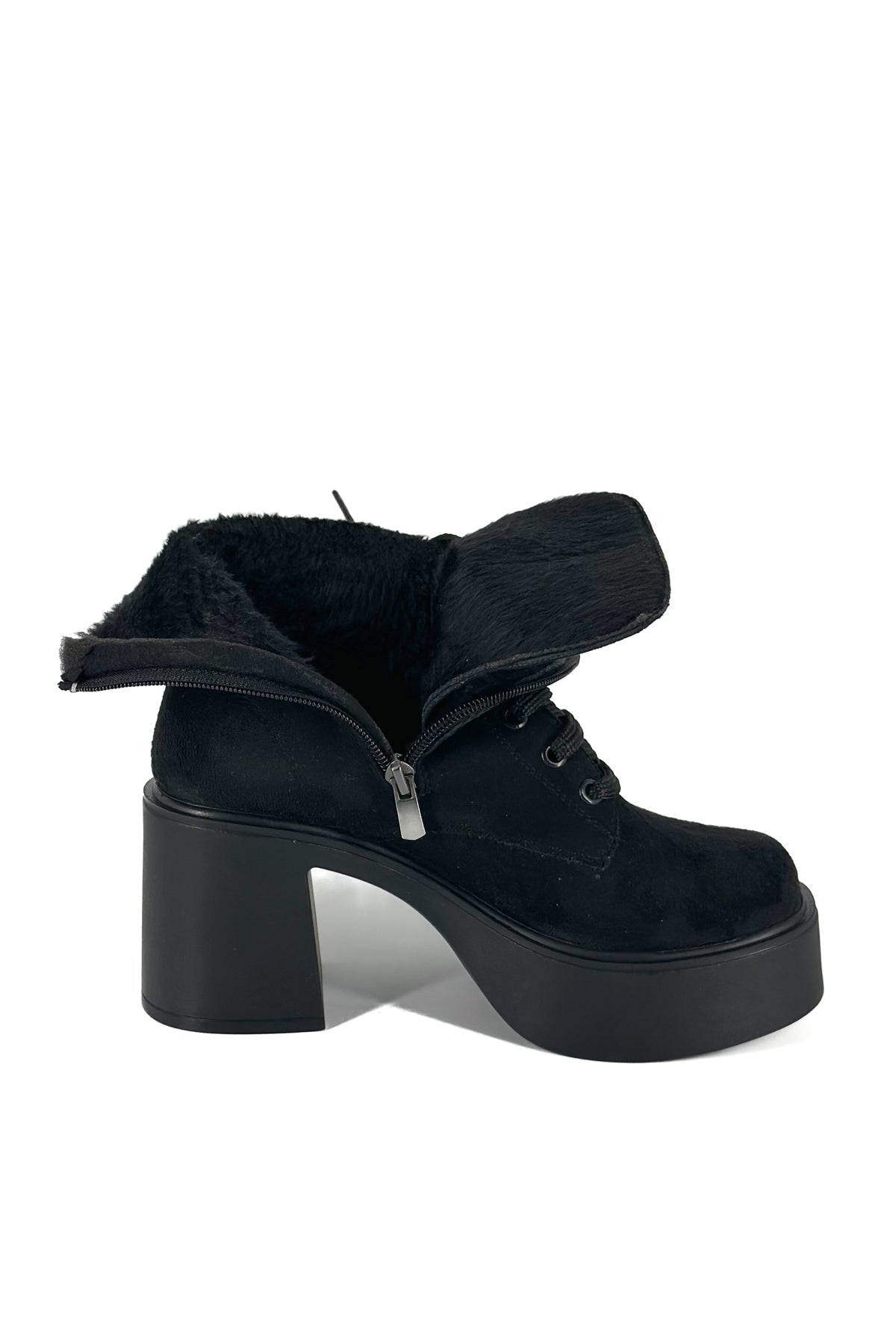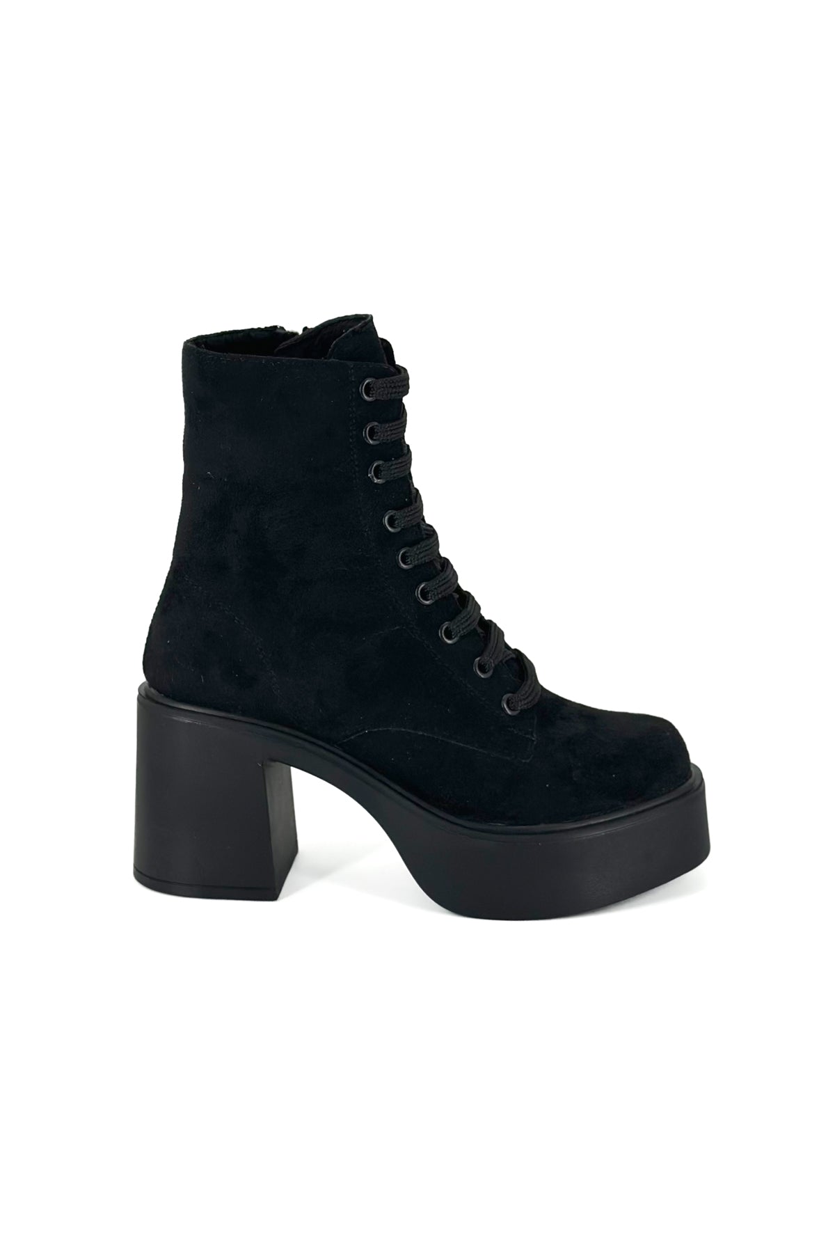 Calinda Siyah Süet Platform Topuk Kadın Bot