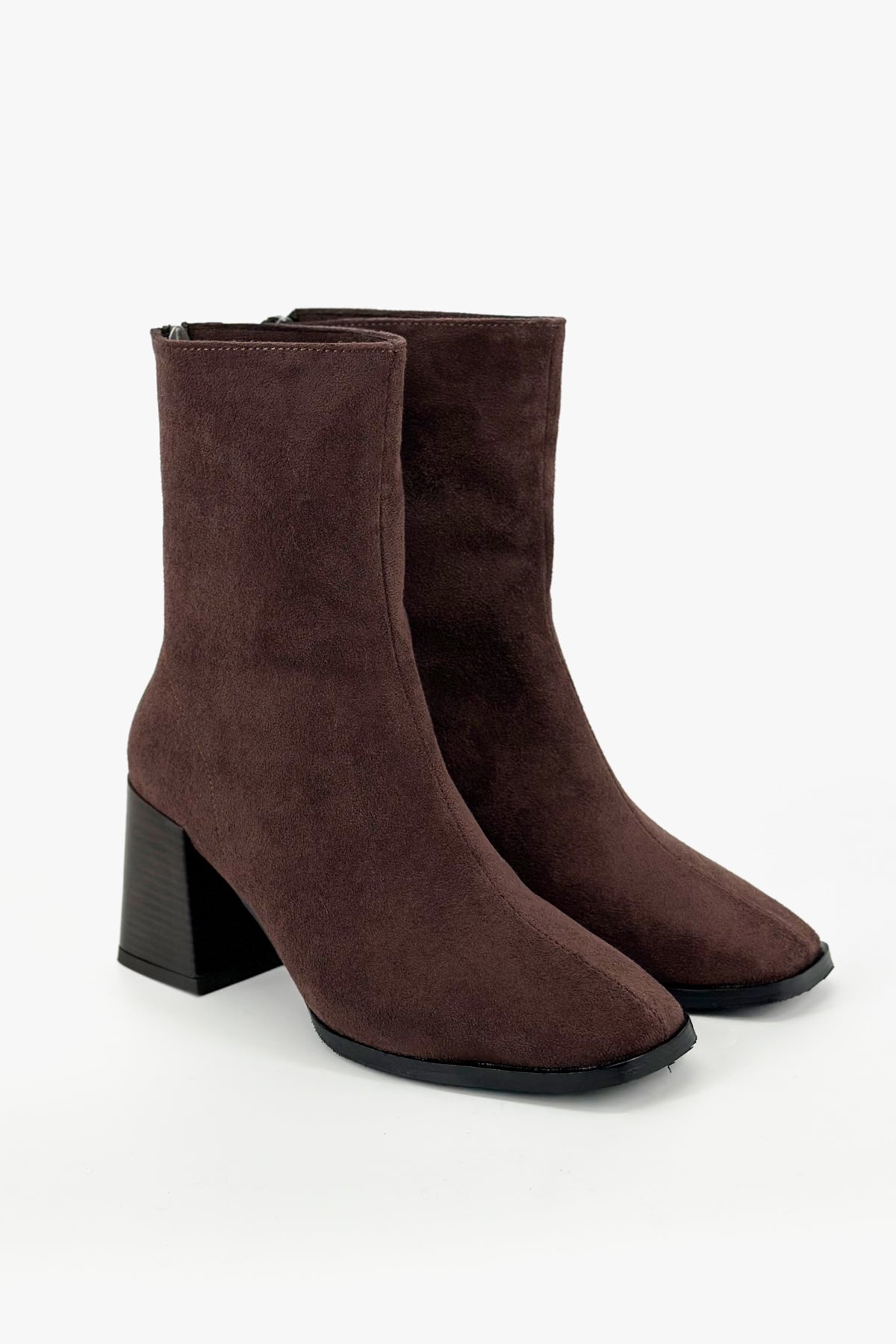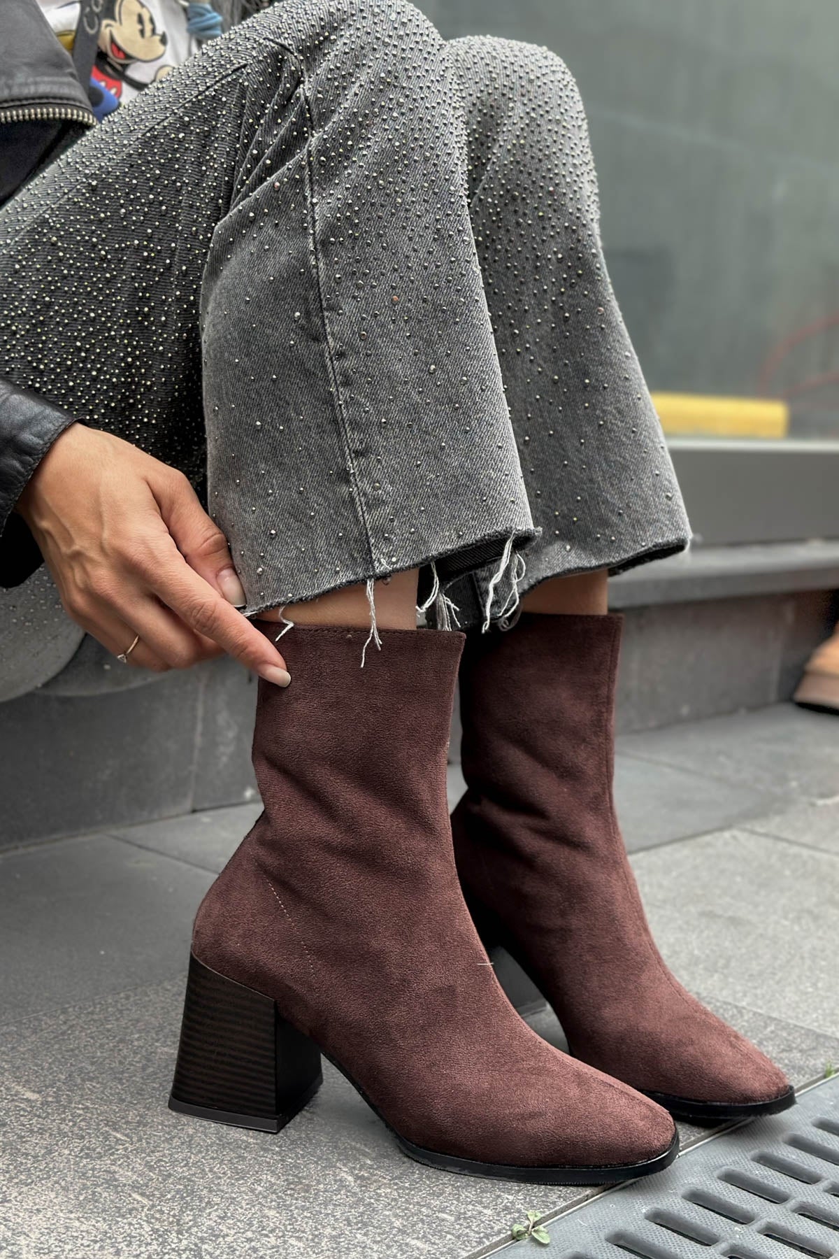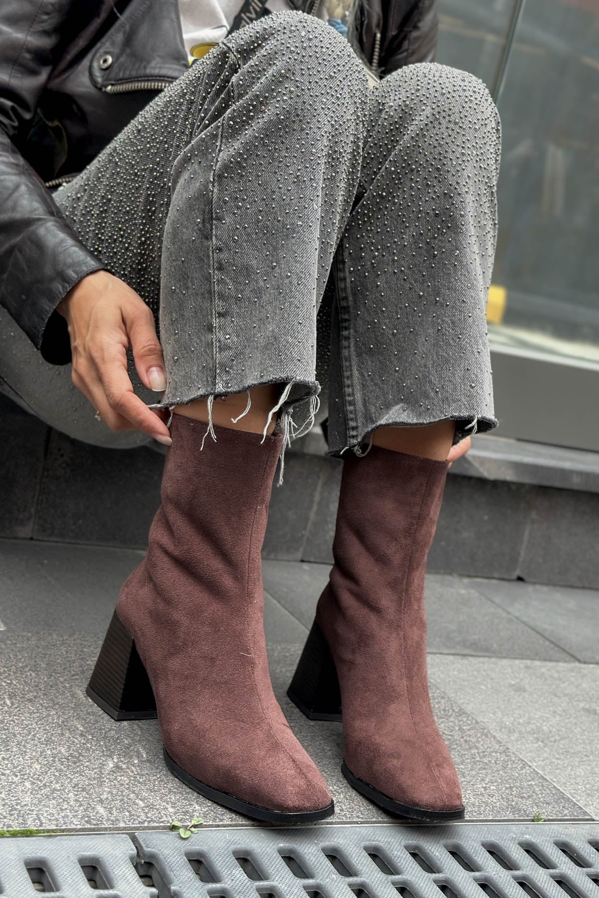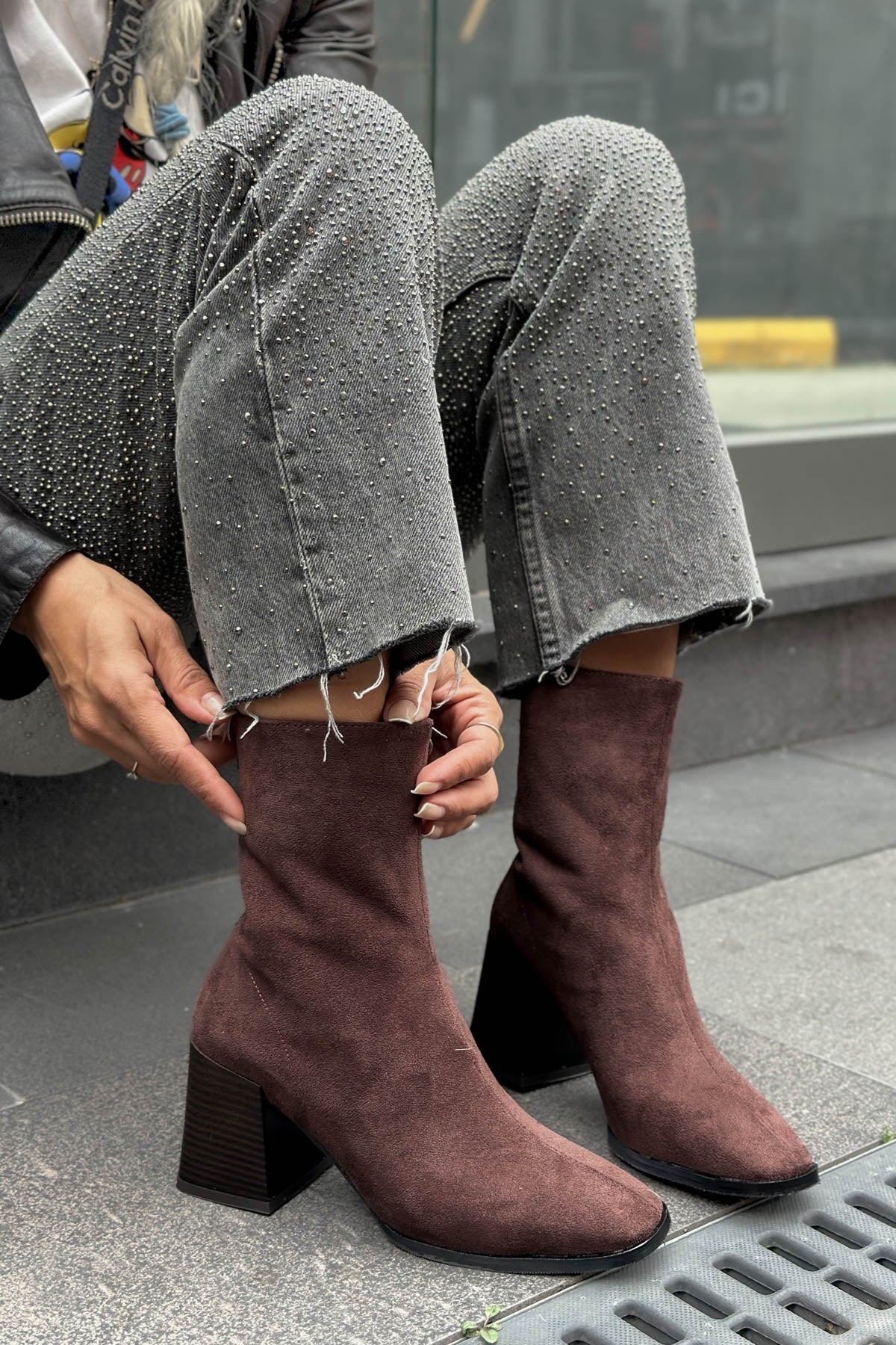 Marien Acı Kahve Süet Kalın Topuk Kadın Bot