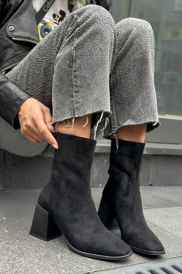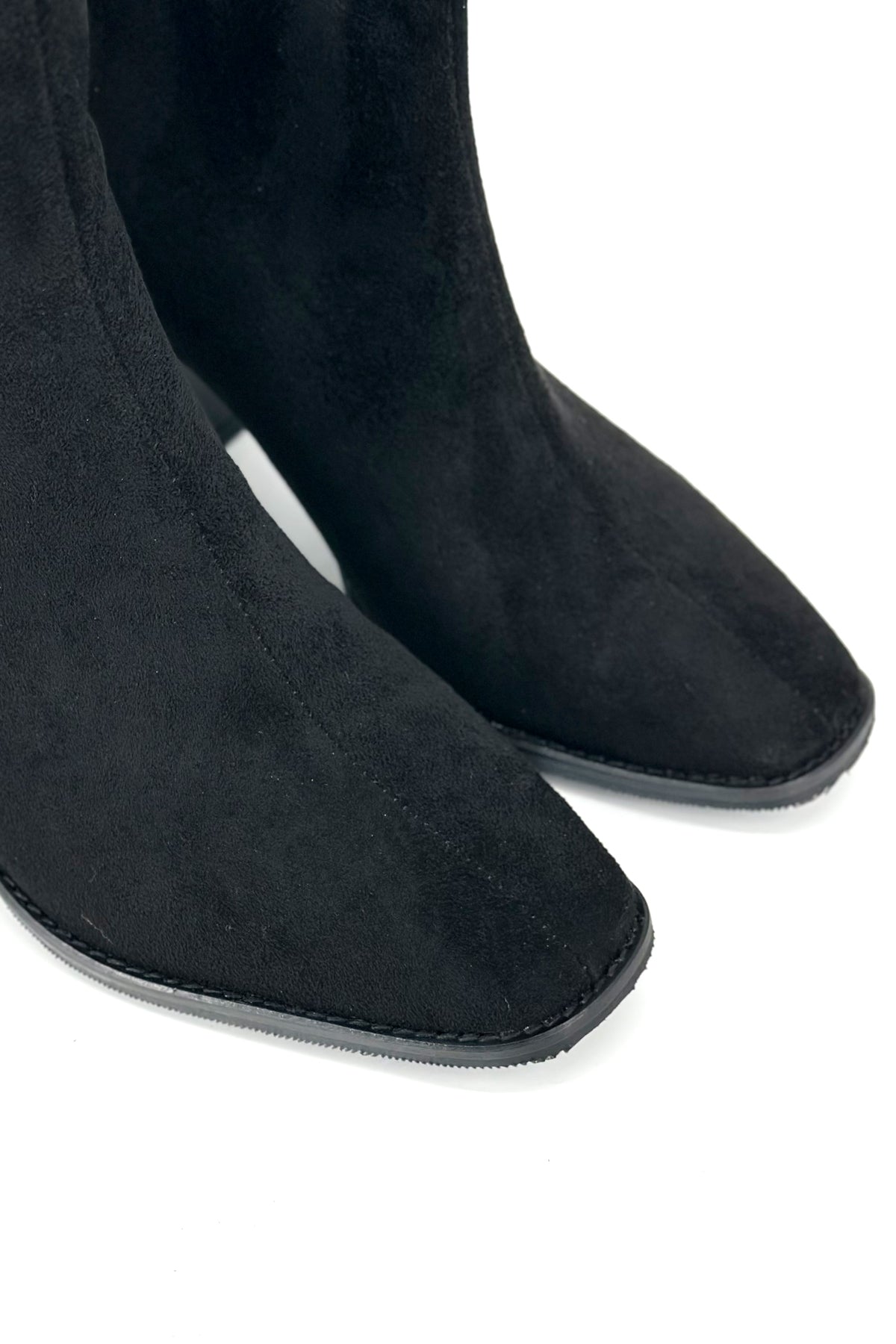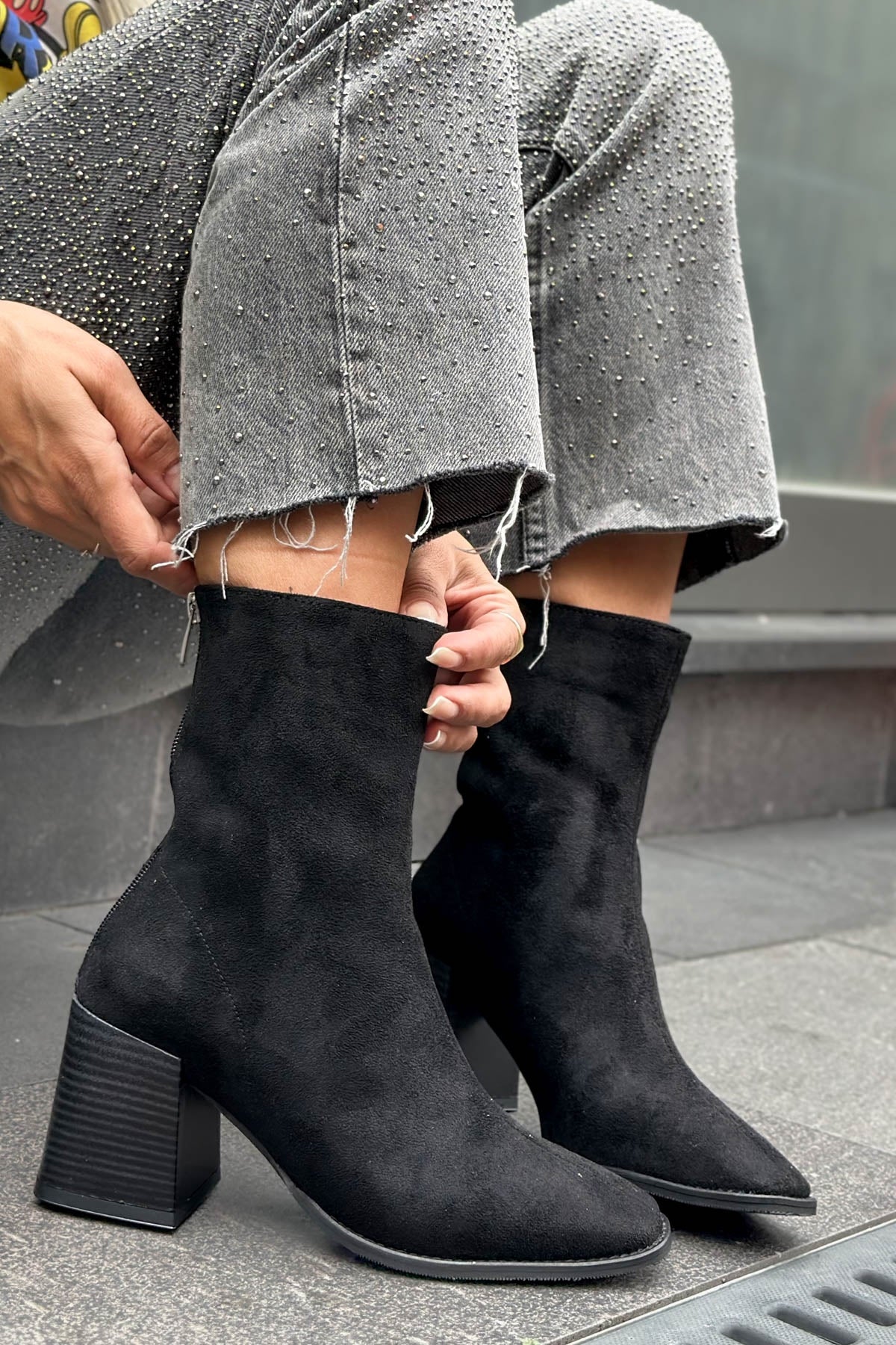 Marien Siyah Süet Kalın Topuk Kadın Bot
