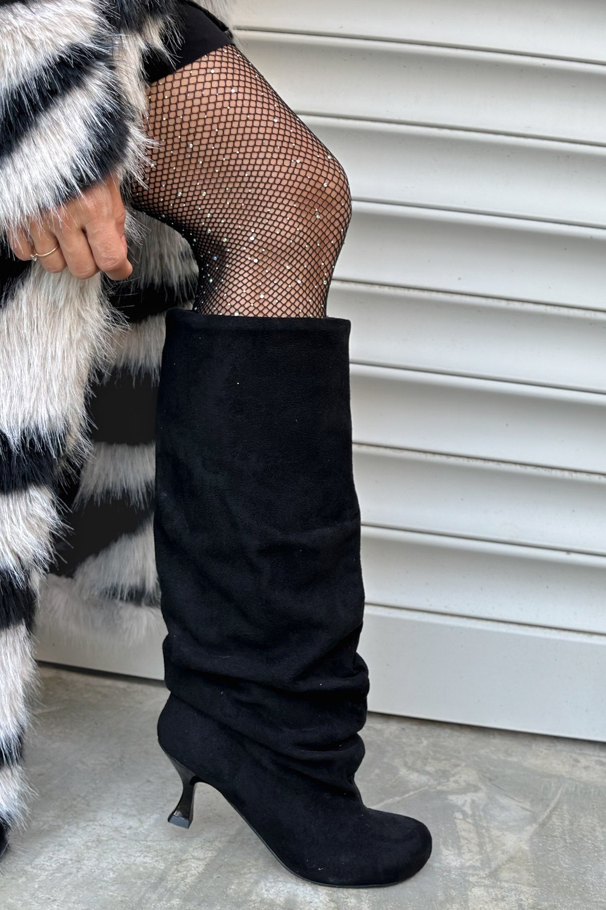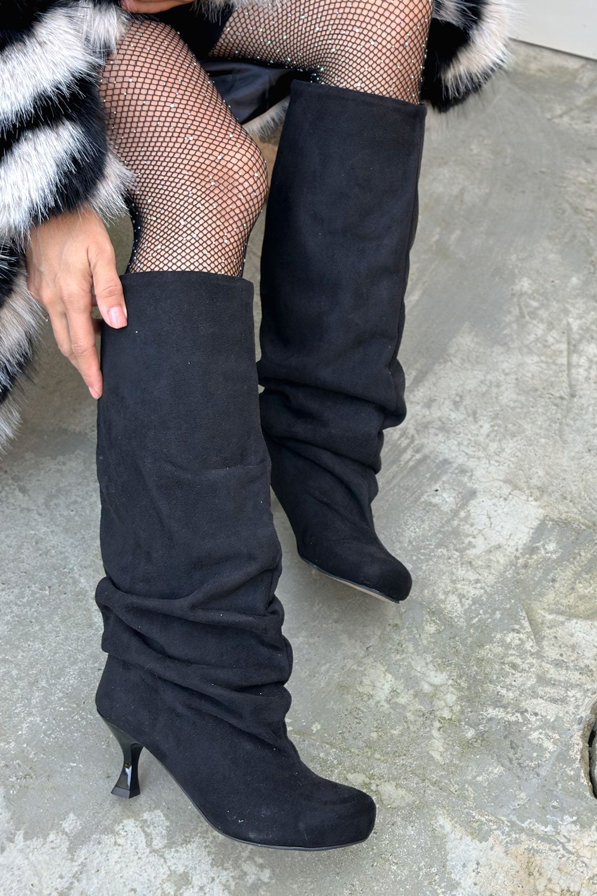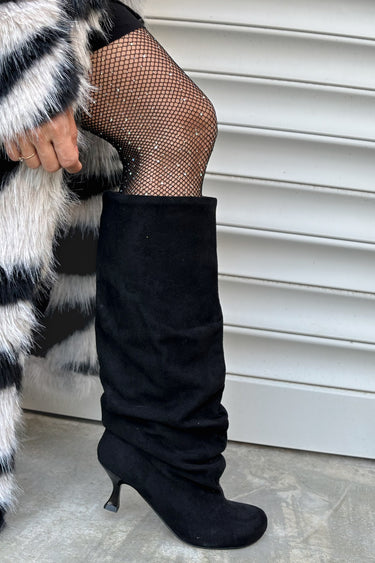 Lea Siyah Süet Yuvarlak Burun Topuklu Kadın Çizme