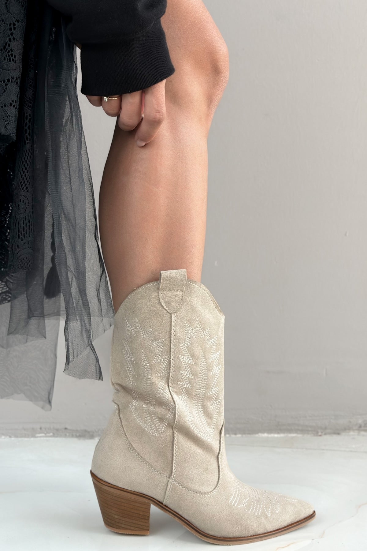 Sezonun favori parçalarından Carlos kısa kovboy çizme, zarif nakış işlemeleri ve karakteristik kovboy formu ile kış modasının vazgeçilmezi! Günlük stilinizde fark yaratmak isteyenler için tasarlanan bu model, ister jean ister elbise kombinleriyle her tarzda iddialı bir görünüm sunar.