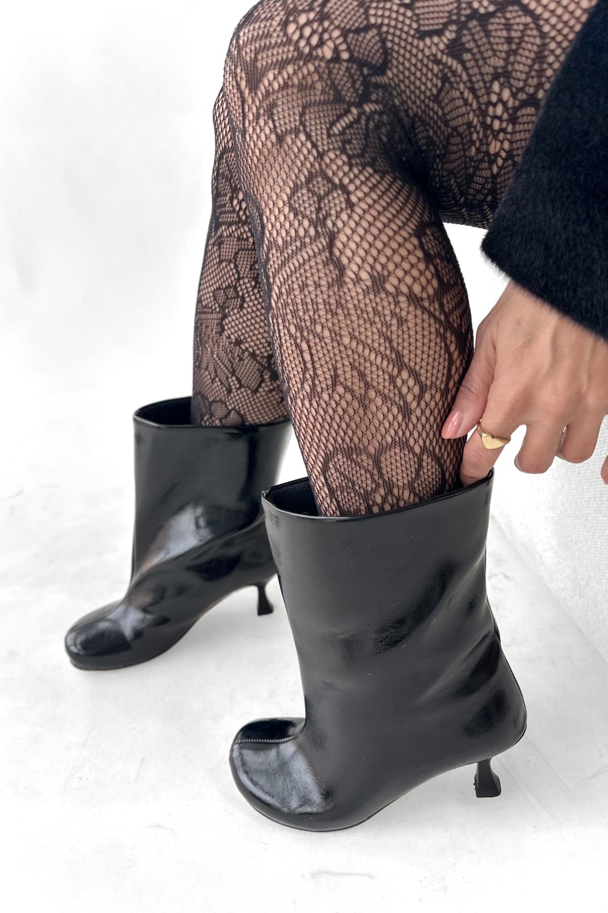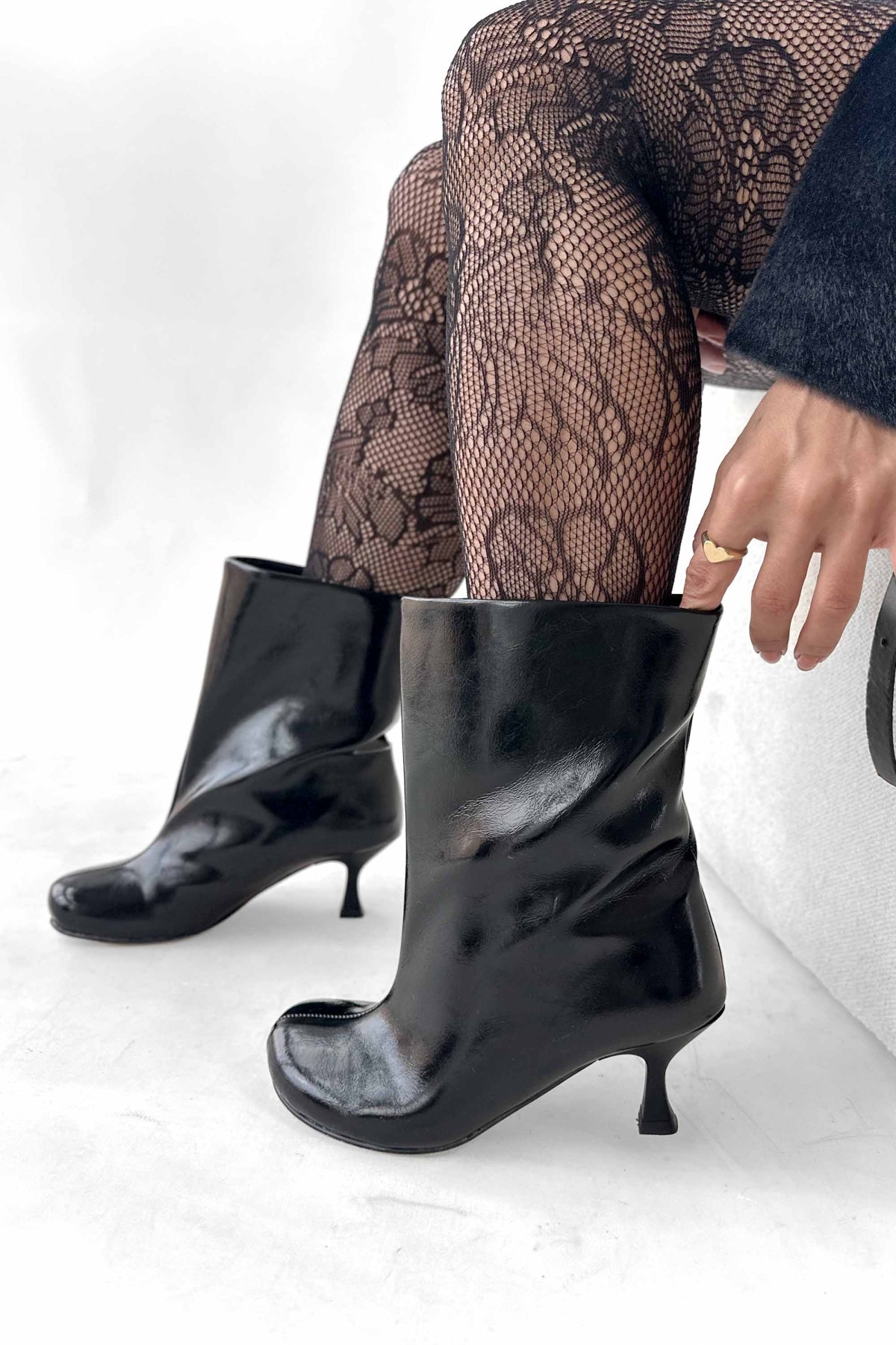 Cenny Siyah Çatlak Rugan Yuvarlak Burun Geniş Kesim Kadın Bootie