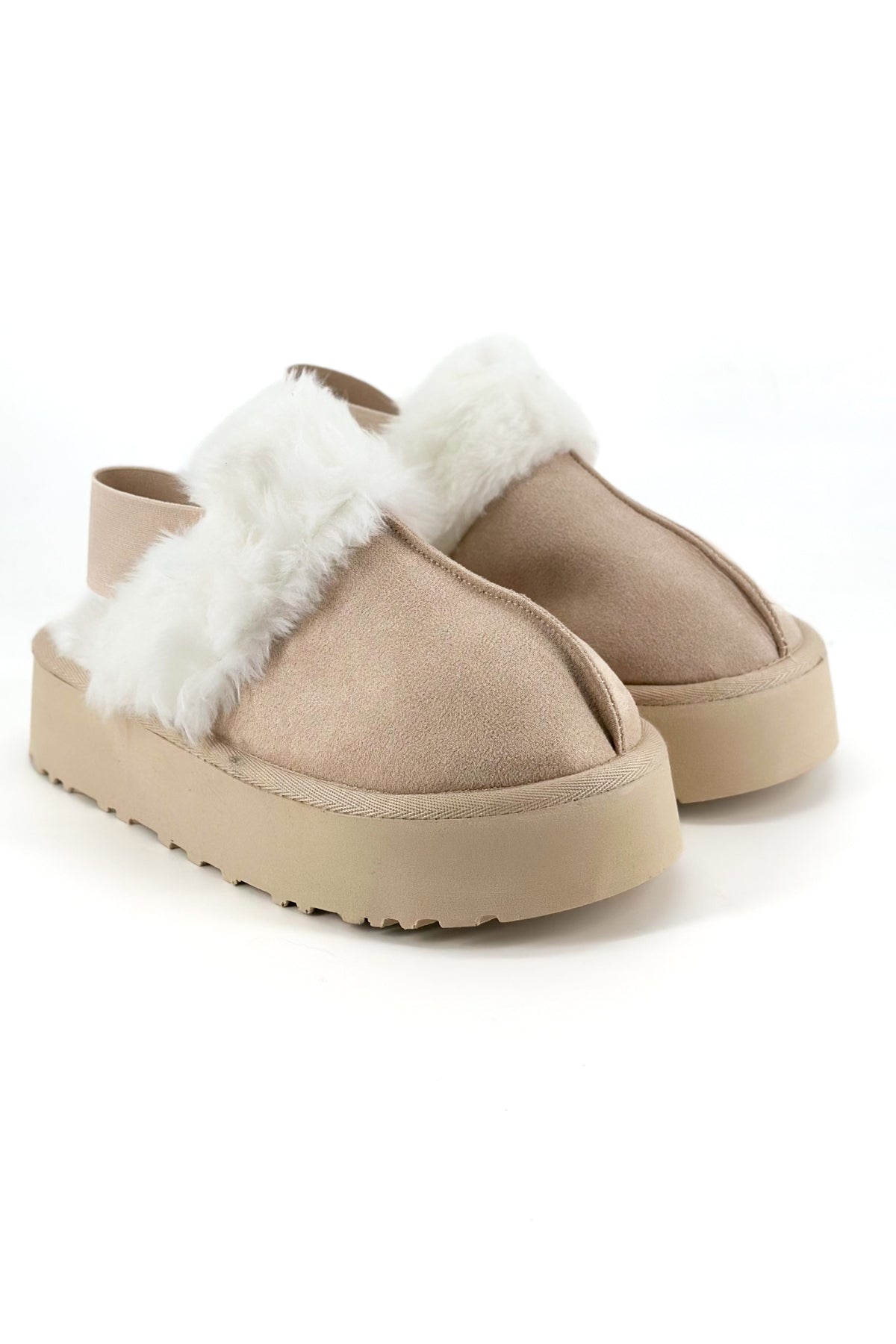 Echo Bej Lastik Bantlı Kadın Peluş Terlik