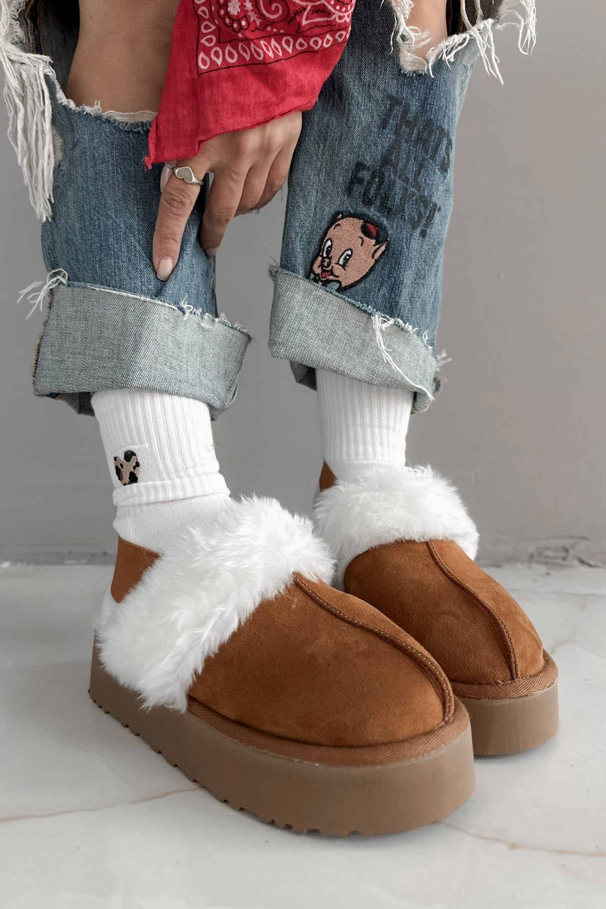 Yoğun peluş kaplaması sayesinde ayaklarınızı soğuktan korurken, modern tasarımıyla sade ama göz alıcı bir görünüm oluşturur. Günlük kullanıma uygun yapısı, rahatlık ve stil arayanlar için mükemmel bir tercihtir.