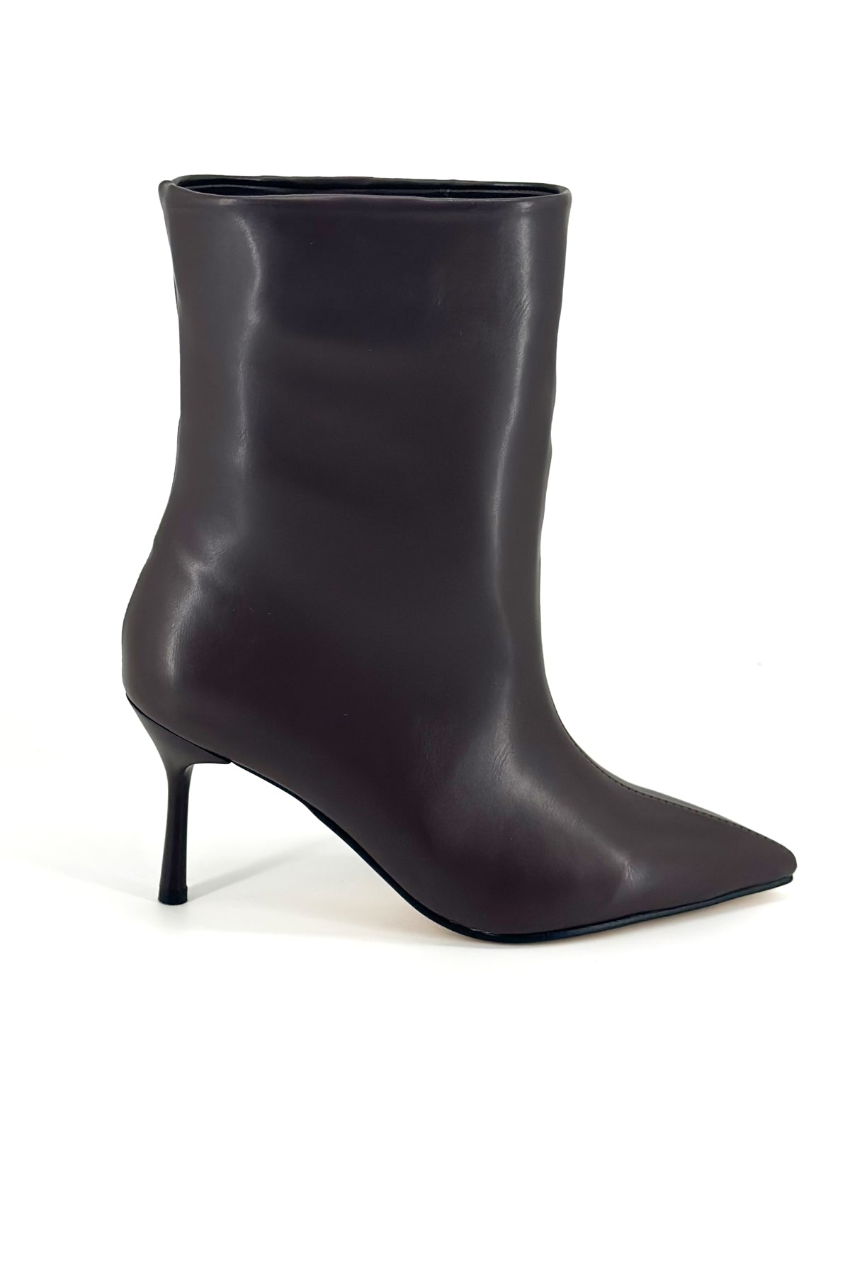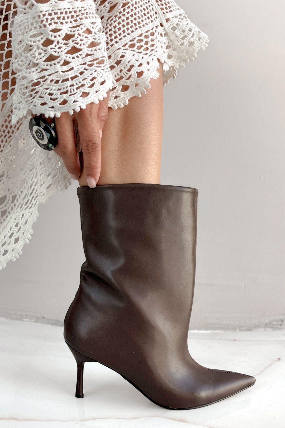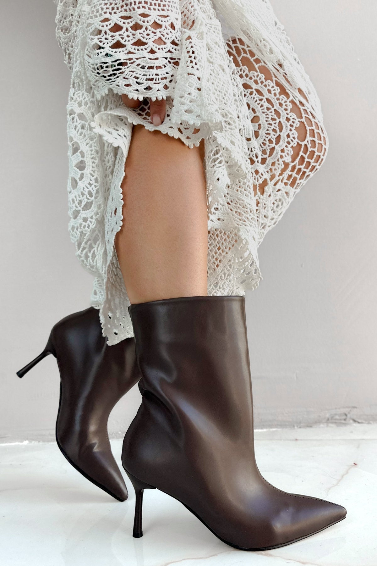 Lana Acı Kahve Deri Bol Kesim KadınTopuklu Boti