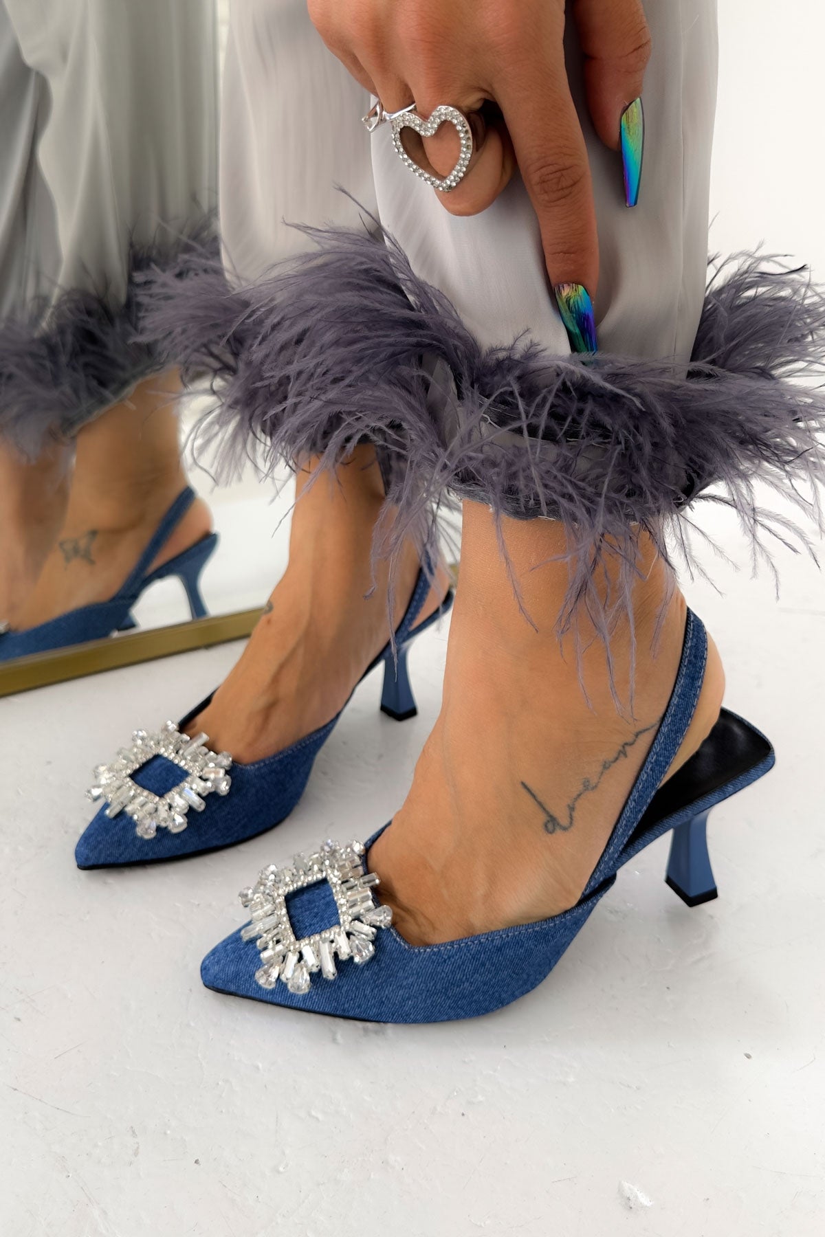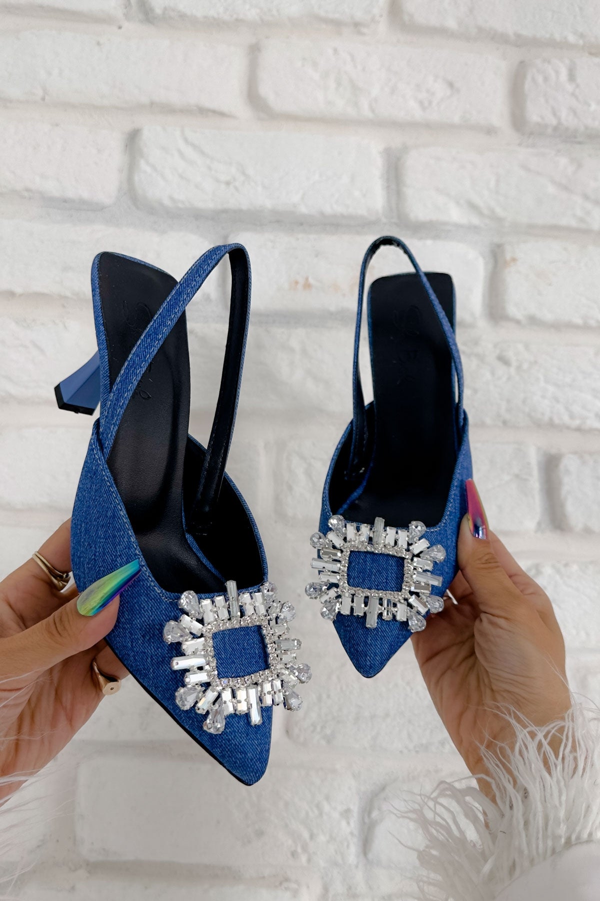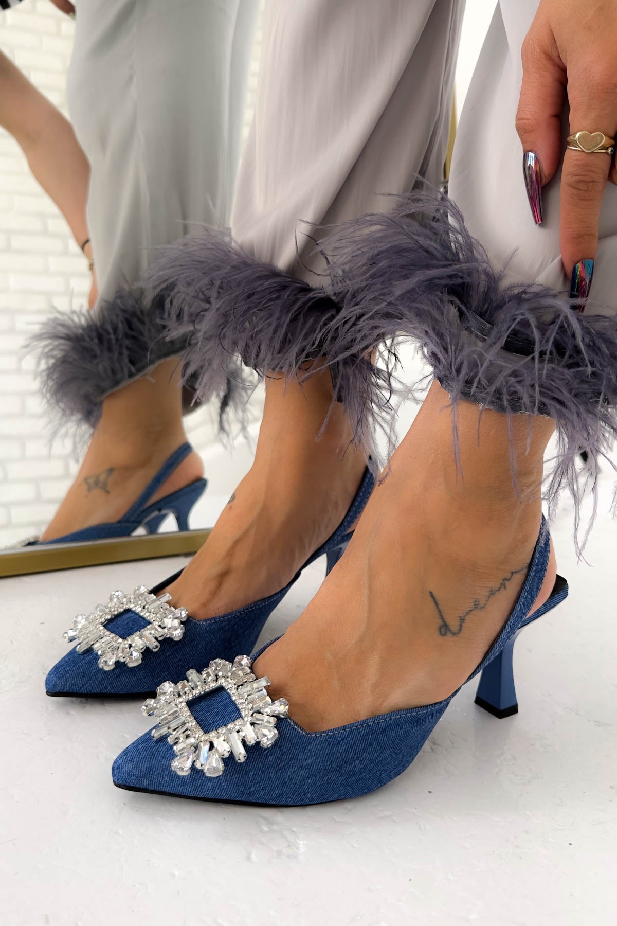 Quiero Koyu Kot Rengi Taşlı Açık Stiletto