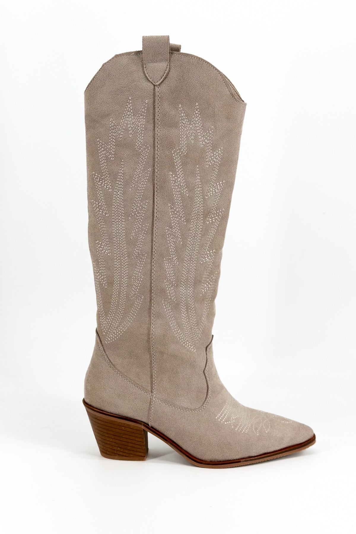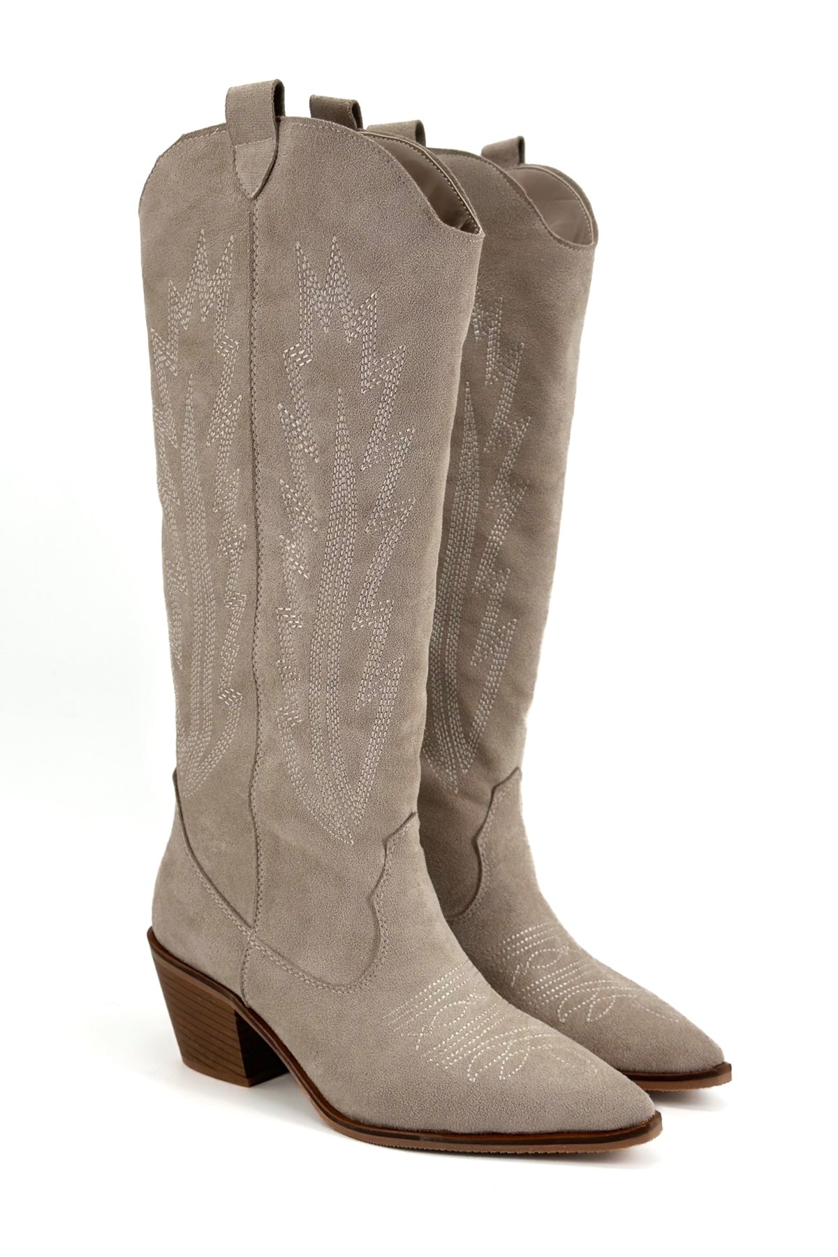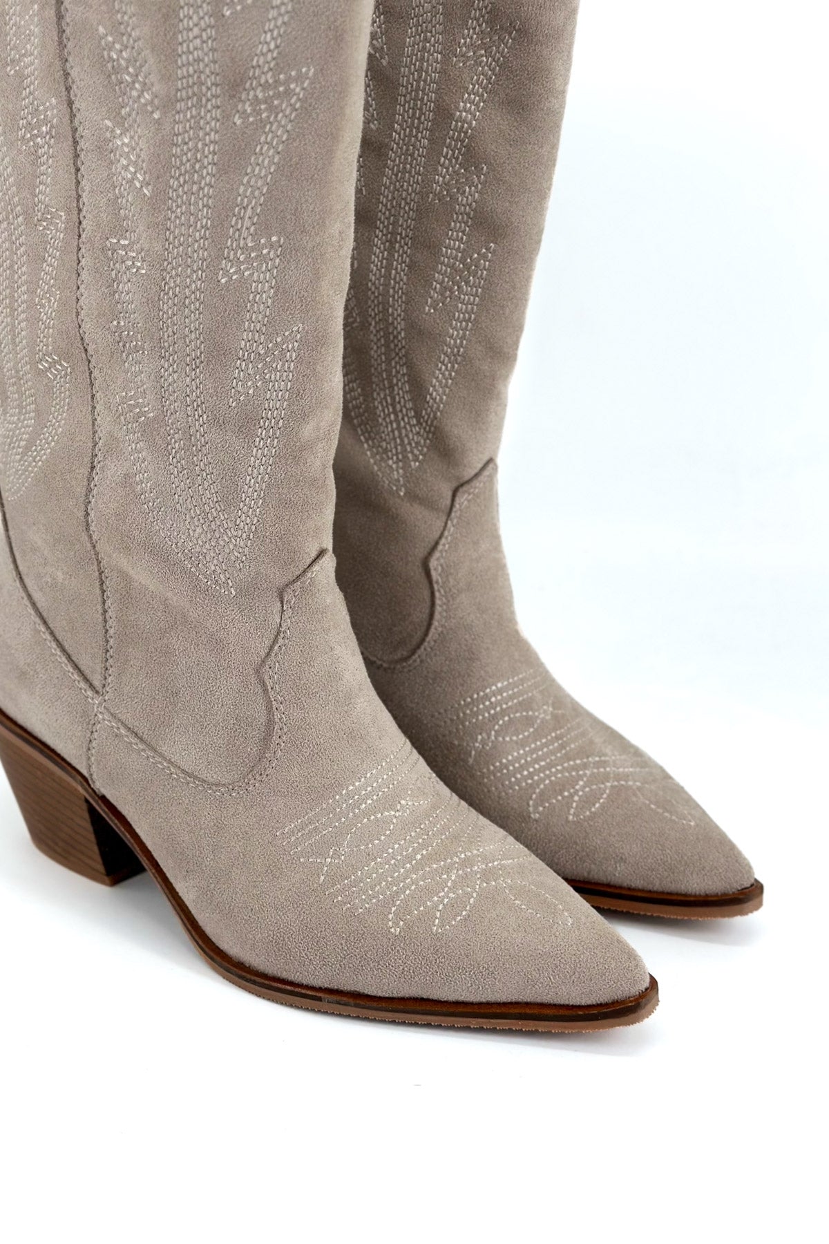 Ruffle Bej Süet Kadın Kovboy Çizme