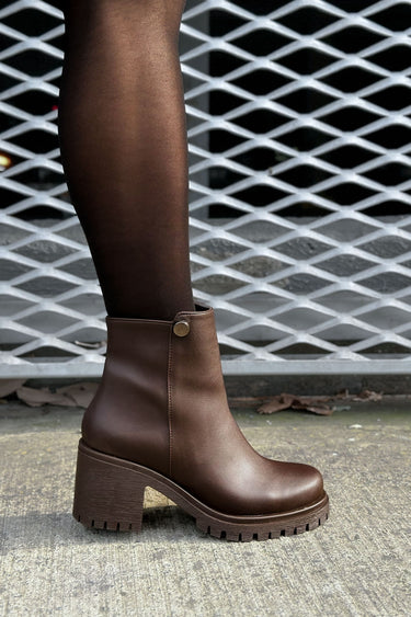 Sheron Acı Kahve Deri Topuklu Kadın Bot