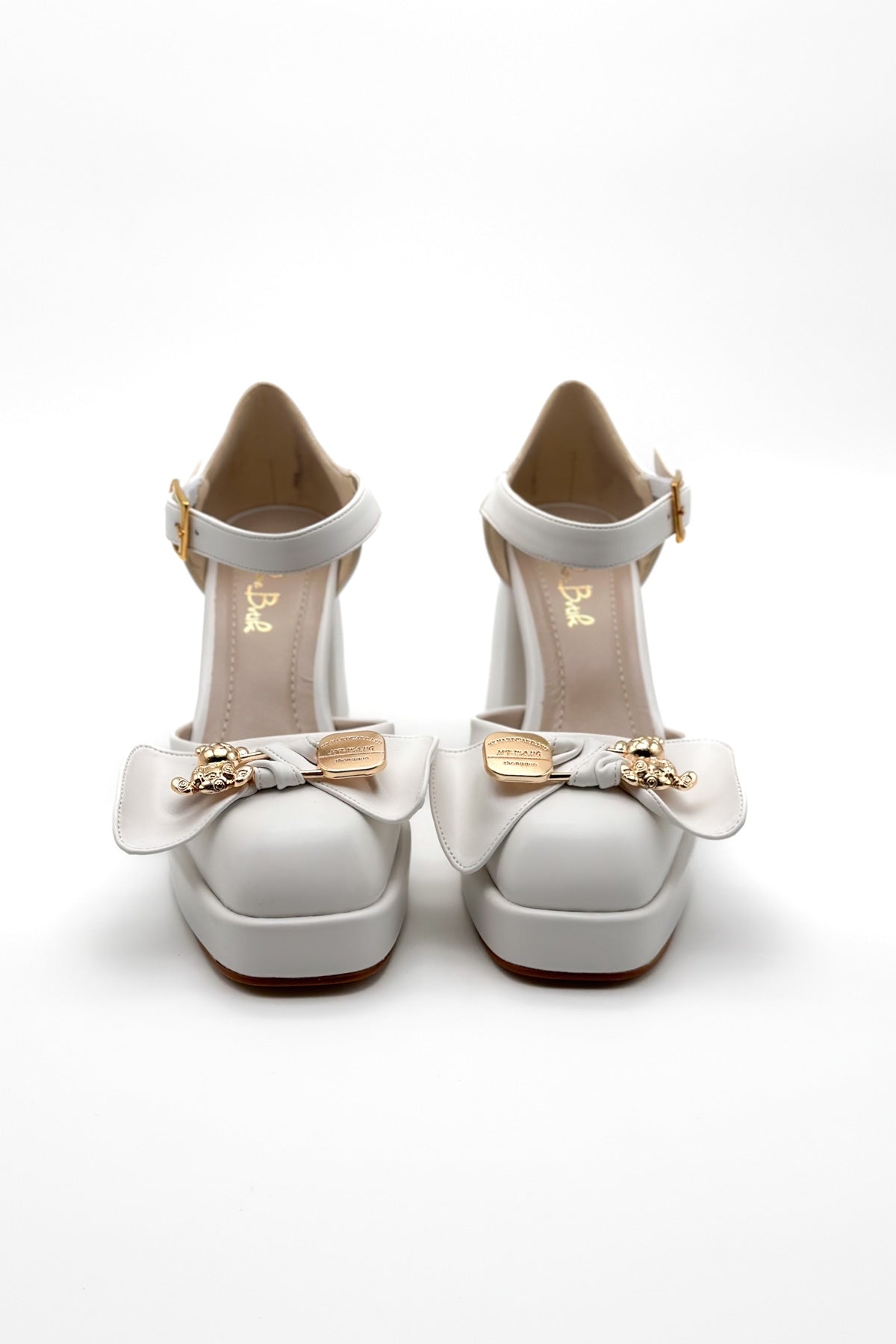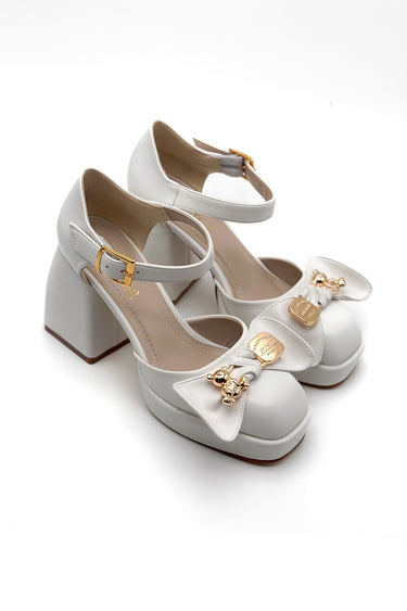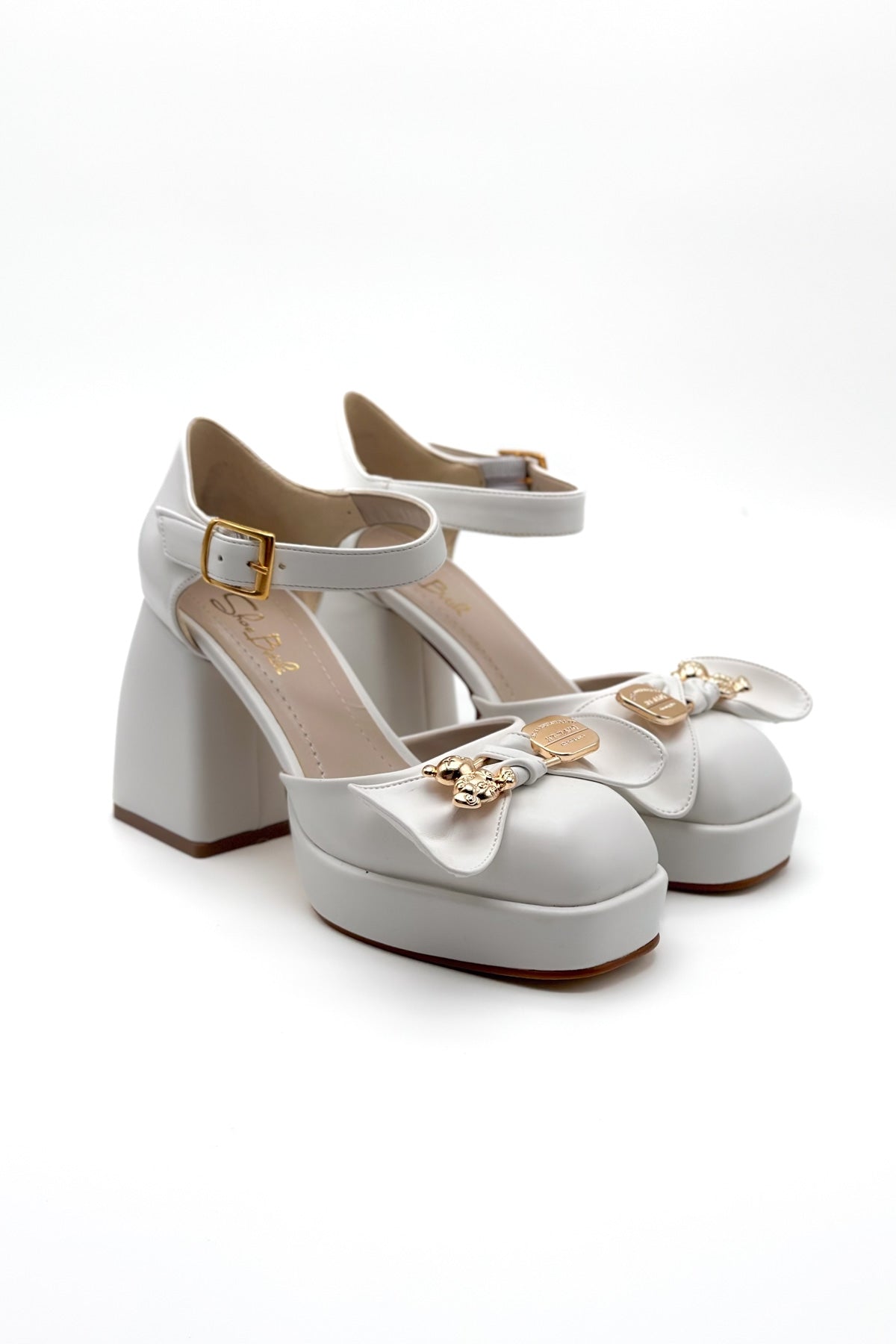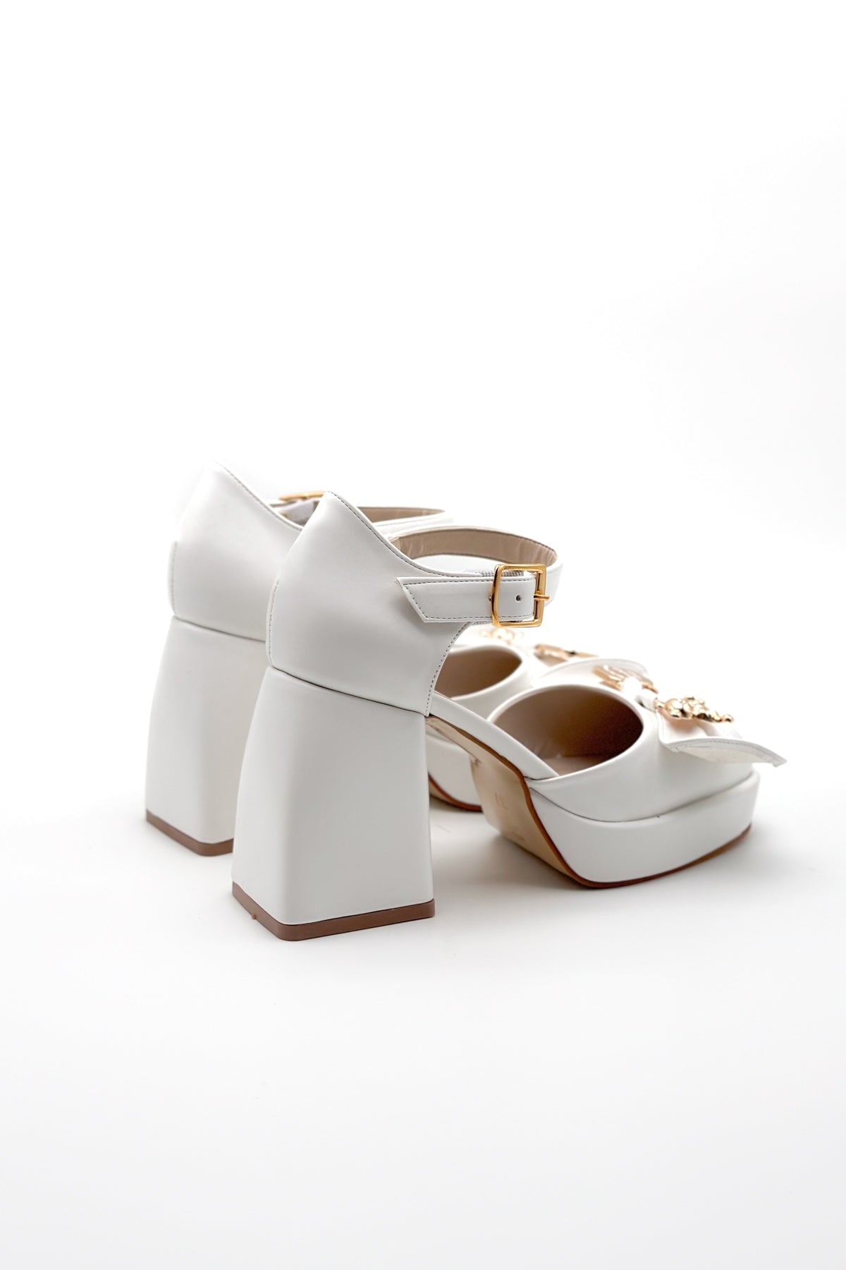 Sky Beyaz Deri Ayıcık Tokalı Platform Kadın Ayakkabı