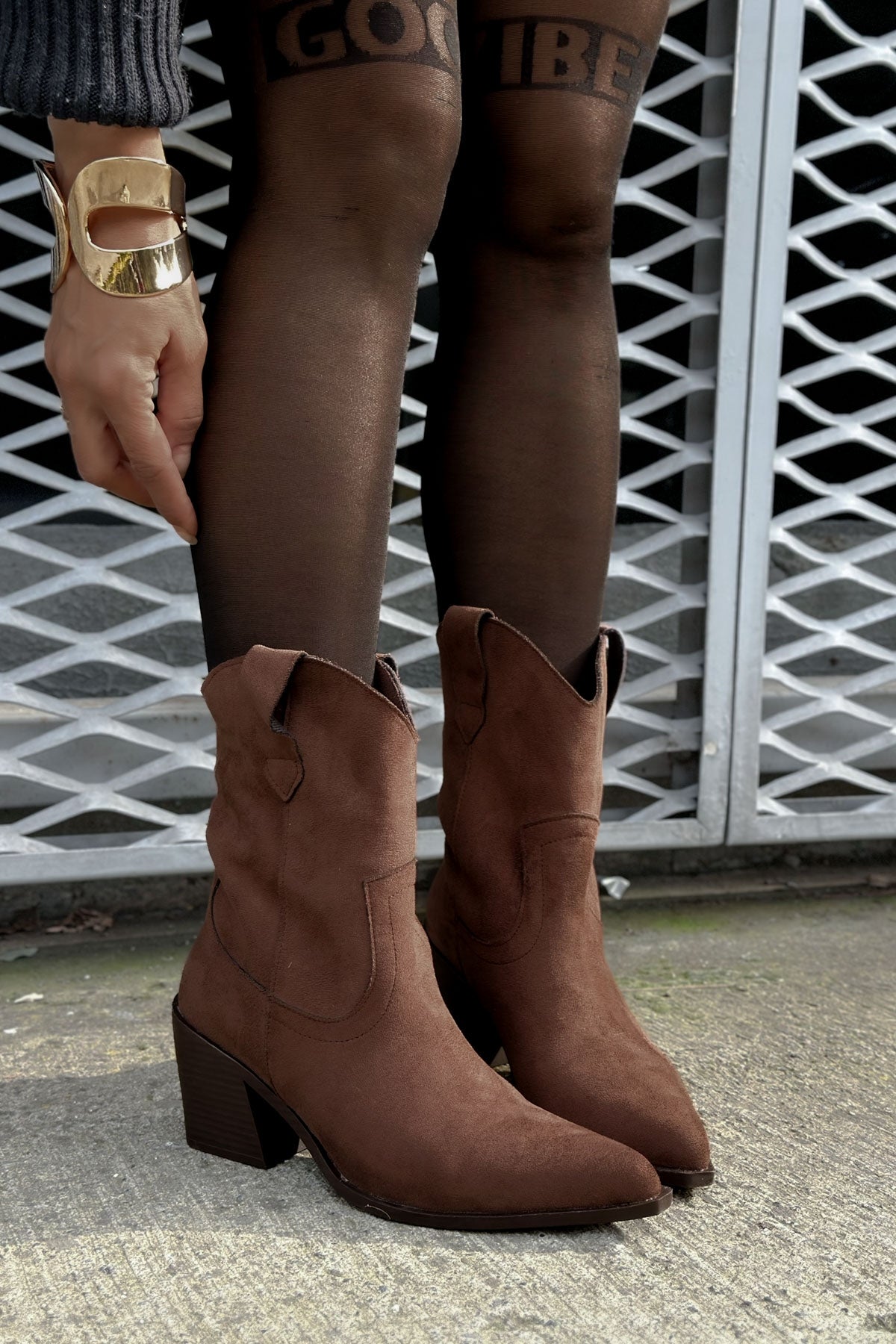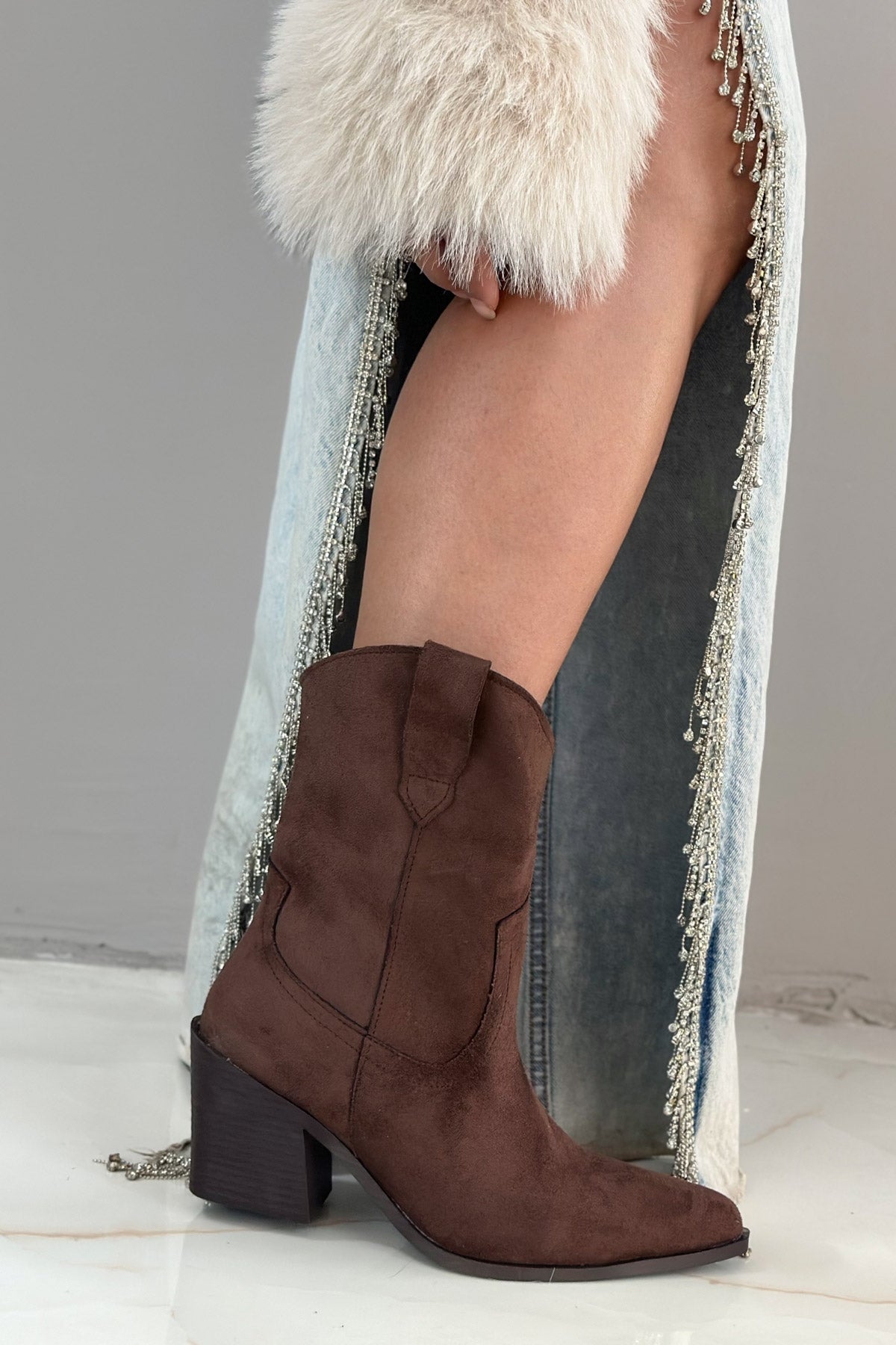 Thurma Acı Kahve Süet Western Kalın Topuk Kadın Bot