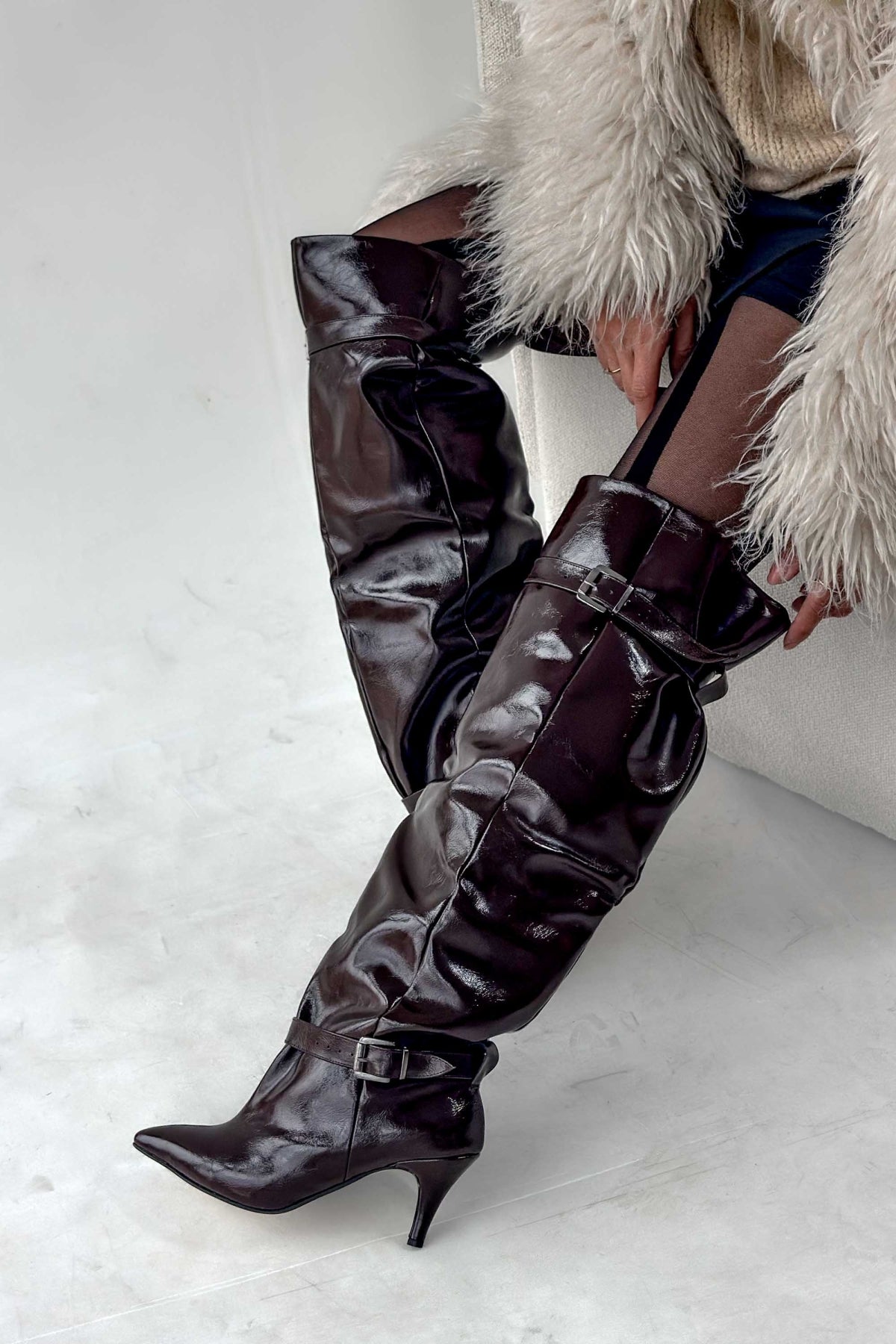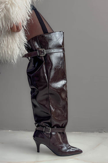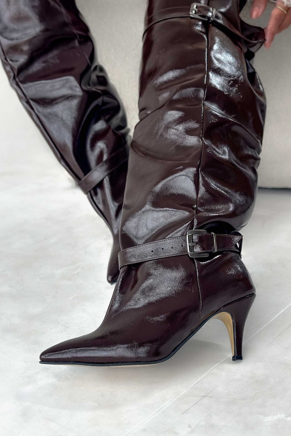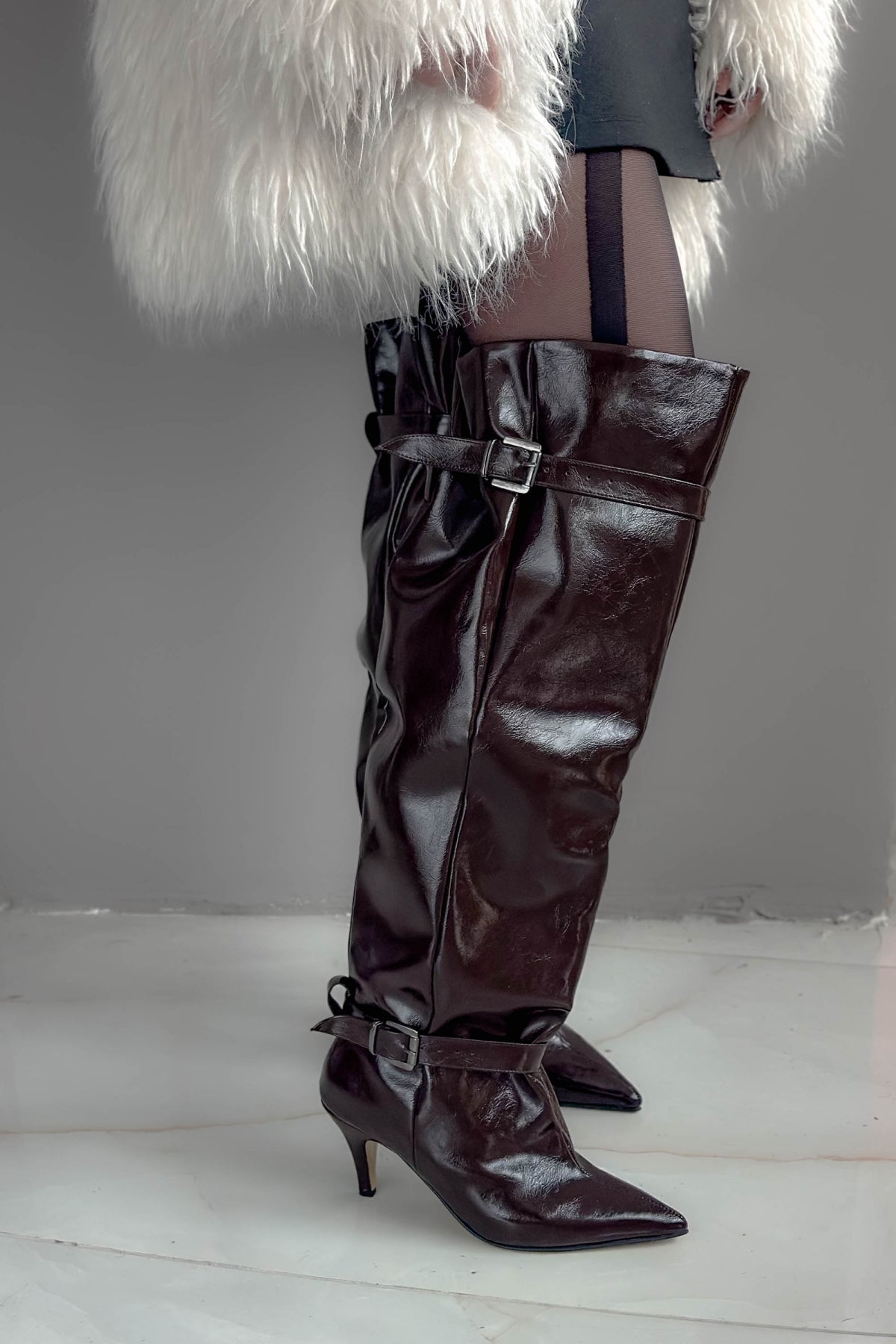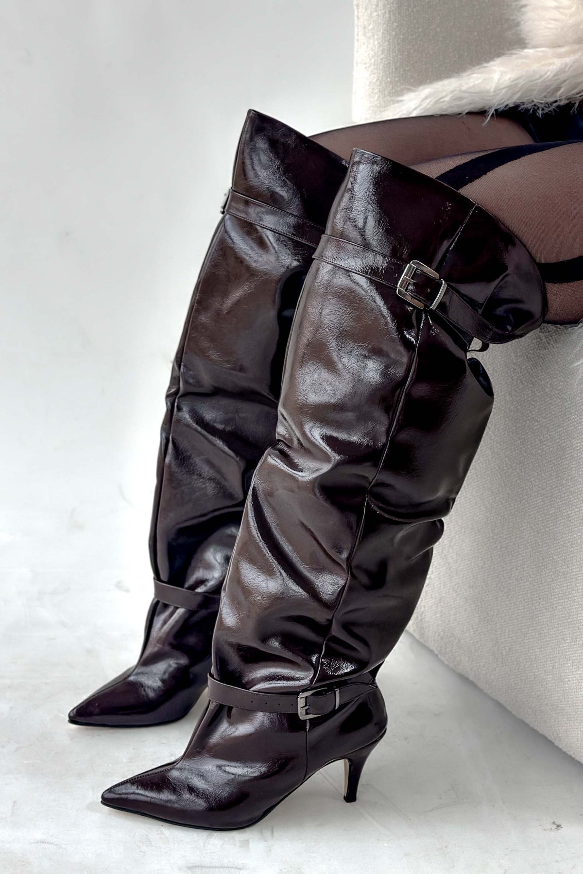 Brondby Acı Kahve Çatlak Rugan Toka Detay Bol Kesim Kadın Çizme