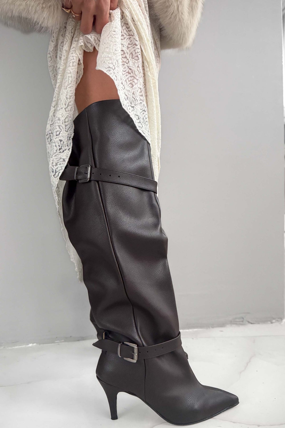 Brondby Acı Kahve Deri Toka Detay Bol Kesim Kadın Çizme