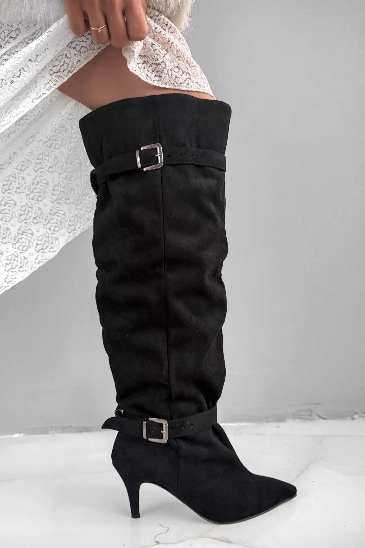 Brondby Siyah Süet Toka Detay Bol Kesim Kadın Çizme