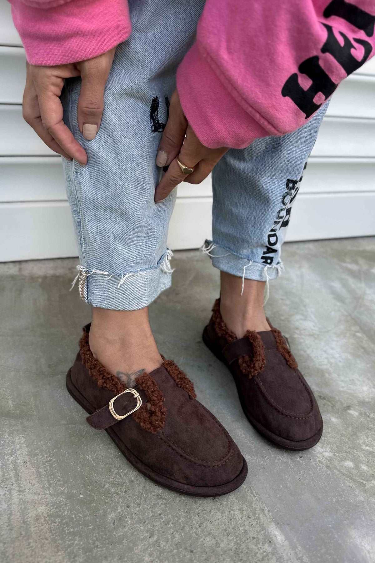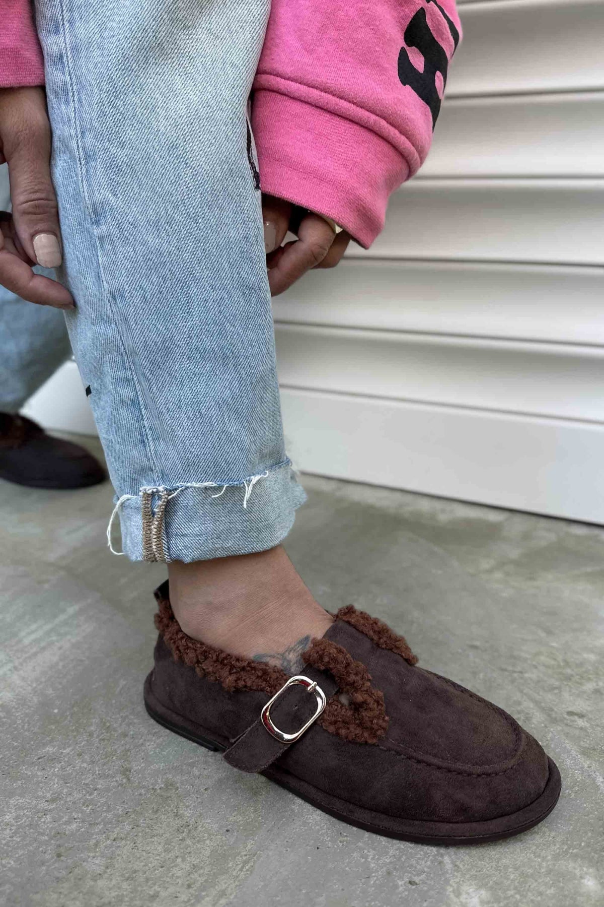 Brugs Acı Kahve Süet Kurk Detay Tokalı Kadın Loafer