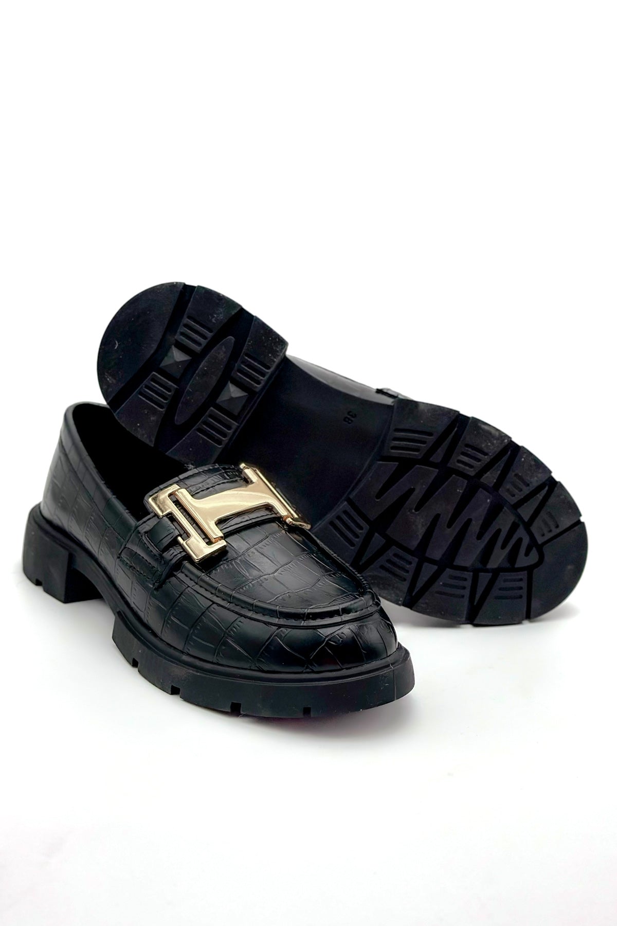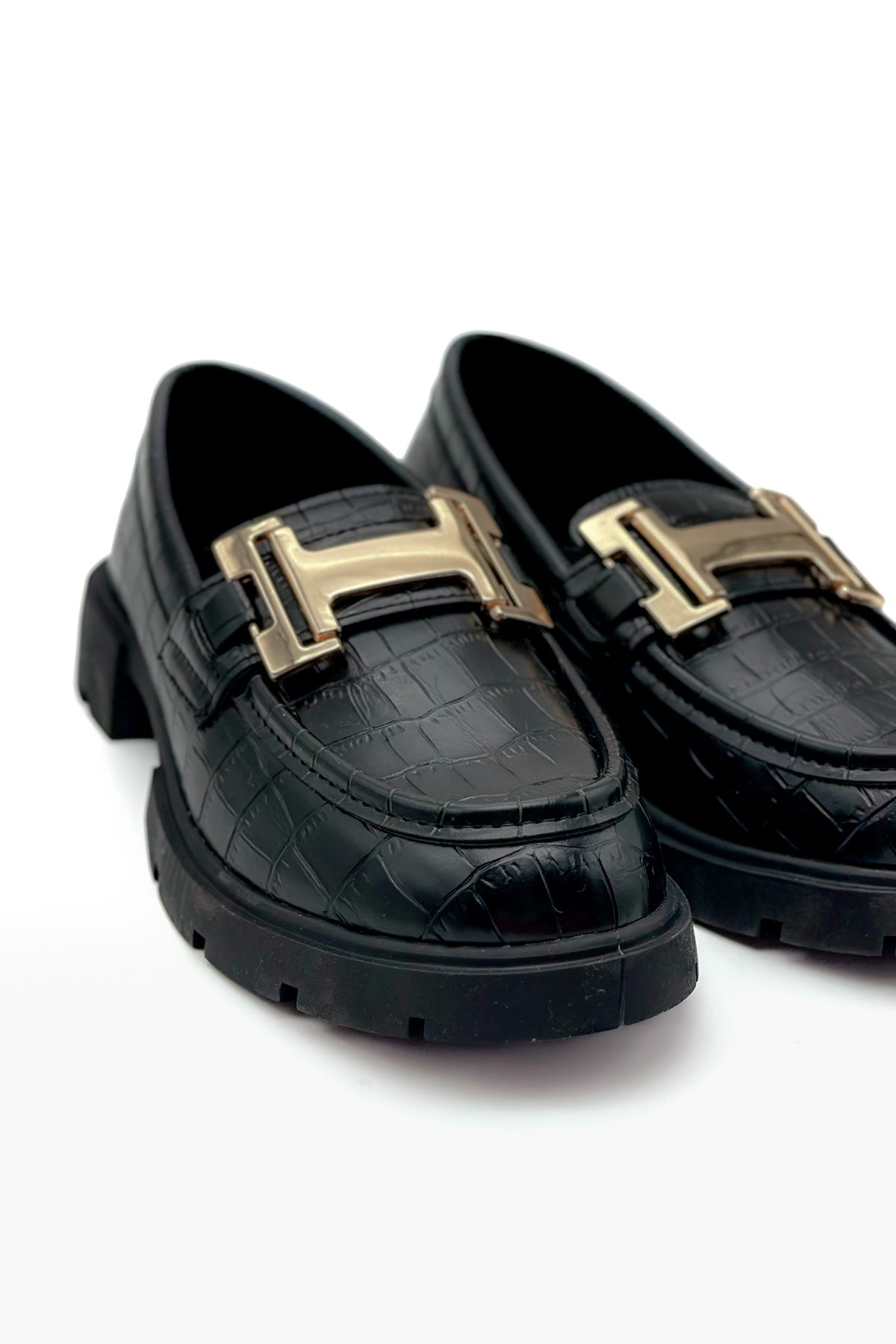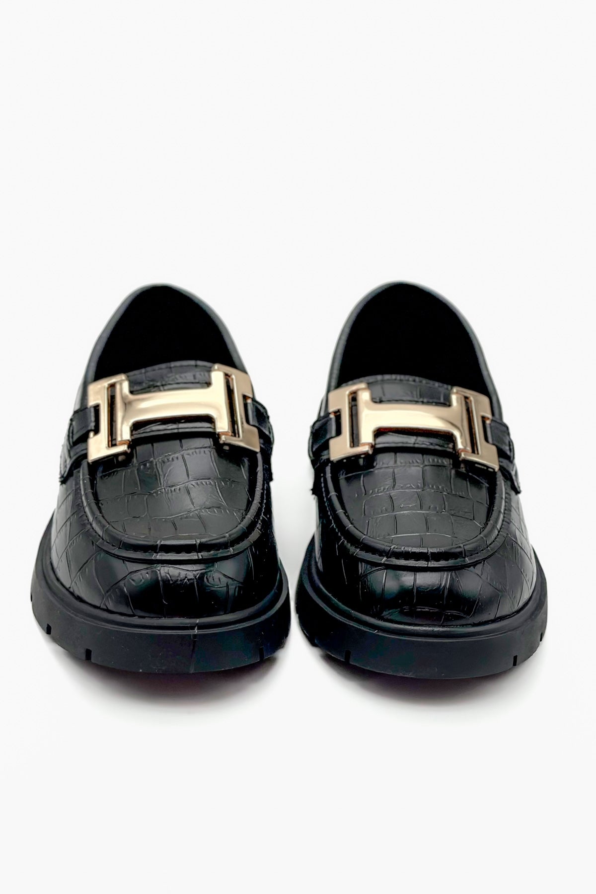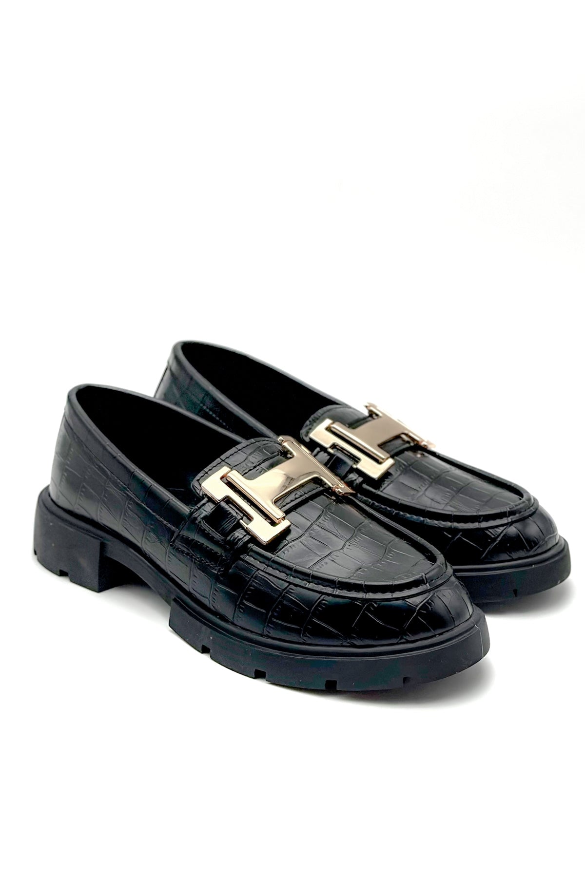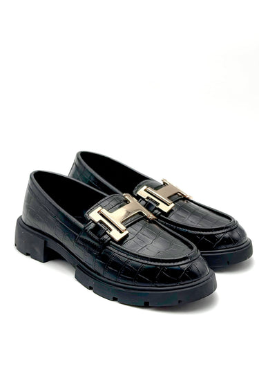 Cecilia Siyah Çatlak Deri Toka Detaylı Kadın Loafer