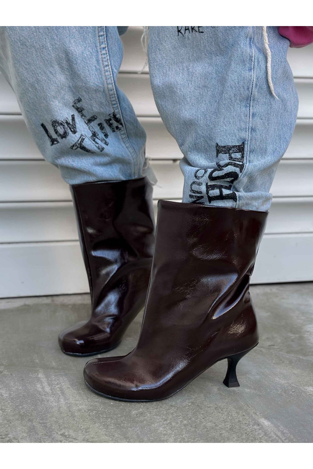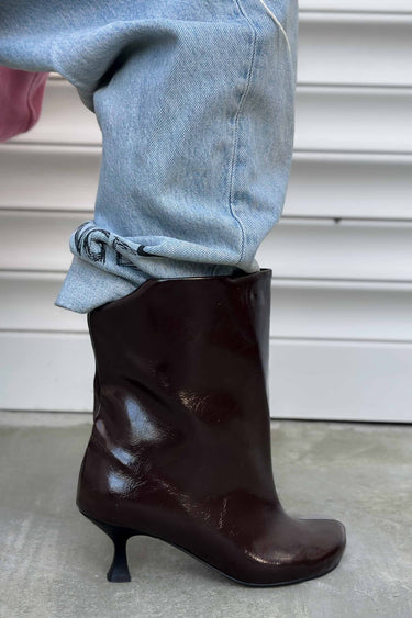 Cenny Acı Kahve Çatlak Rugan Yuvarlak Burun Geniş Kesim Kadın Bootie