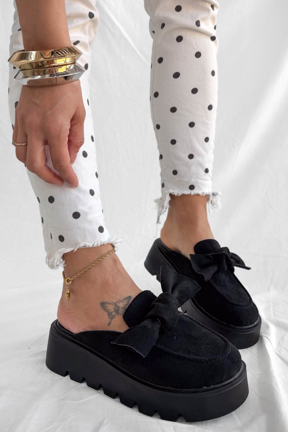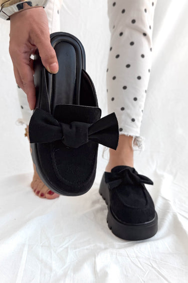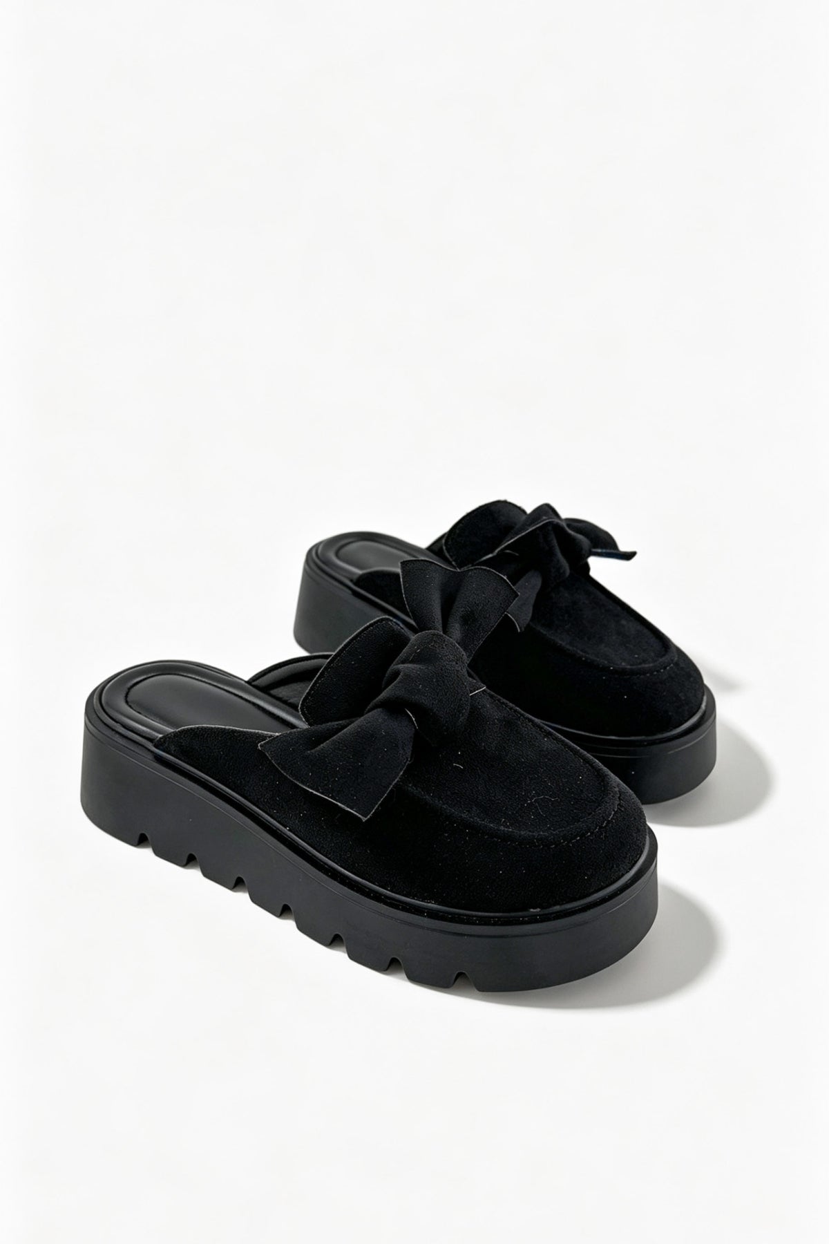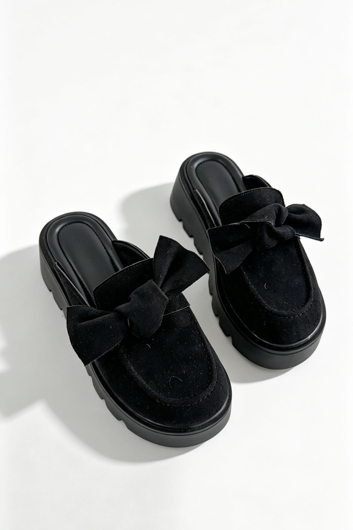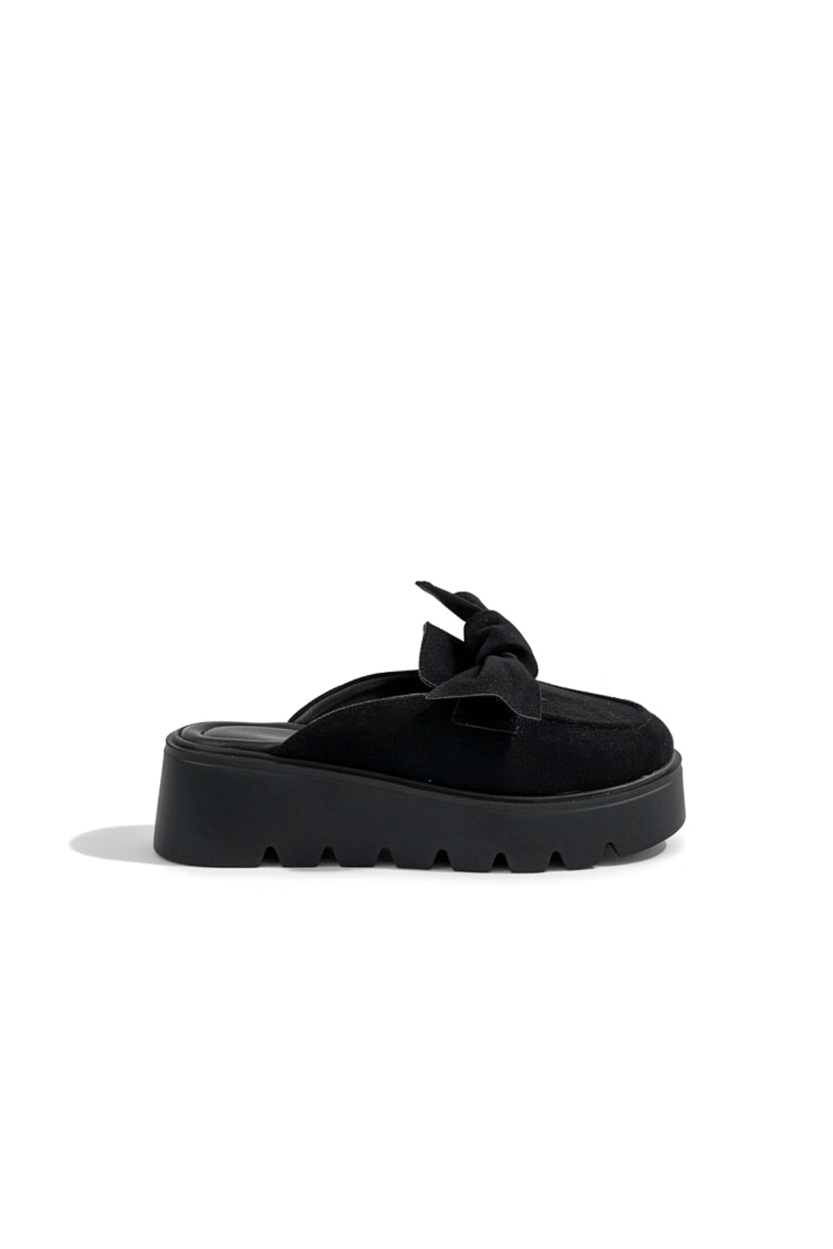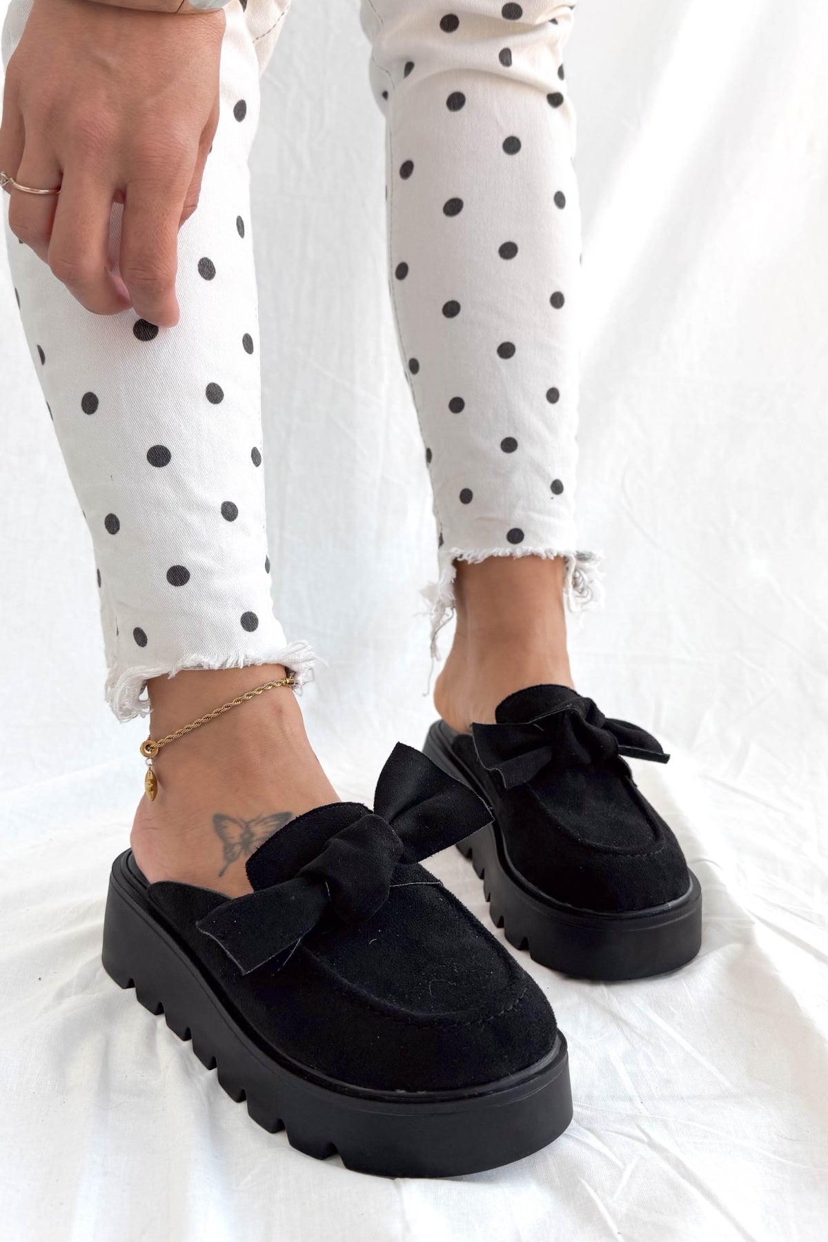 Donatella Siyah Süet Fiyonk Detay Yüksek Taban Kadın Terlik