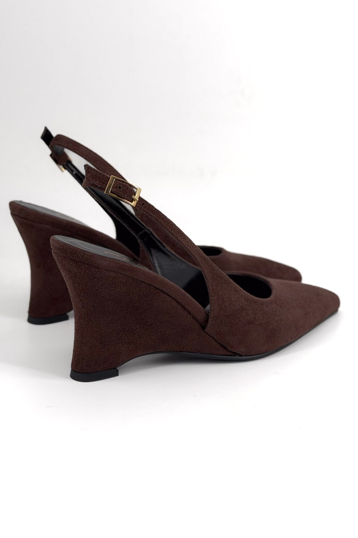 Drone Acı Kahve Süet Bant Toka Detay Dolgu Topuk Kadın Ayakkabı