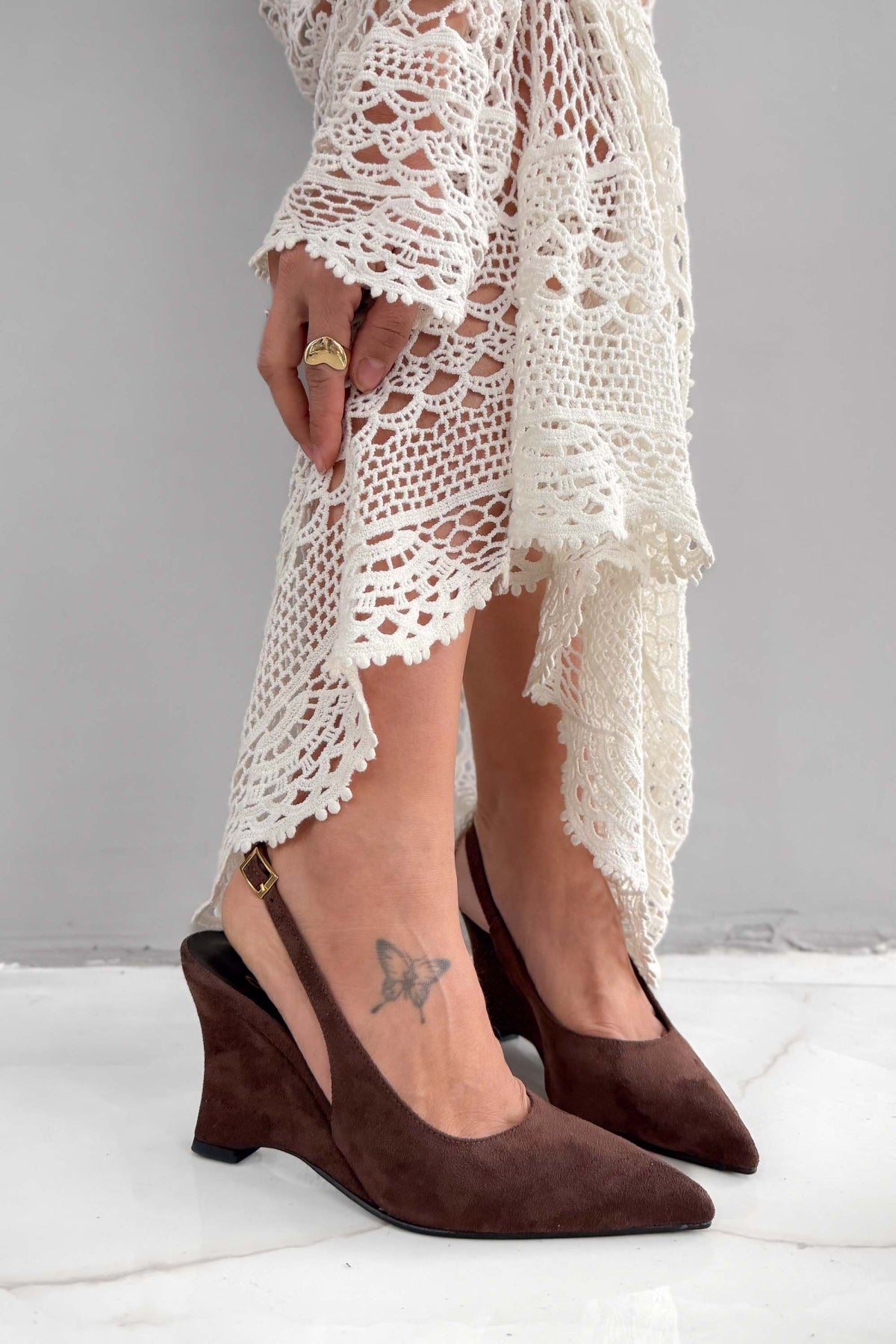 DRONE dolgu topuk modelimiz, modern şehir stilini güçlü ve zarif bir duruşla tamamlamak isteyenler için tasarlandı. Güncel moda çizgilerini taşıyan bu özel model, 9 cm dolgu topuk yüksekliği ile hem boyu zarif şekilde yükseltir hem de gün boyu rahat bir kullanım sunar. Dolgu topuk yapısı sayesinde klasik topuklara göre daha dengeli bir yürüyüş sağlar ve konforu stil ile buluşturur.