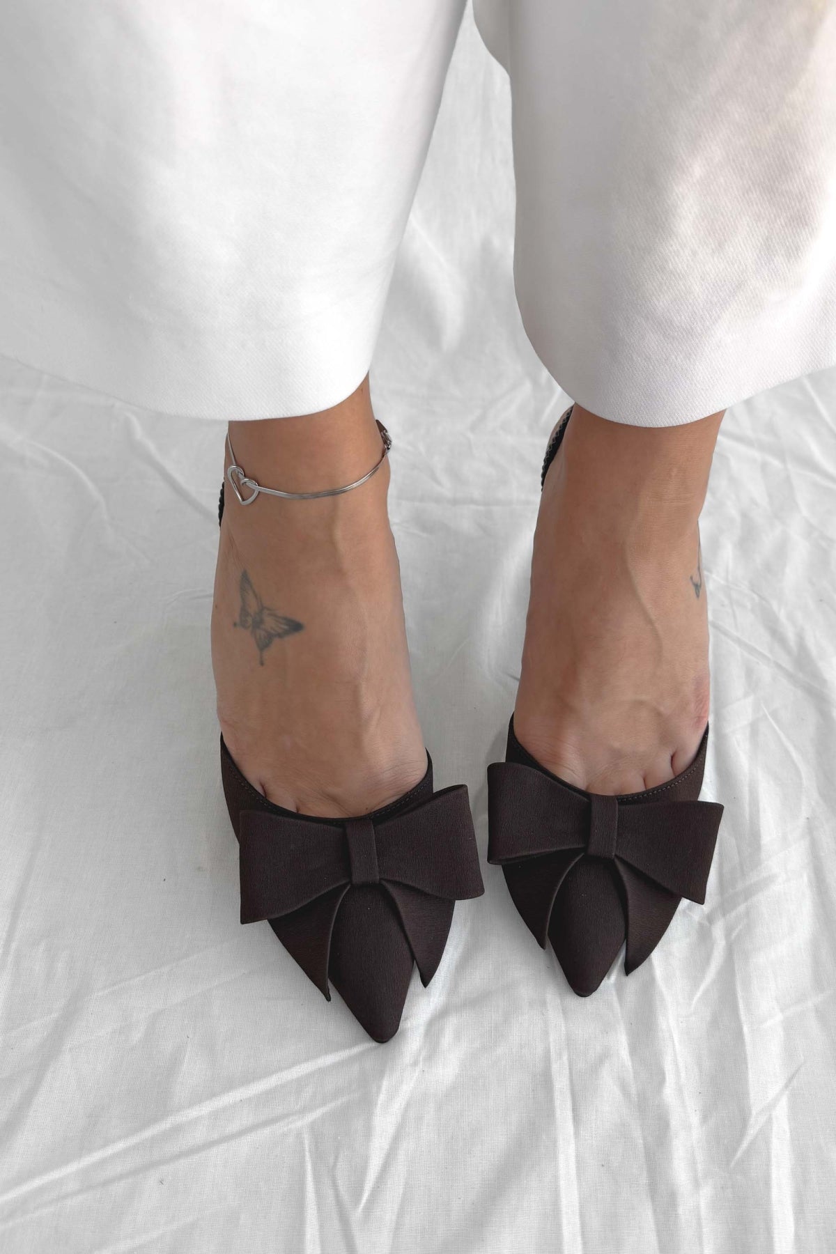 Fiorin Acı Kahve Saten Kurdela Detay Kadın Topuklu Ayakkabı