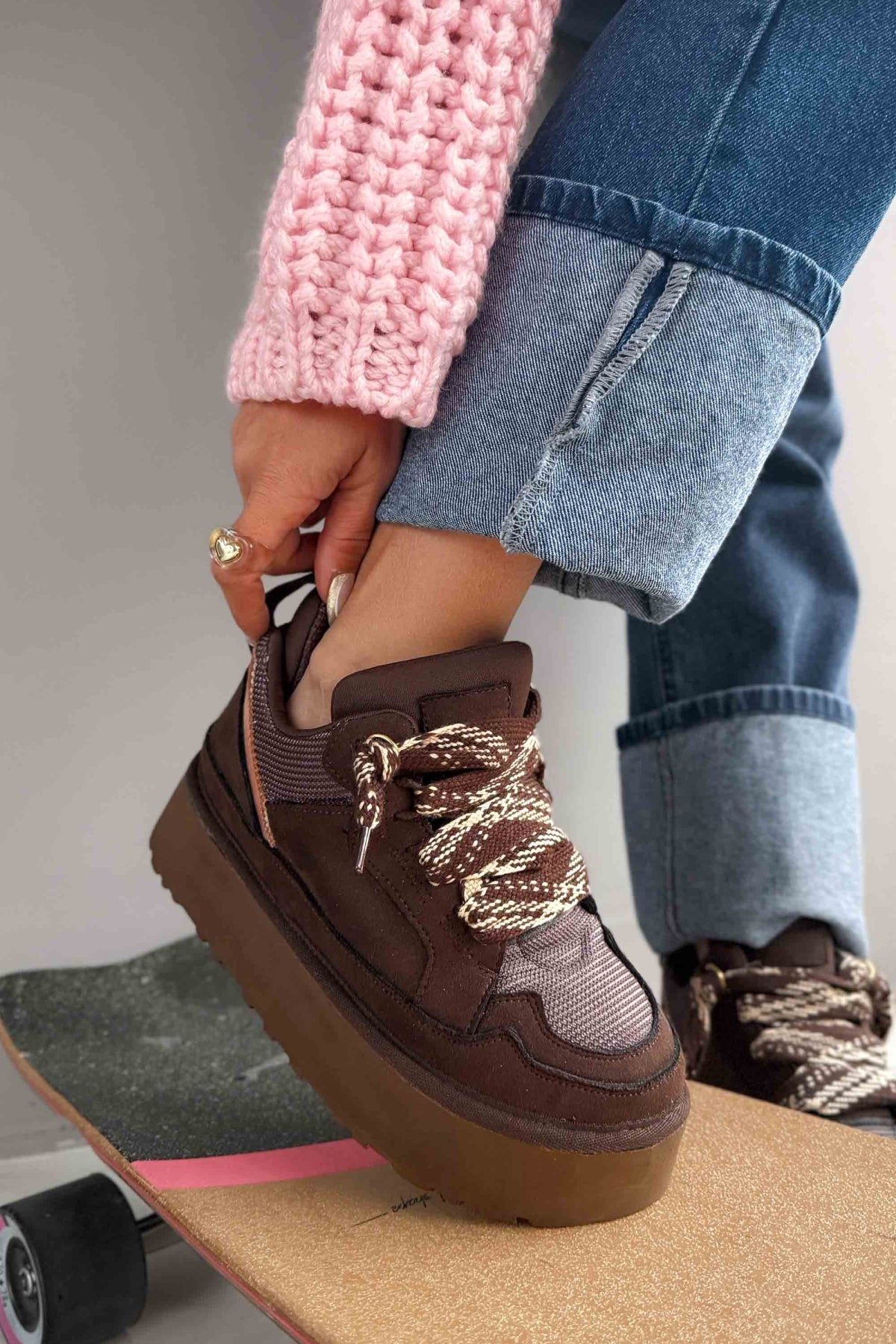 Jenga Acı Kahve Süet Bağcıklı Kadın Sneakers