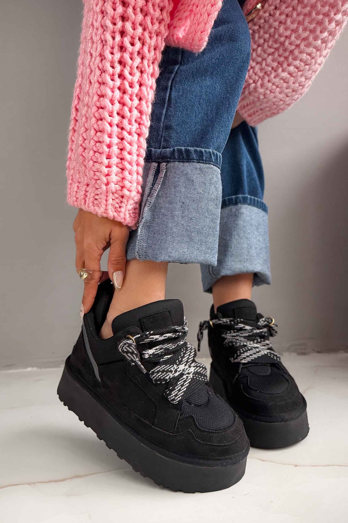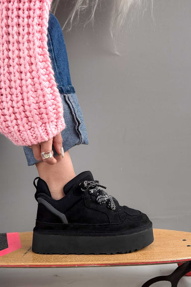 Jenga Siyah Süet Bağcıklı Kadın Sneakers