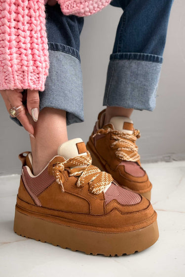 Jenga Taba Süet Bağcıklı Kadın Sneakers