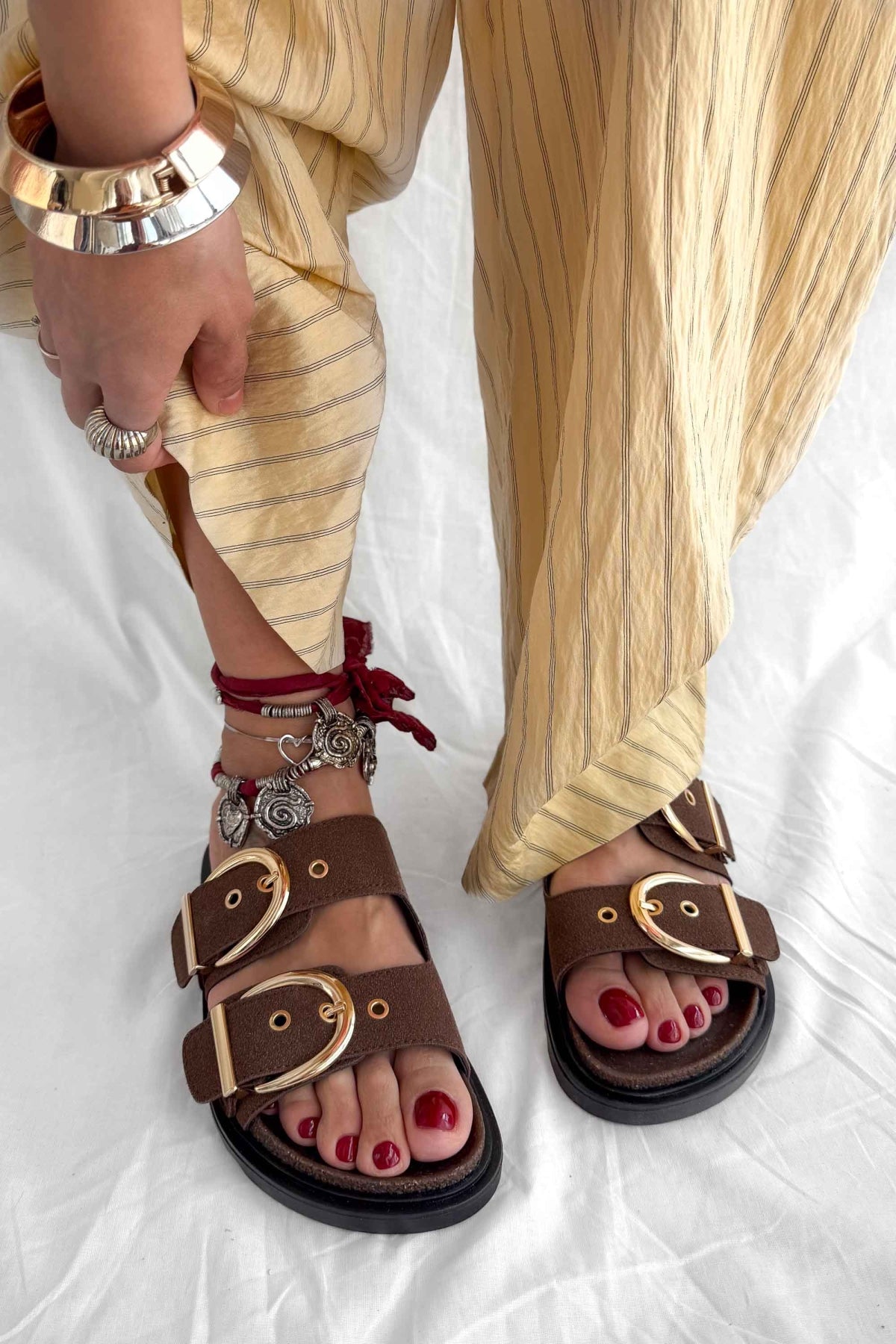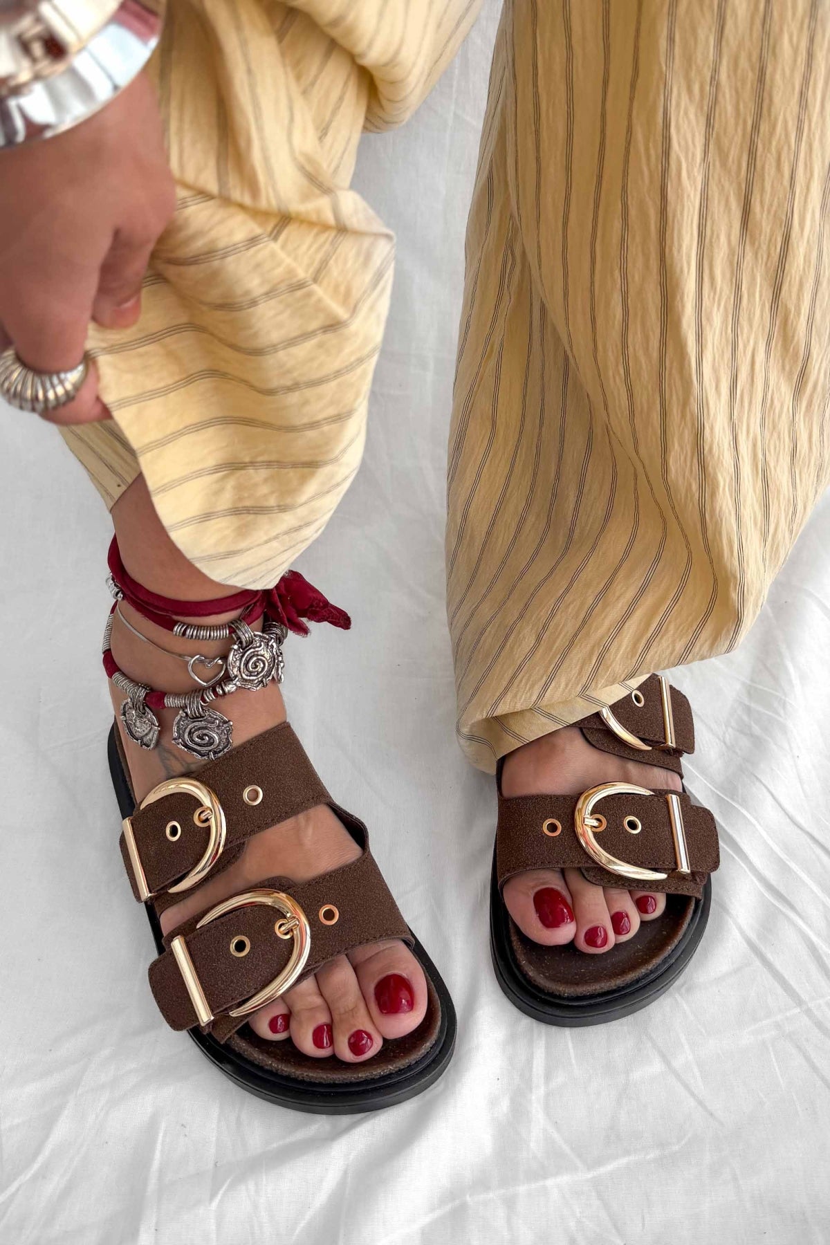 Kyle Acı Kahve Süet Toka Detay Kadın Terlik