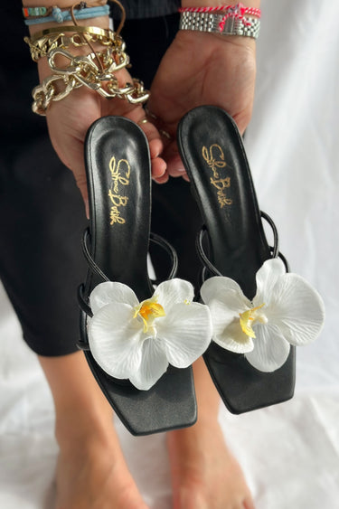Lavinya Siyah Çiçek Detaylı Topuklu Kadın Terlik