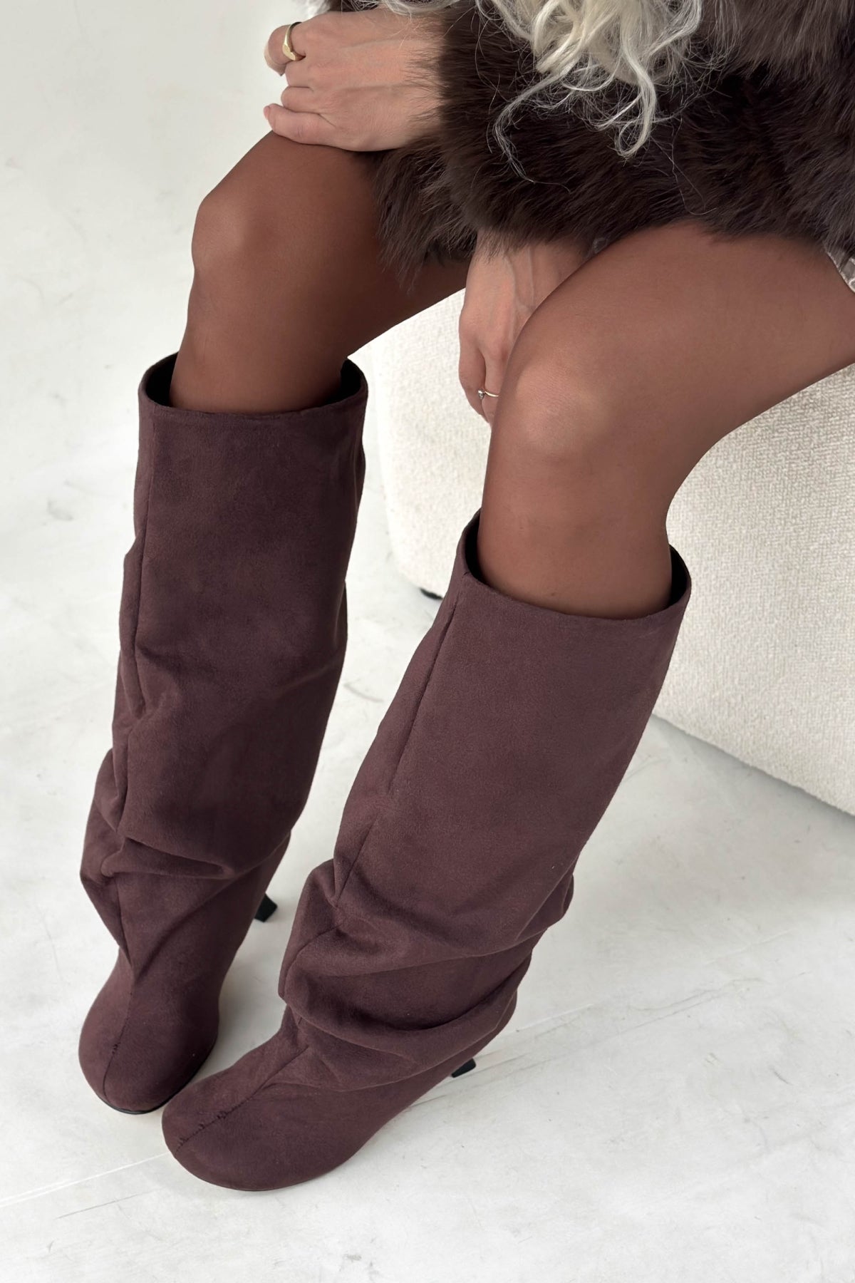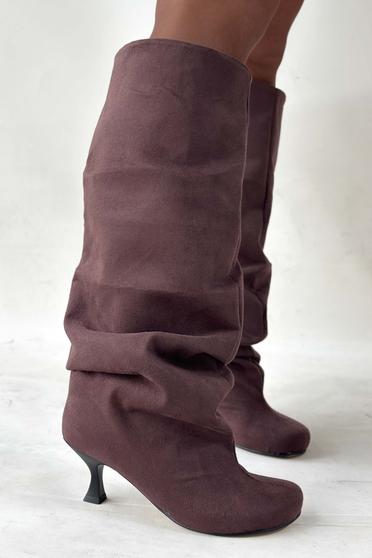 Lea Acı Kahve Süet Yuvarlak Burun Topuklu Kadın Çizme