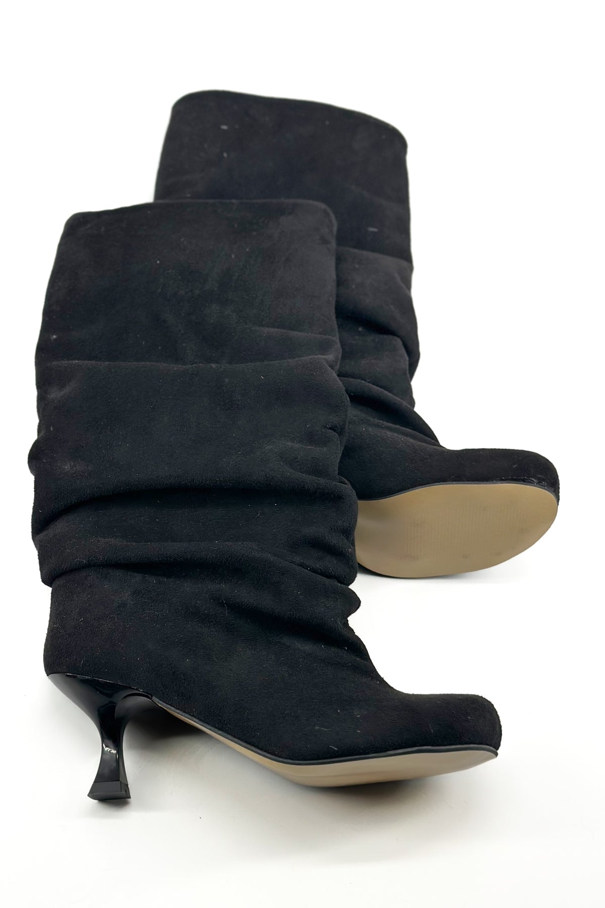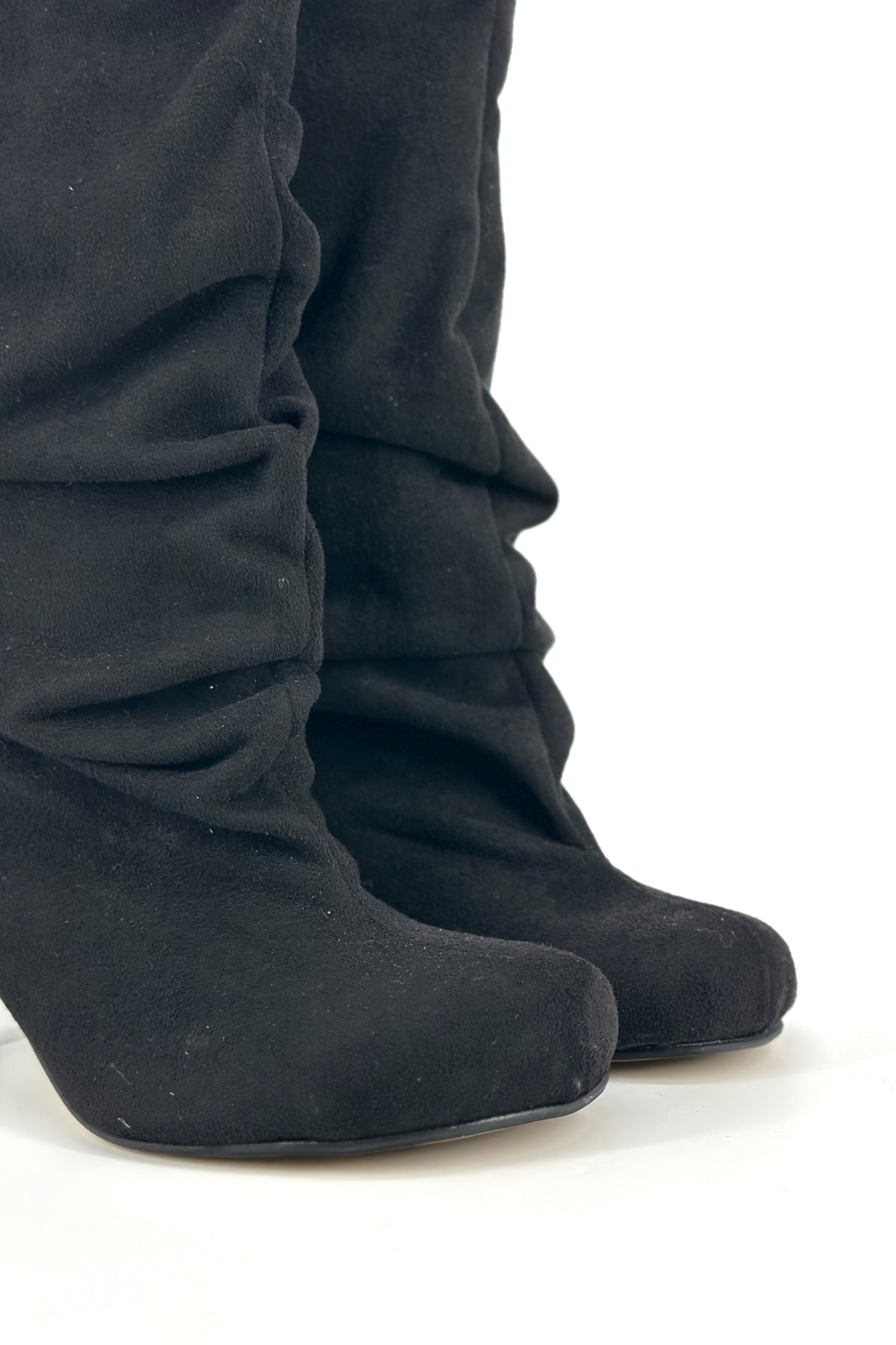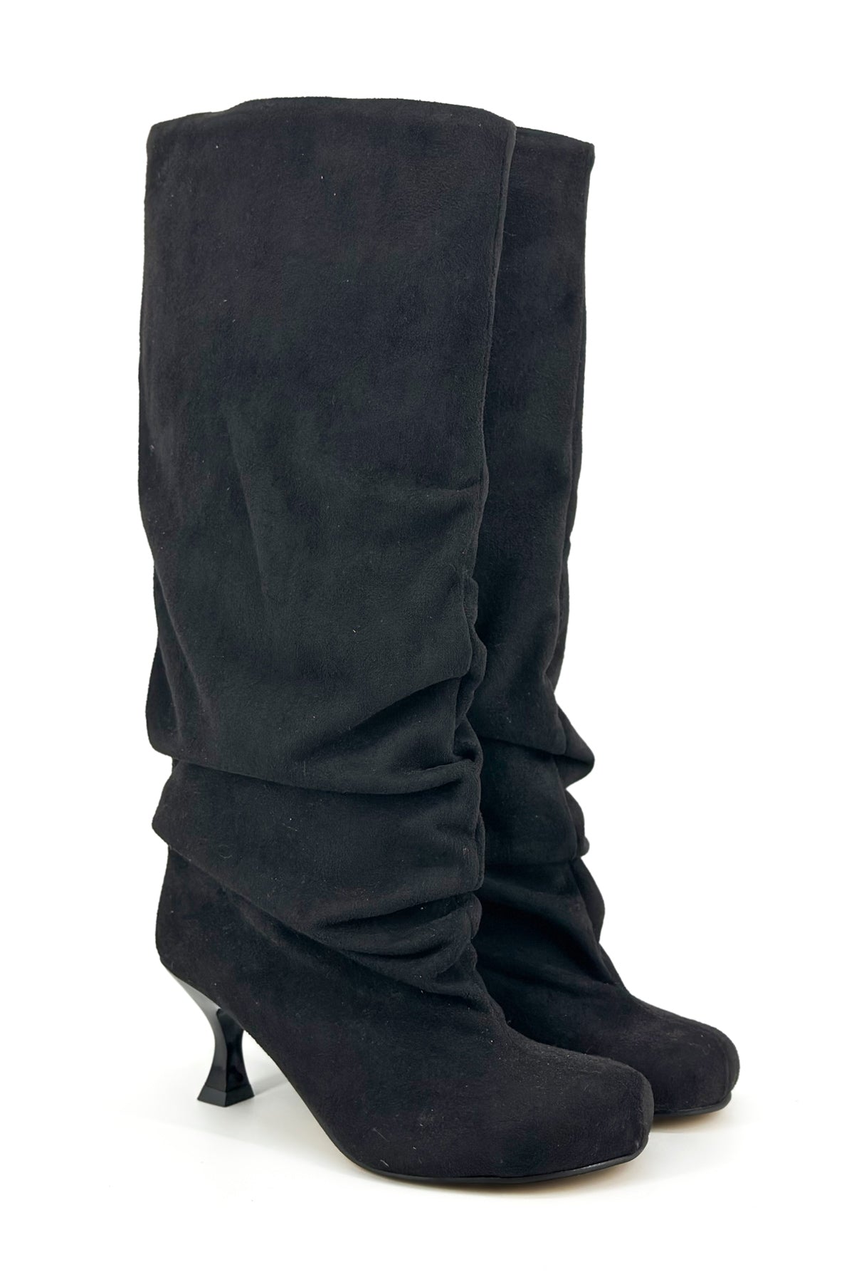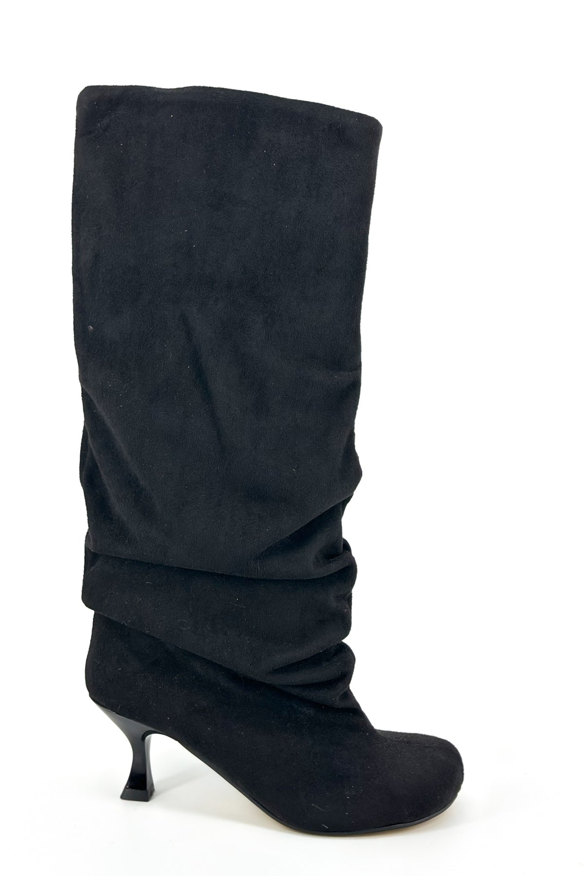 Lea Siyah Süet Yuvarlak Burun Topuklu Kadın Çizme